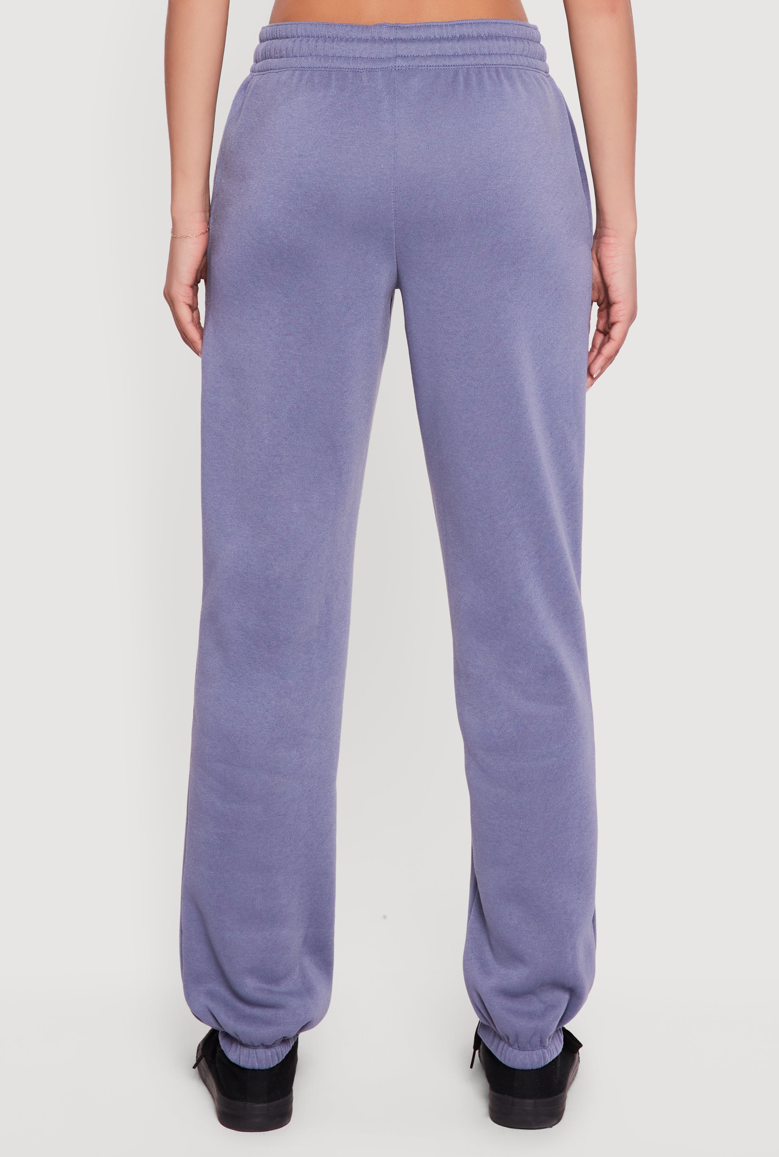 These sweatpants blend casual athleisure style with a modern tapered fit and mid rise for easy wear. Crafted from cozy fleece, they feature a drawstring waist for adjustable comfort and subtle rhinestone accents that add a touch of flair without overpowering. Perfect for relaxed days or casual outings.