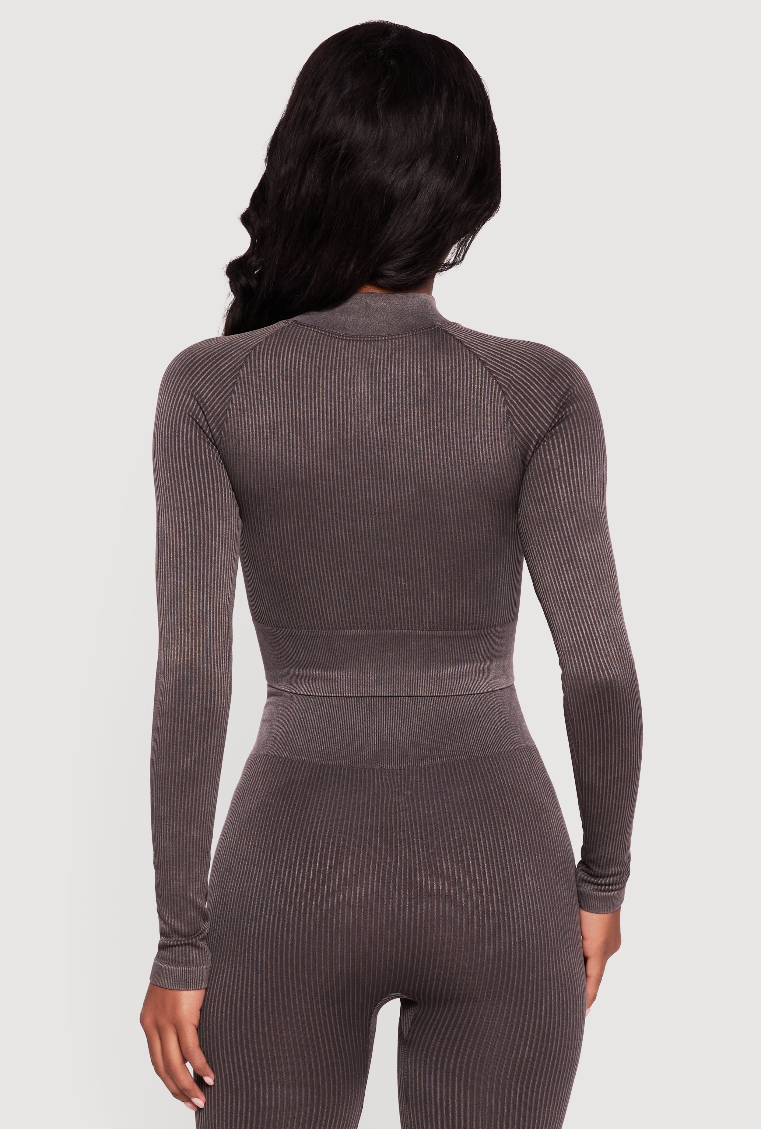 This track jacket features a mock neck and raglan long sleeves for easy movement. The zip front closure adds convenience, while the compression rib fabric offers a sleek, stretchy fit. Its acid wash pattern brings a trendy edge to casual and activewear looks.
