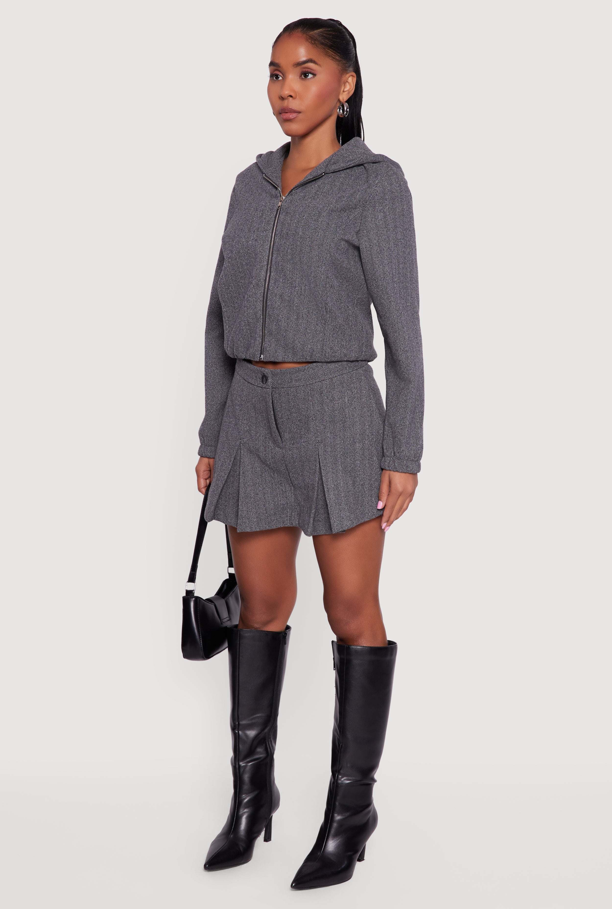 Step out in style with the Herringbone Zip Front Elastic Hem Jacket by Haute Monde. This jacket effortlessly blends casual comfort with a chic, office-ready vibe. Featuring a trendy herringbone pattern and a hooded neckline, it’s perfect for layering on crisp days. The zip front closure and elastic hem offer a flattering fit that moves with you, making it your go-to piece for everything from casual outings to dressy occasions like Thanksgiving.