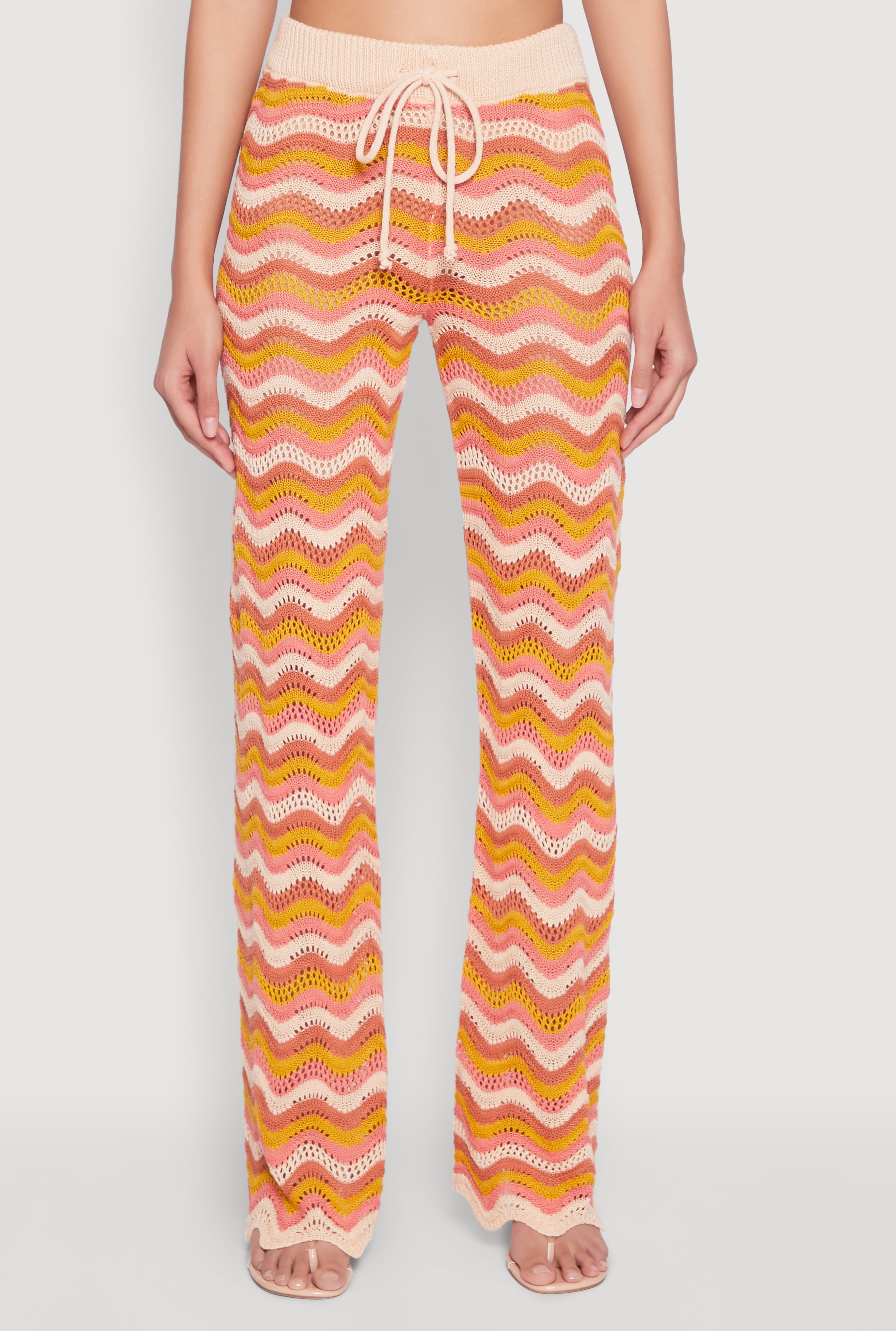 Get ready to turn heads with these Wavy Striped Crochet Pants that effortlessly blend comfort and style. Perfect for adding a playful touch to your casual wardrobe, these high-waisted straight-leg pants are your new go-to for laid-back days and weekend adventures. With their eye-catching wavy striped pattern and breathable crochet material, you'll look cool and feel even cooler. Whether you're out with friends or lounging in style, these pants are designed to make you stand out in the best way.