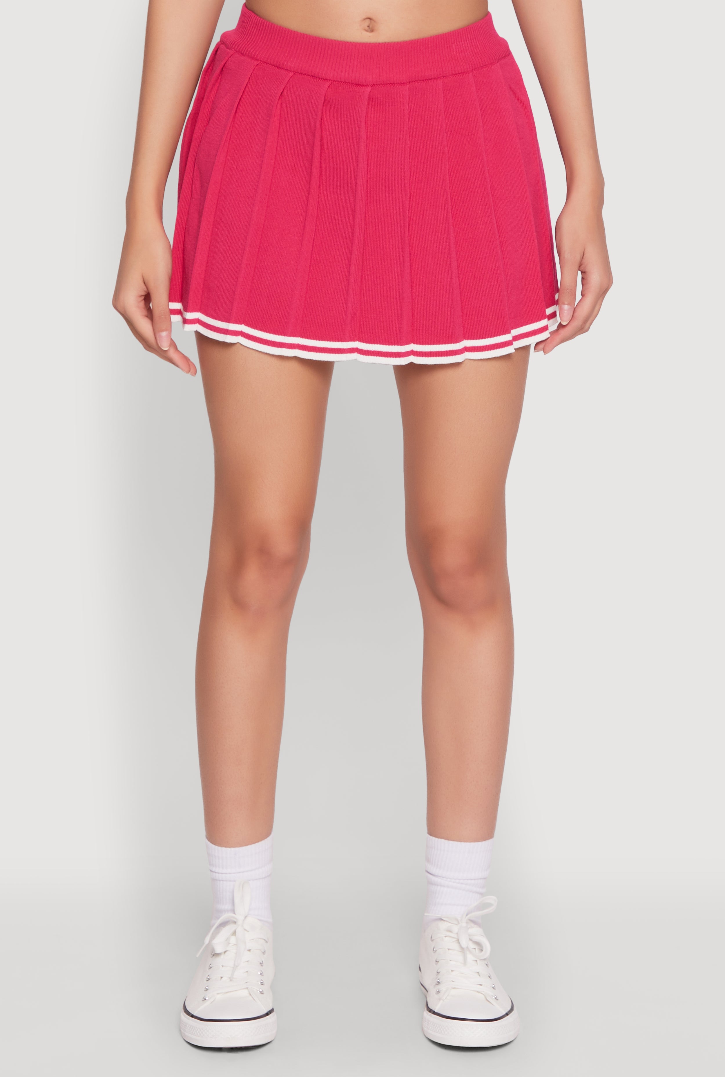 • Mini length pleated skirt with varsity stripe detail for a sporty yet chic look