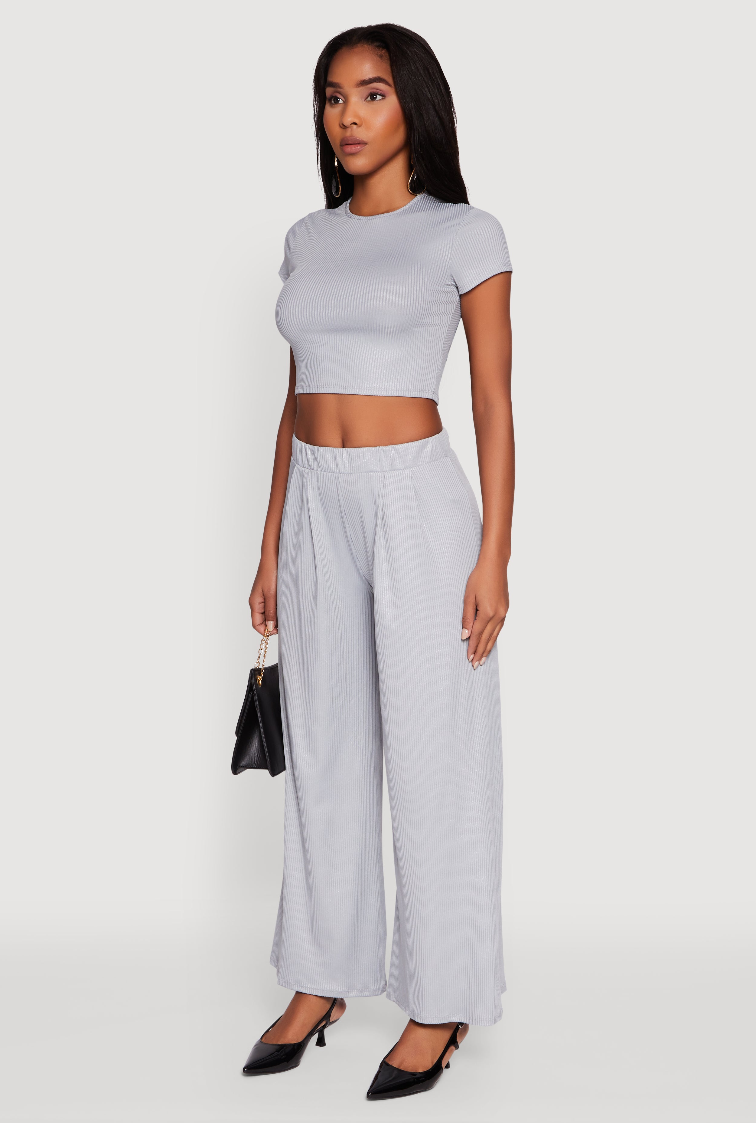 • Ribbed knit fabric with lurex for subtle sparkle and texture