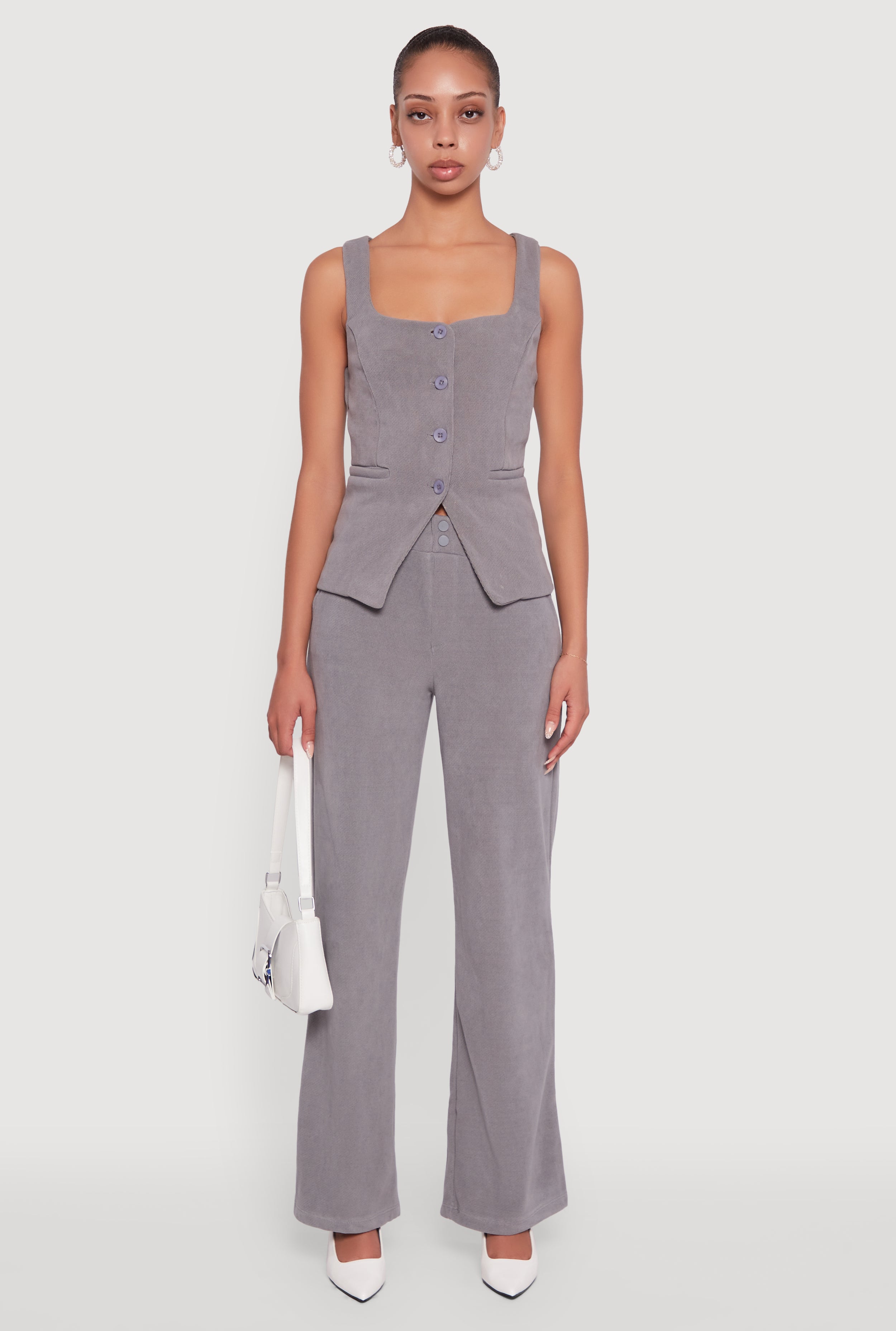 Sleeveless Button Front Square Neck Waistcoat