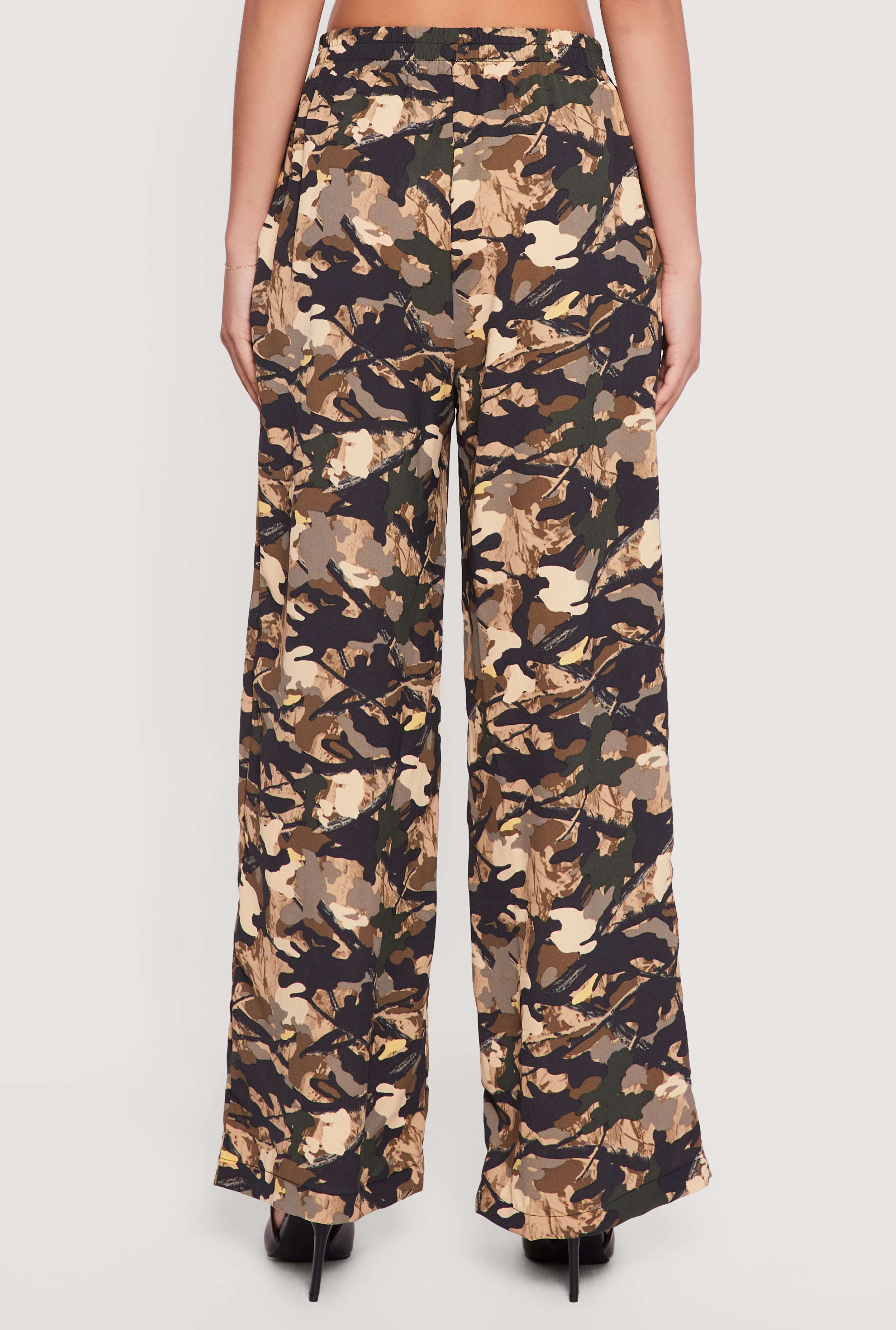 Camouflage Crepe Knit Pull On Straight Leg Pants