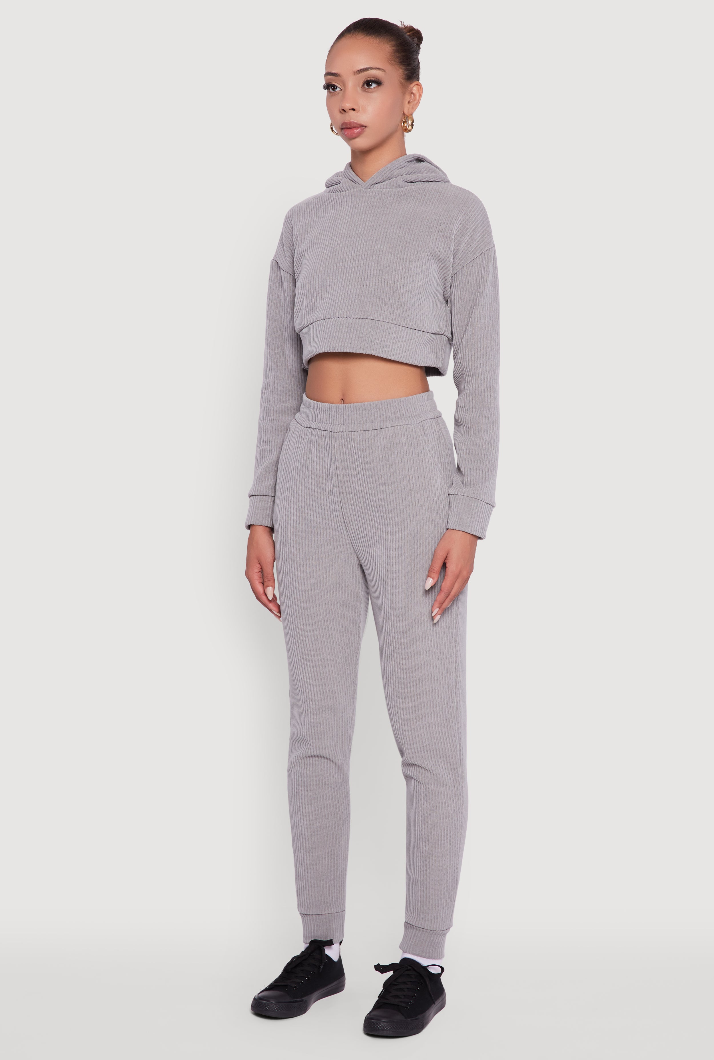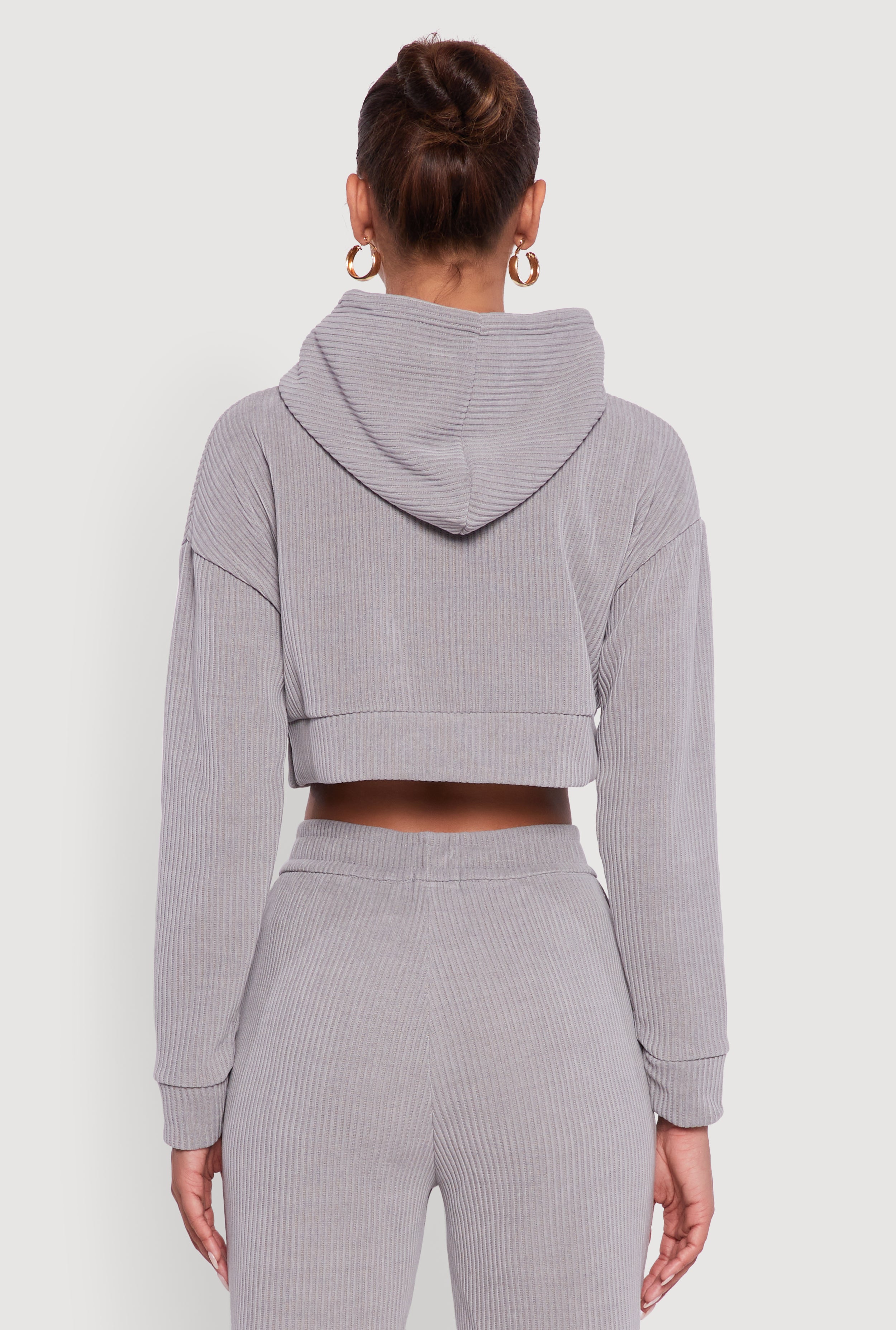 Ribbed Knit Long Sleeve Hooded Crop Top