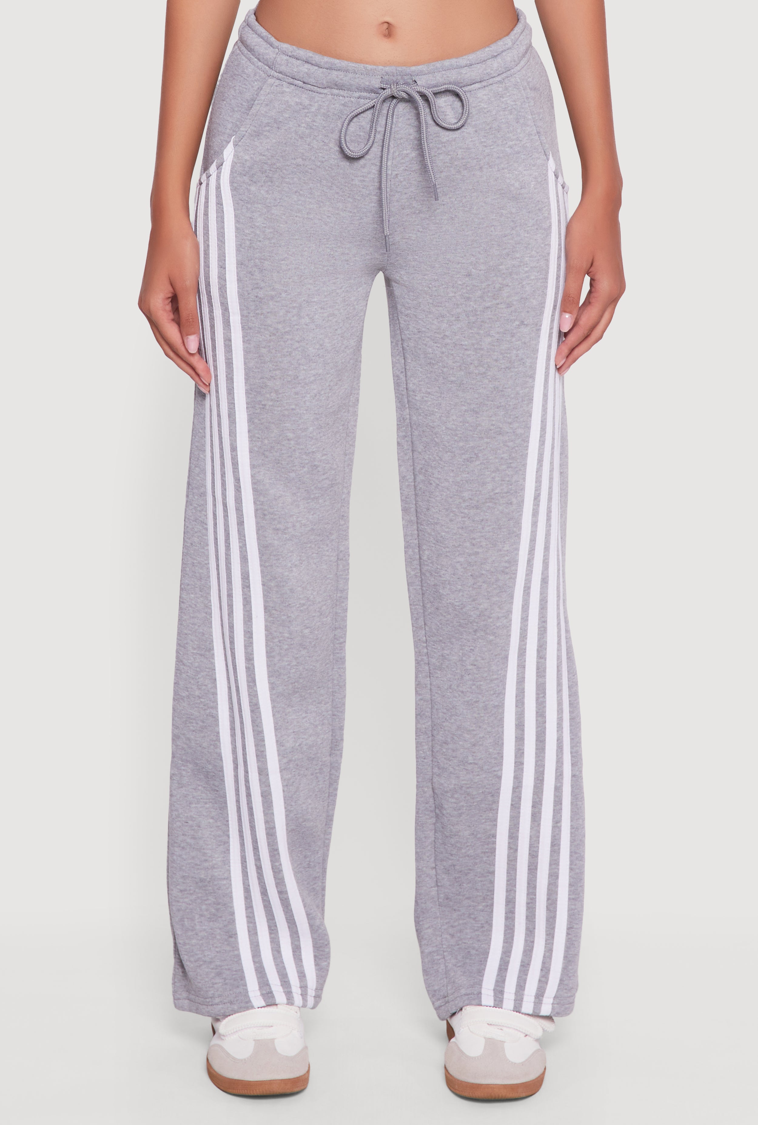 Step up your casual game with these Stripe Detail Drawstring Waist Sweatpants. Designed for ultimate comfort and effortless style, they feature a cozy fleece fabric and a flattering mid-rise fit. The straight leg cut and stripe detail add just the right touch of sporty flair. Whether you're lounging at home or out running errands, these sweatpants are your new go-to for laid-back vibes that never compromise on cool.