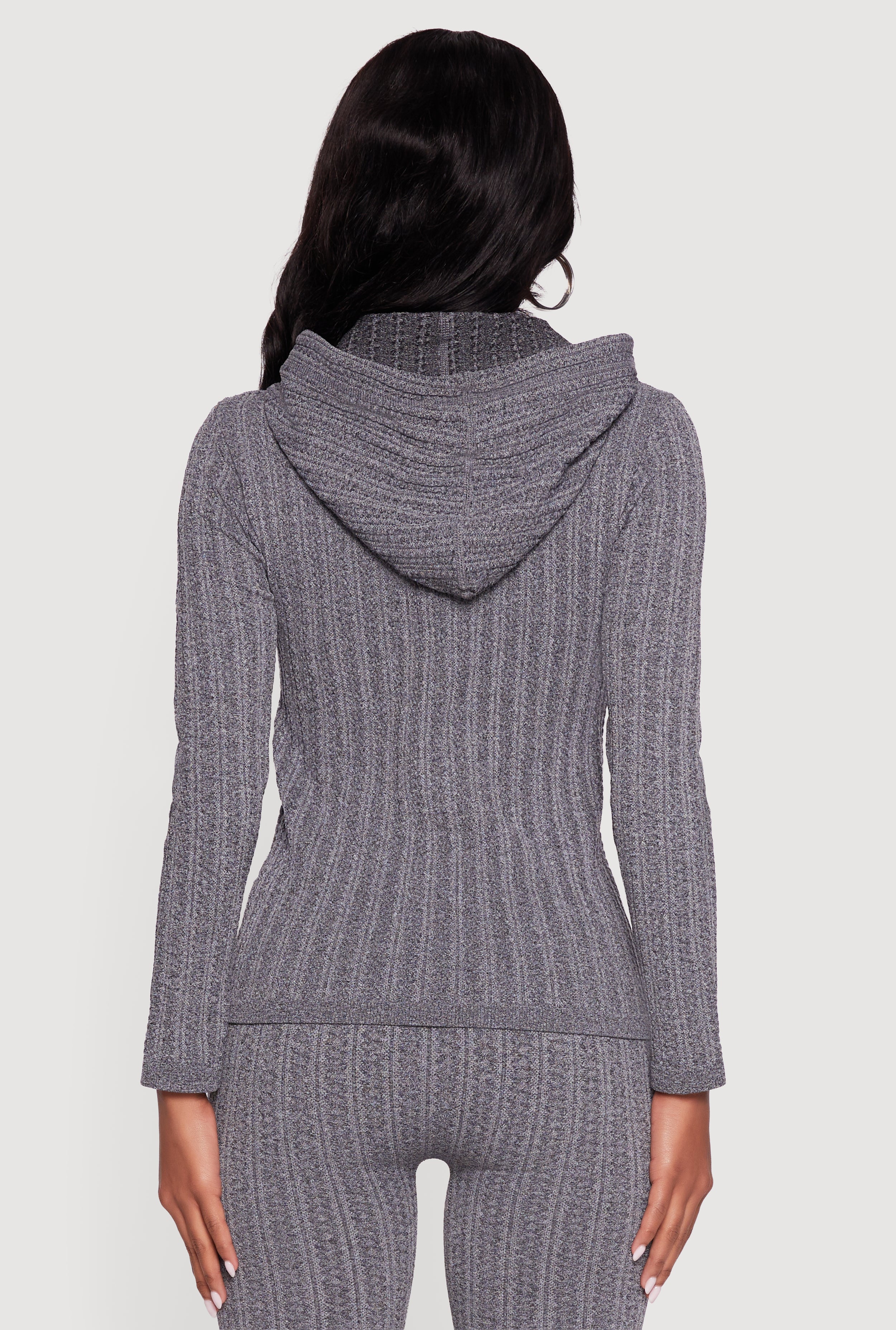 Textured Knit Zip Front Hoodie