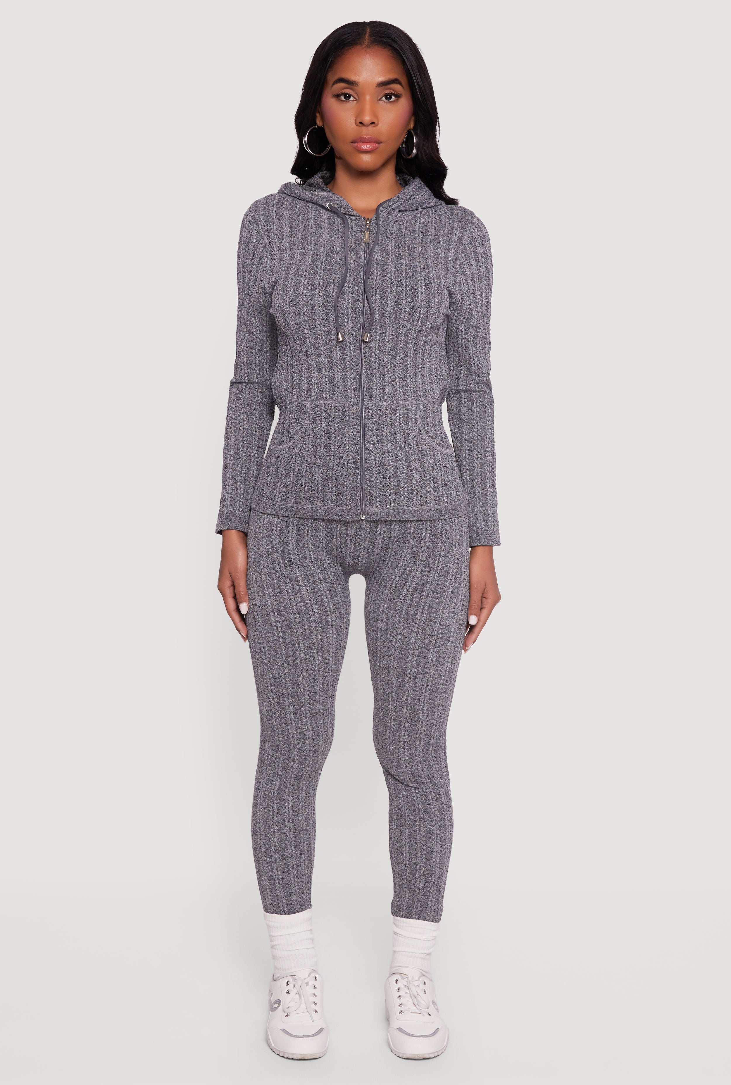 Cozy meets cool in this Textured Knit Zip Front Hoodie, your new go-to for effortless casual style. Crafted from a soft textured knit, it features a classic fit that flatters every shape and a hooded neckline for laid-back vibes. The full zip closure makes it easy to layer up or down, perfect for those unpredictable days. Whether you're lounging at home or stepping out for a casual hangout, this hoodie combines comfort and style with an athleisure twist you will love.
