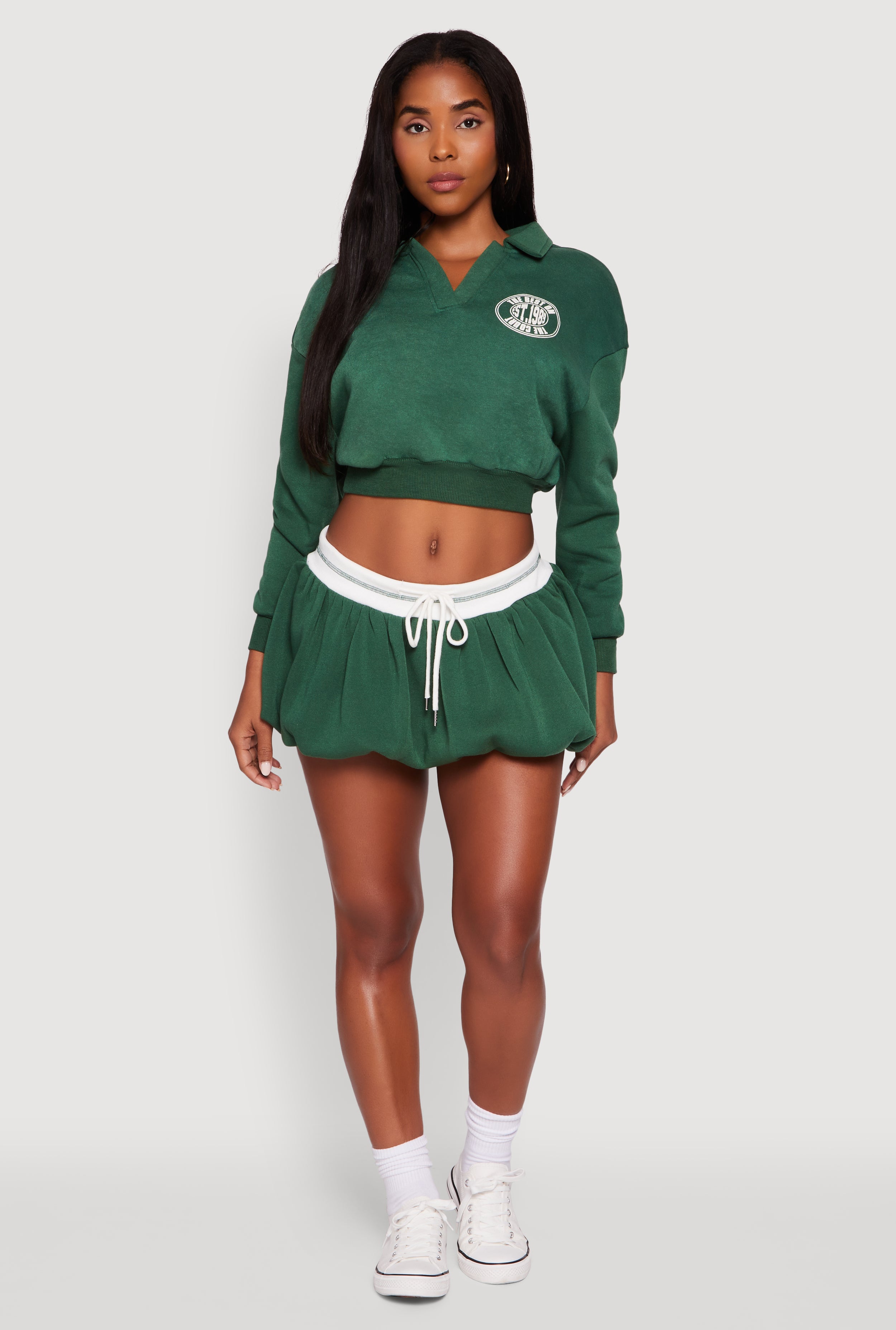 Step up your casual game with the Best On The Court Graphic Cropped Sweatshirt. This cozy fleece piece brings a fresh twist to your athleisure wardrobe with its classic fit and bold graphic print that screams confidence. Whether you're hitting the streets or lounging with friends, this cropped sweatshirt is your new go-to for effortless style and comfort.