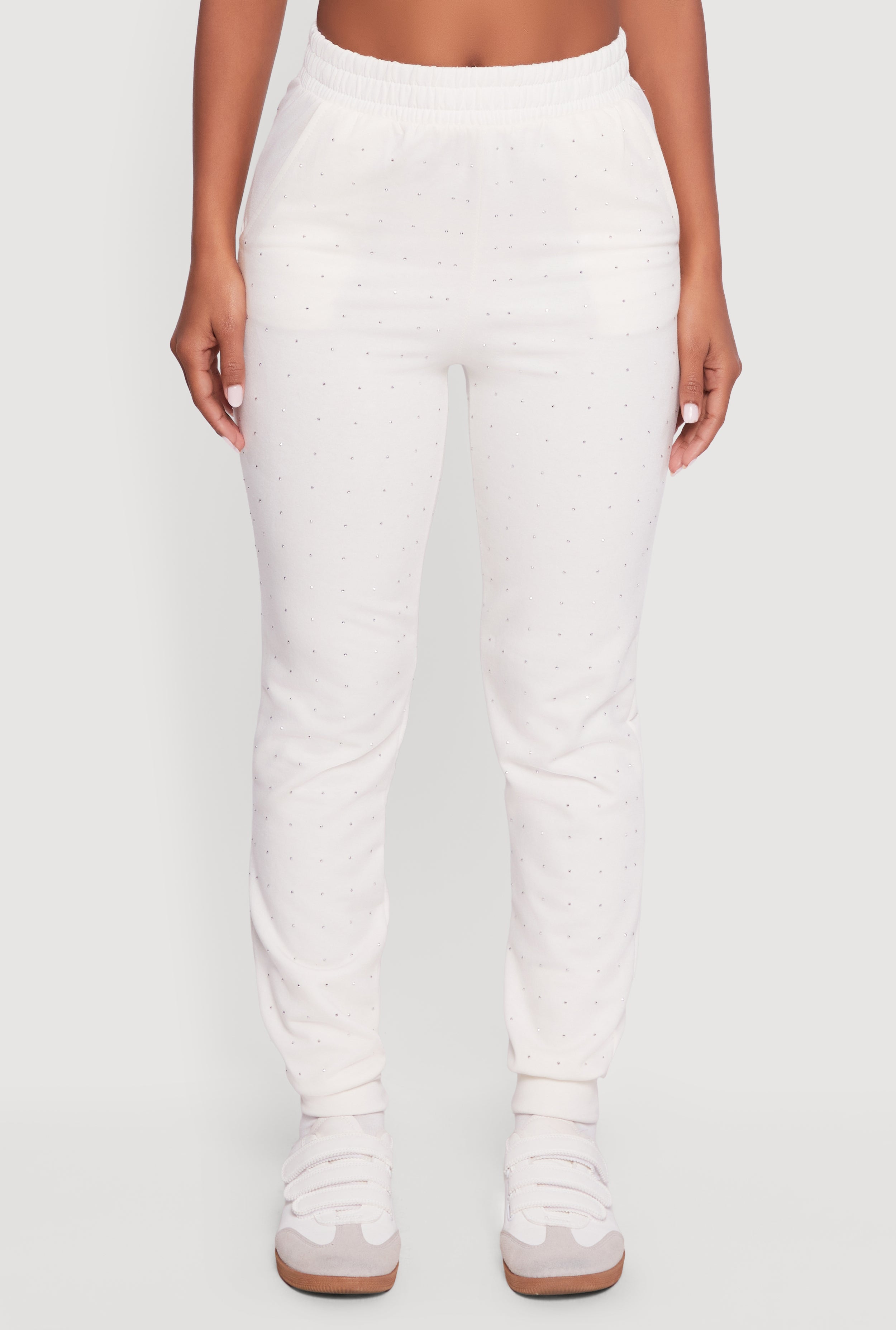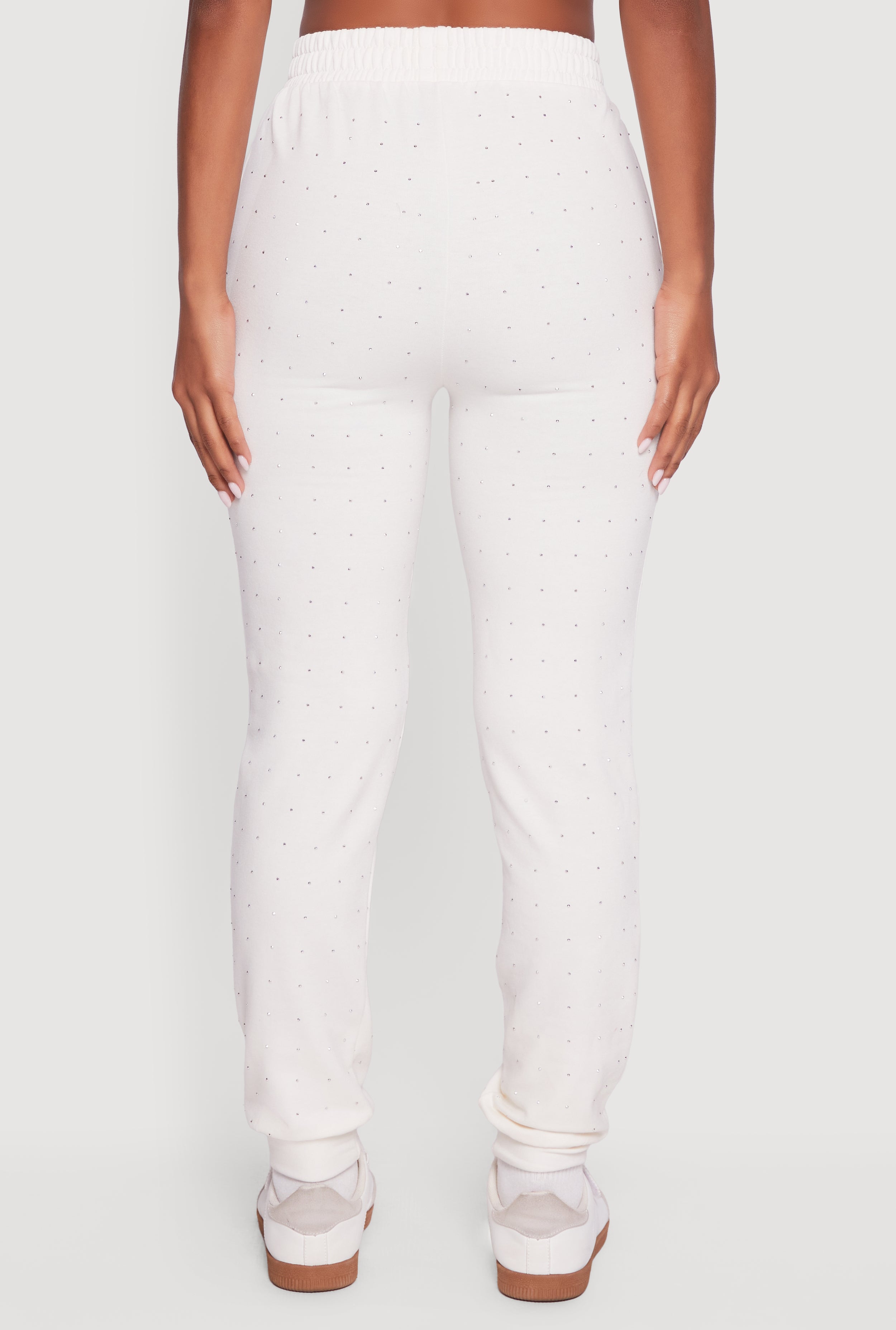 Step up your casual game with these Rhinestone Studded Elastic Waist Joggers. Designed to blend comfort with a touch of sparkle, these high-waisted joggers feature a slim, tapered fit that flatters your silhouette while keeping things effortlessly cool. Made from cozy fleece, they are perfect for lounging, running errands, or casual hangouts. The elastic waist and pull-on style make them super easy to wear, and the rhinestone details add just the right amount of glam for your everyday look.
