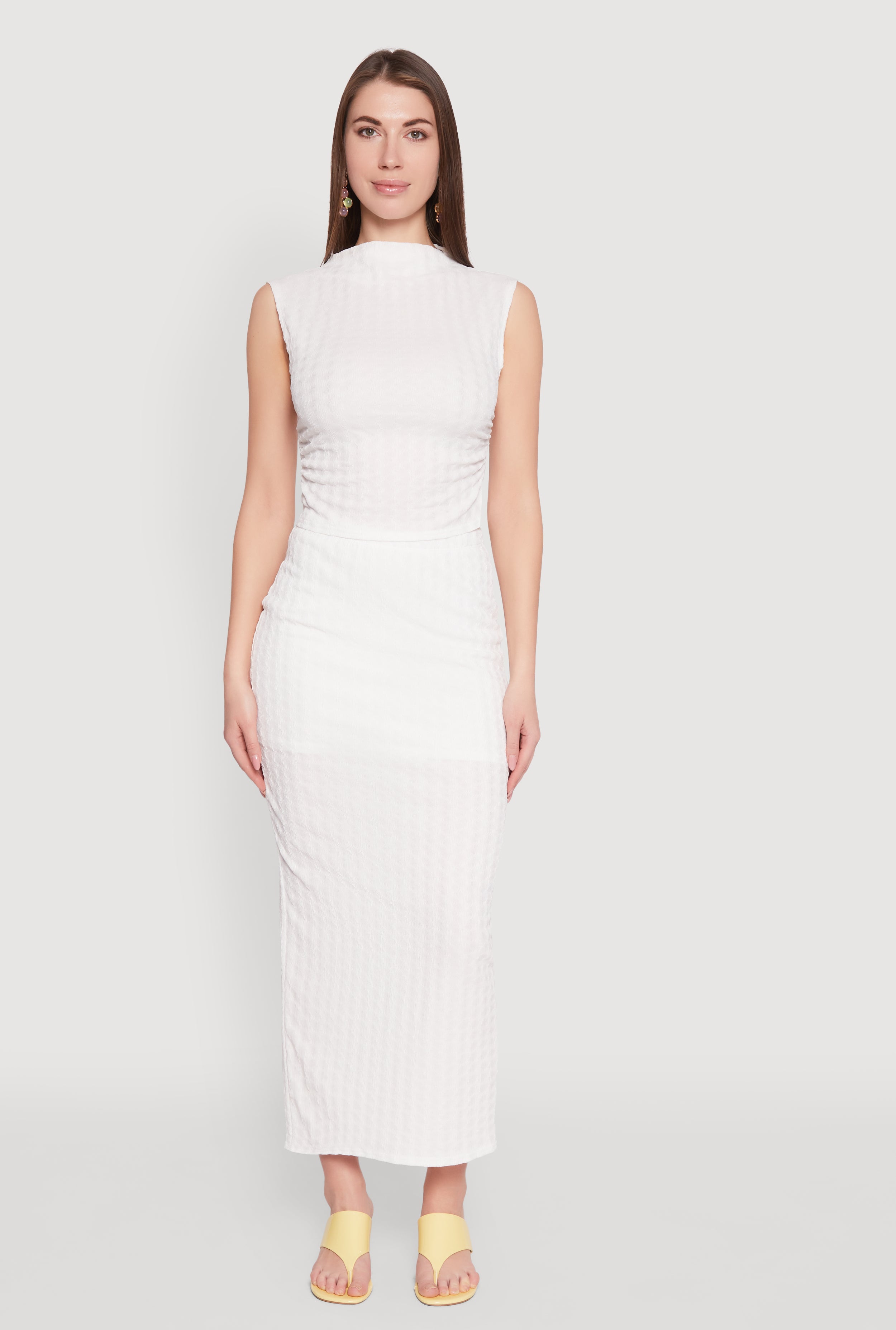 Upgrade your wardrobe with the Ruched Funnel Neck Sleeveless Top, a chic and versatile piece that effortlessly combines style and comfort. Perfect for casual days or dressing up for a night out, this blouse features a classic fit with a timeless silhouette. The textured knit material adds a touch of sophistication, while the cropped hem gives it a modern edge. Whether you're pairing it with jeans or skirts, this top is your new go-to for effortless fashion.