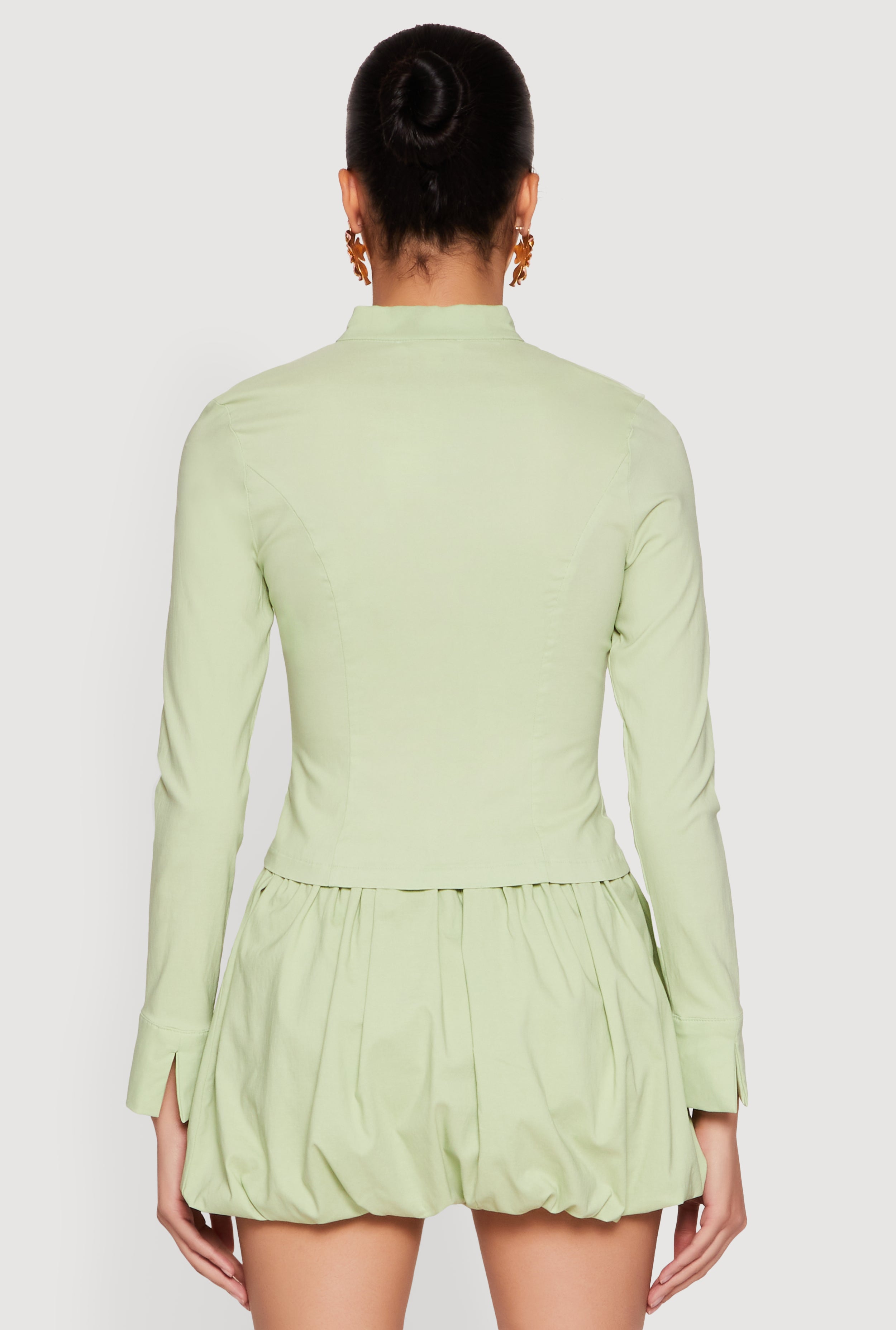 - Long sleeves and mock neck design for a sleek, sophisticated look