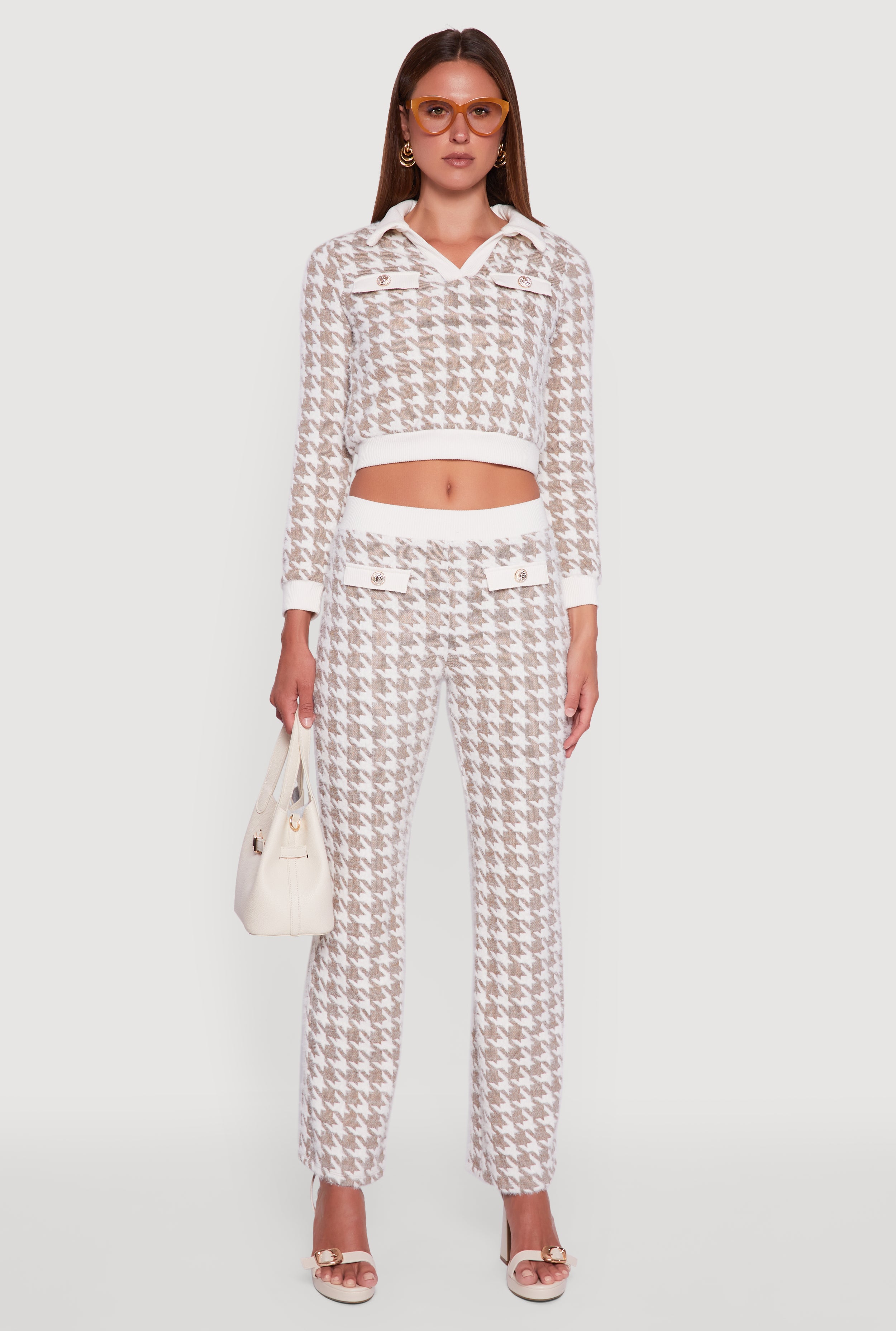 Step up your style game with this Houndstooth Cropped Sweater featuring a chic contrast trim collar. Perfect for those who want to blend classic vibes with a fresh twist, this sweater is your new go-to for casual days or office-ready looks. The timeless houndstooth pattern adds a touch of sophistication, while the cropped fit keeps things modern and fun. Bonus points for faux pockets that add style without the bulk. Whether you're heading back to school or just want to look effortlessly cool, this sweater has got you covered.