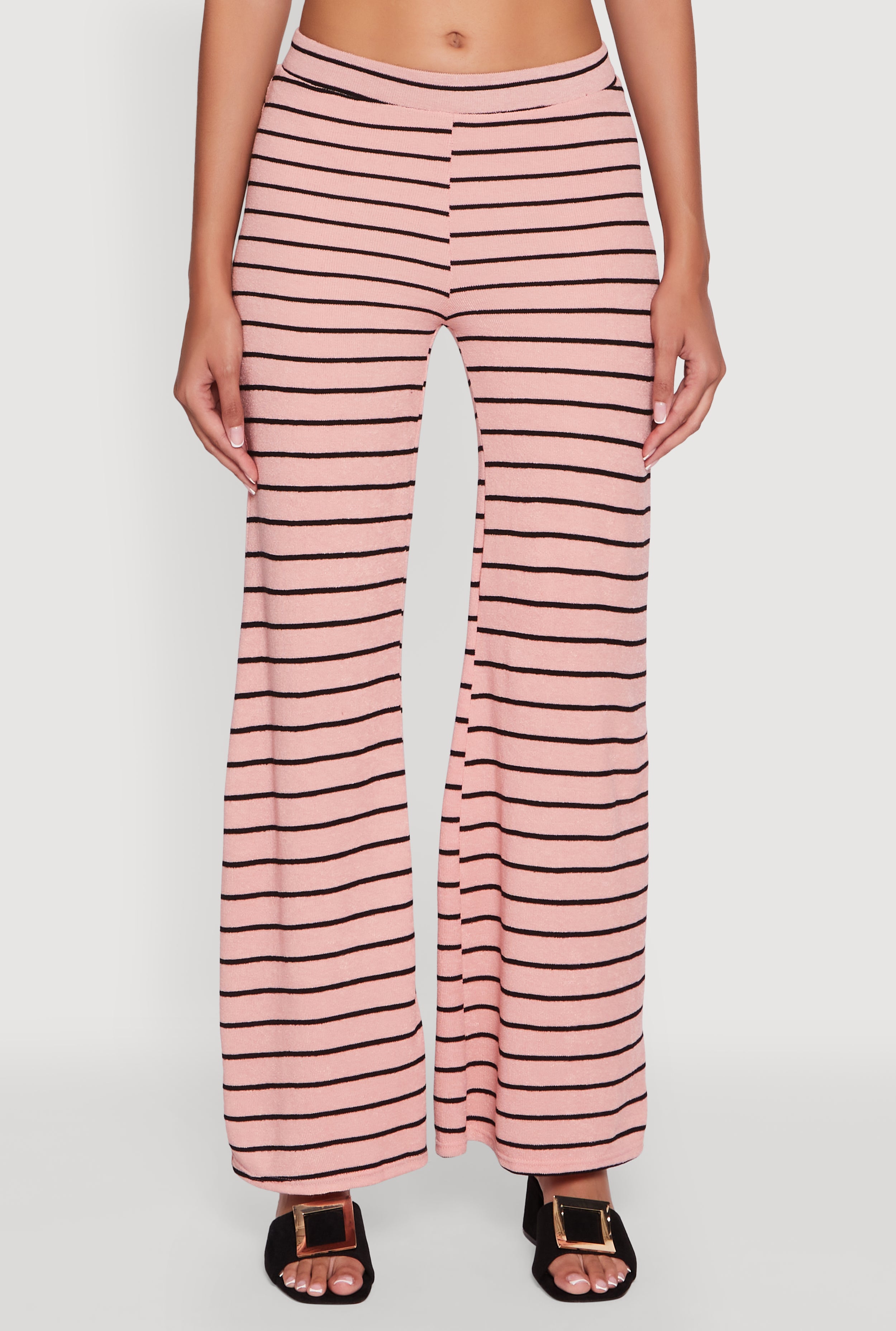 Step up your casual game with these Trendy Striped Brushed Knit Flare Leg Pants. Designed for ultimate comfort and effortless style, these pants are perfect for lounging or making a statement on your next vacation. The mid-rise waist and relaxed fit hug your curves just right while the full-length flare leg adds a retro twist that is totally on-trend. Soft brushed knit fabric feels like a dream against your skin, making these pants your new go-to for chill days and casual hangouts.