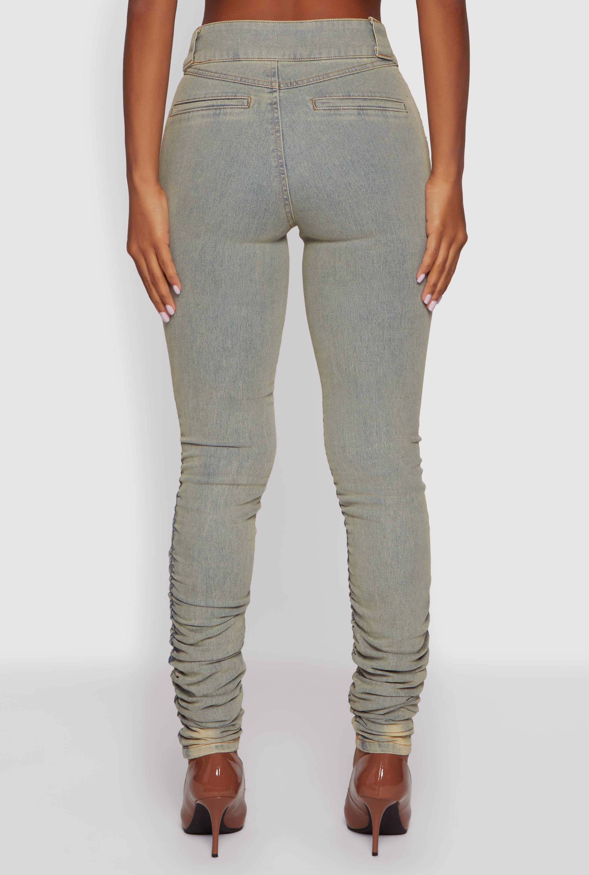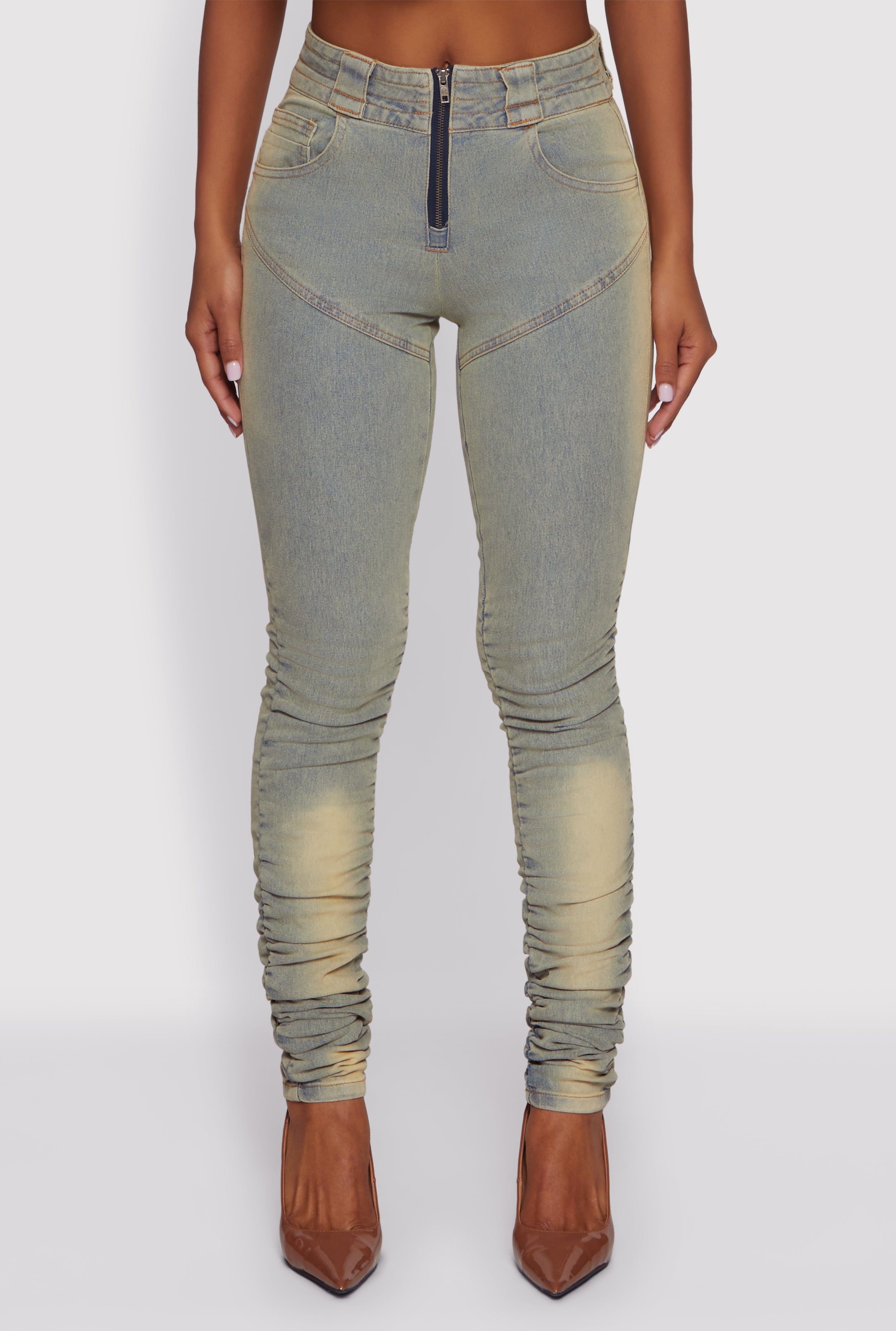 High Waisted Stacked Skinny Jeans with Zip Front