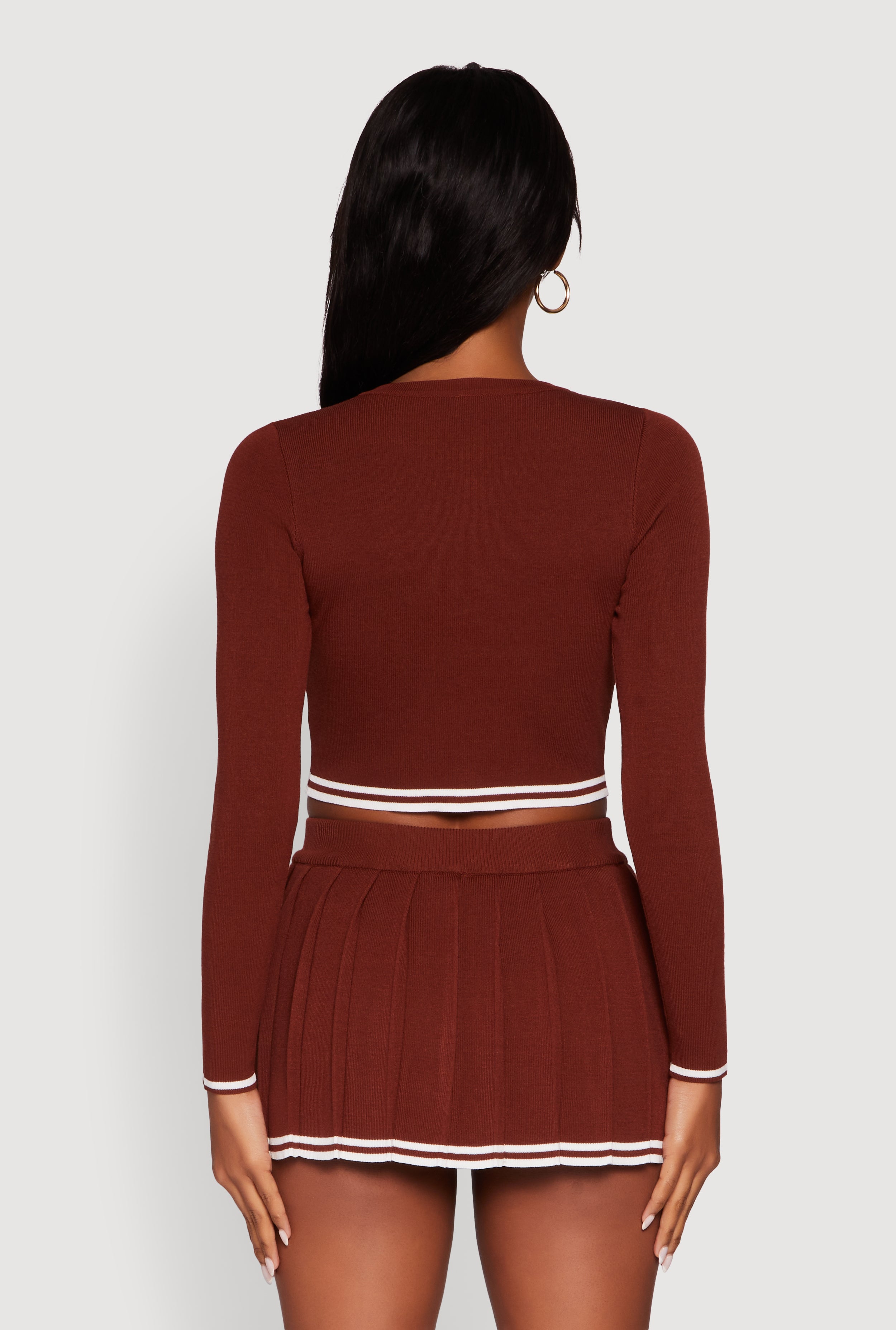 Meet your new go-to cardigan for chill days and back-to-school vibes. The Daisy Button Front Varsity Stripe Cardigan nails that perfect mix of sporty and cozy with its classic fit and high neck. Whether you're layering up for class or just hanging out, this long sleeve piece keeps it casual and cool with a timeless silhouette that never goes out of style. Button it up and step out in effortless athleisure flair.
