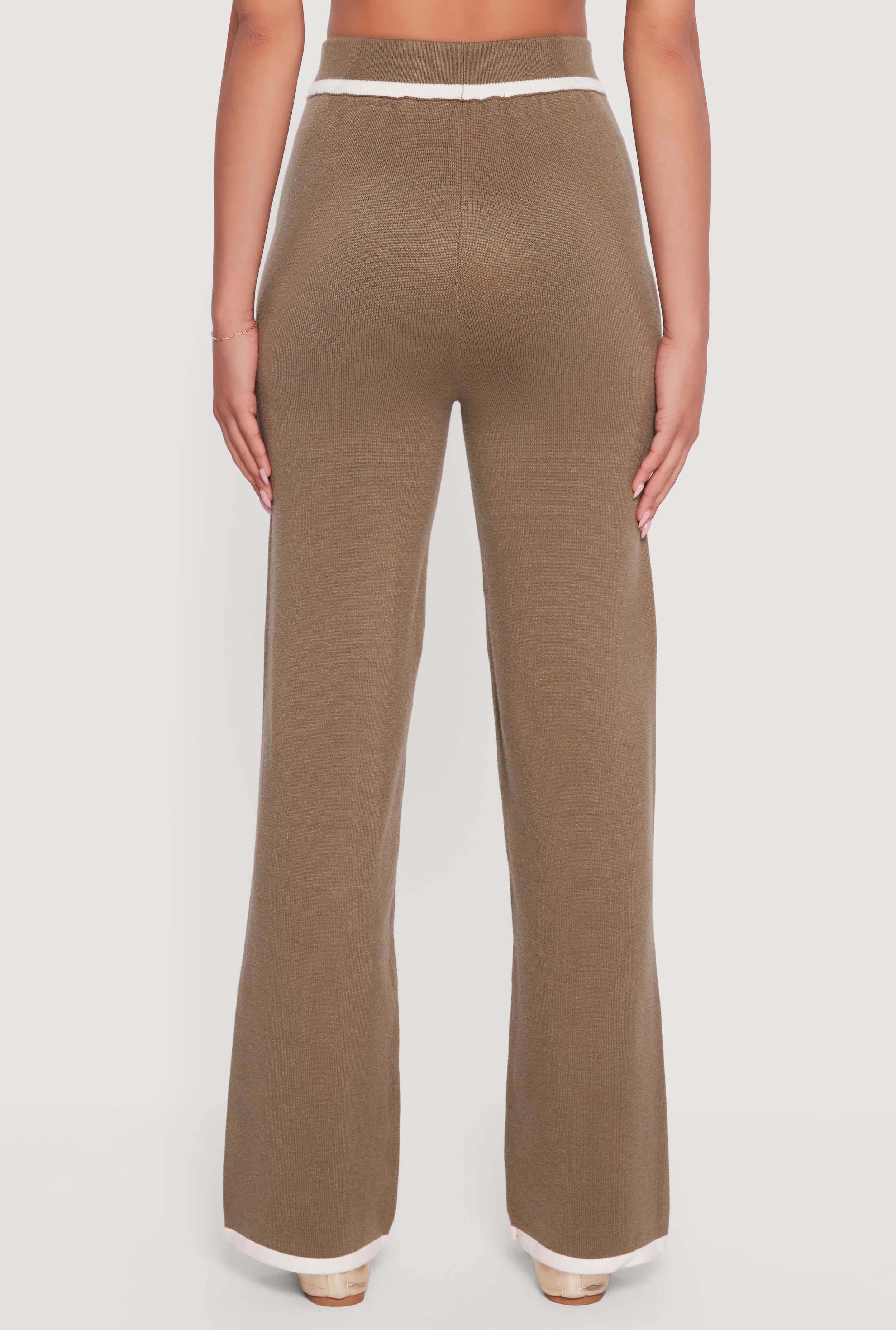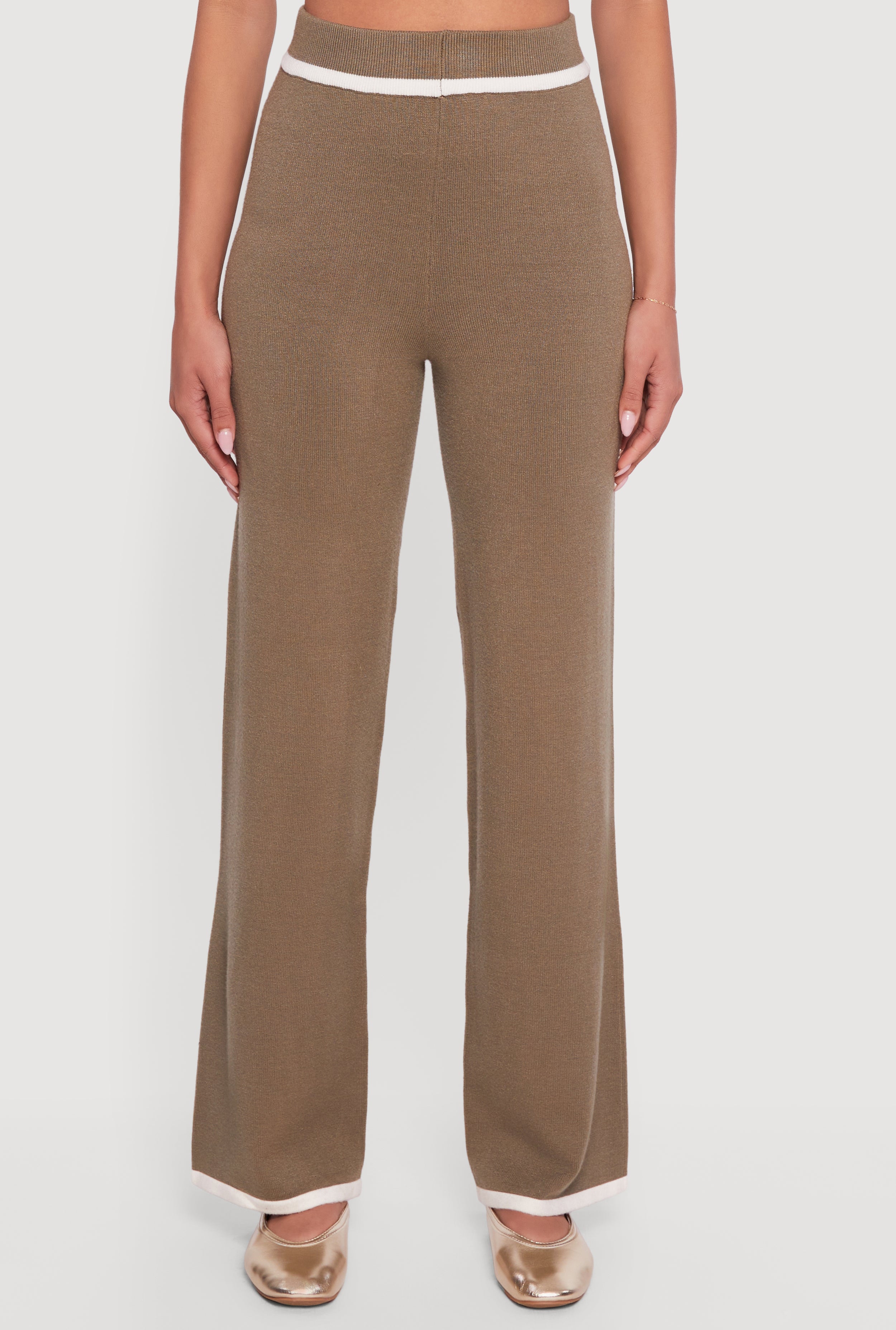 Contrast Trim High Waisted Straight Leg Casual Pants