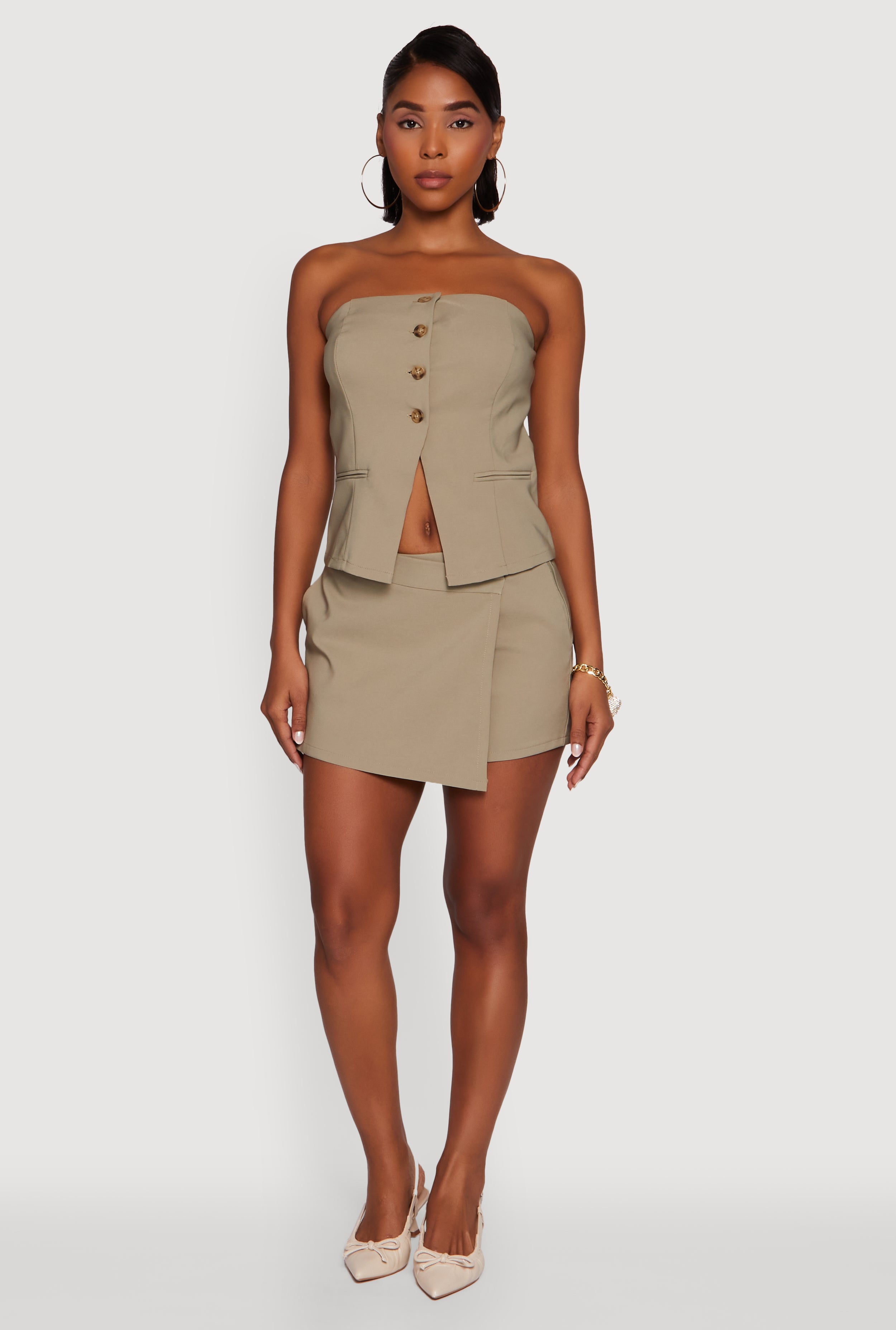 Step up your style game with the Haute Monde Strapless Blazer Corset Top. This sleek, cropped piece combines the sharpness of a classic blazer with the flirty edge of a corset, making it a must-have for your wardrobe. Whether you're dressing up for a night out or adding a chic twist to your daytime look, this strapless top delivers confidence and cool vibes in one effortlessly stylish package.