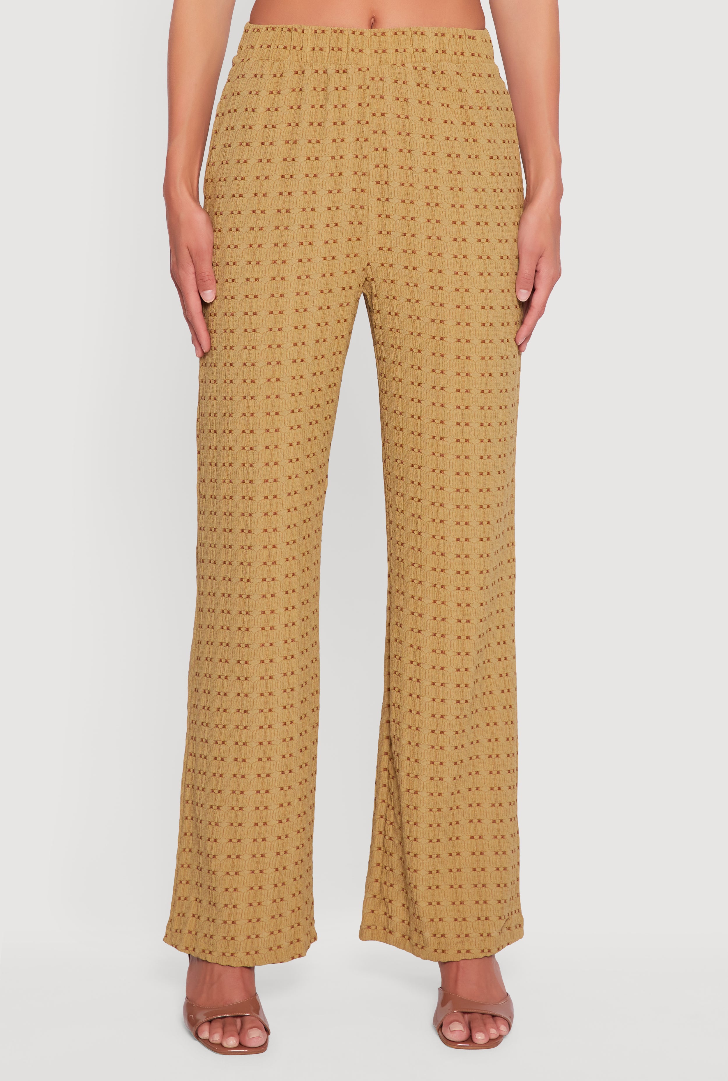 Textured Knit Decorative Stitch Wide Leg Pants
