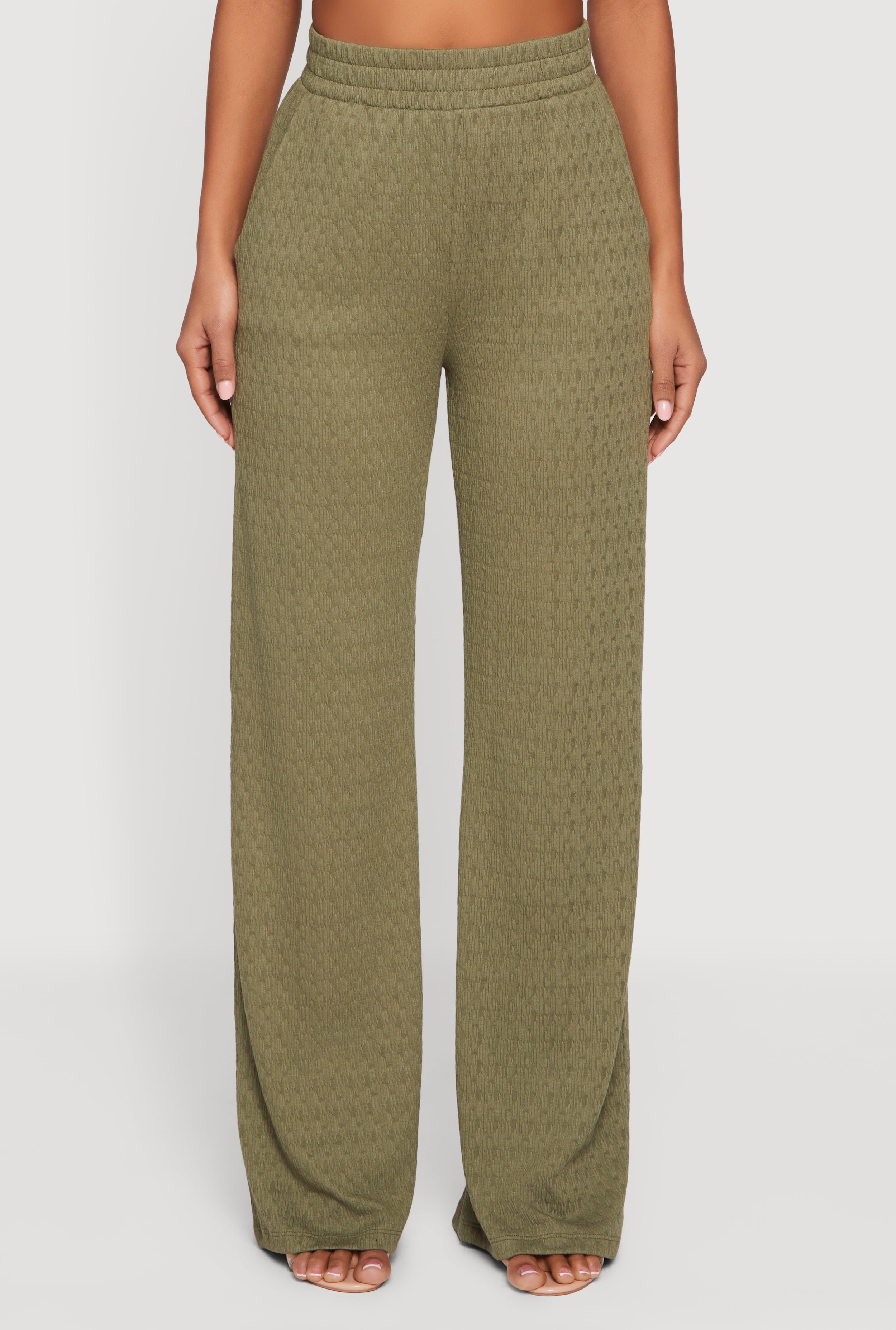 Textured Knit High Waisted Pull On Straight Leg Pants