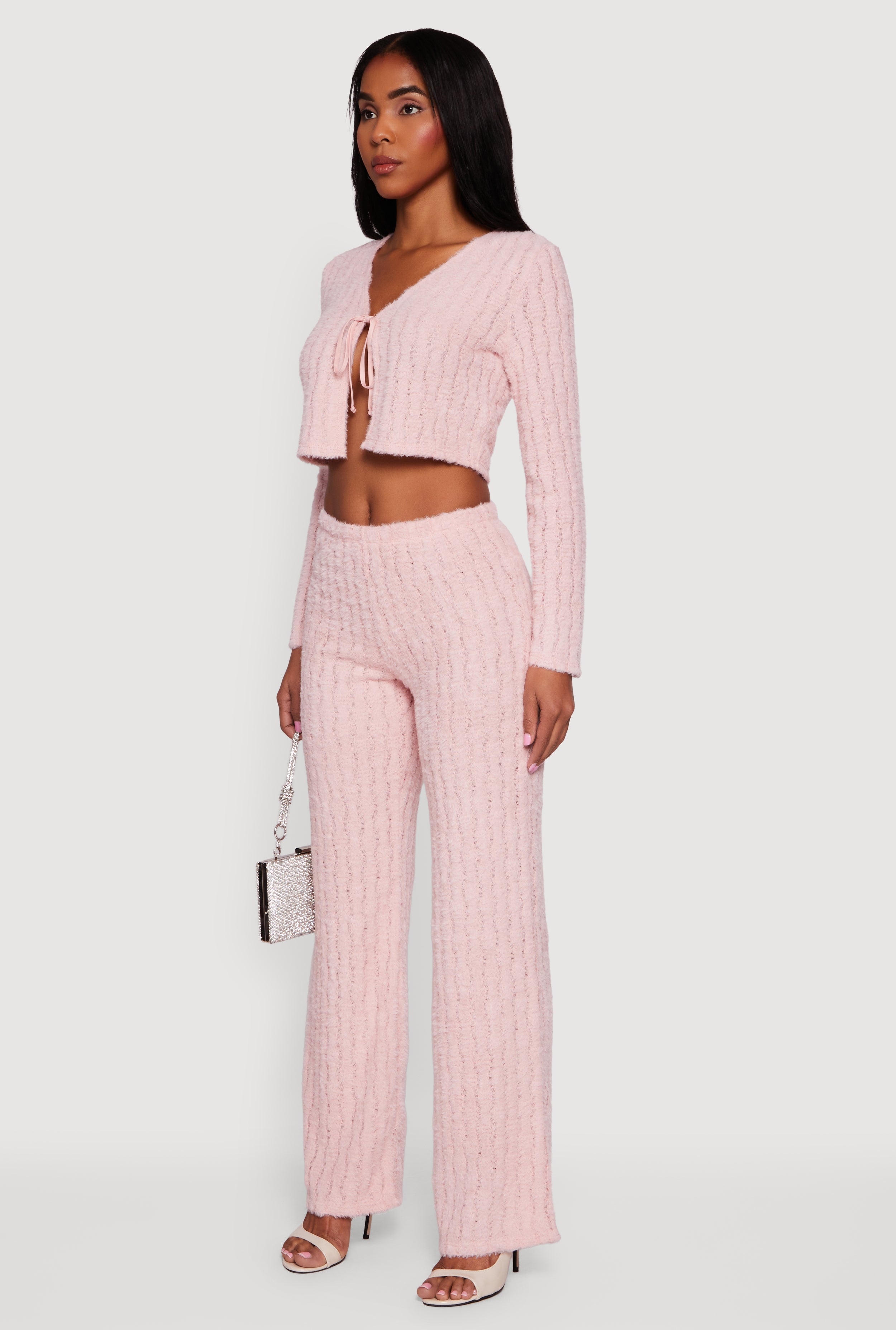 Step up your style game with this Eyelash Knit Tie Front Long Sleeve Crop Top. Crafted from soft eyelash knit fabric, it offers a cozy yet chic vibe that’s perfect for casual days or a night out with friends. The flattering V-neckline and tie-front detail add a playful touch, while the classic fit ensures comfort without sacrificing style. Pair it with high-waisted jeans or a skirt for an effortlessly cool look that’s totally on-trend.