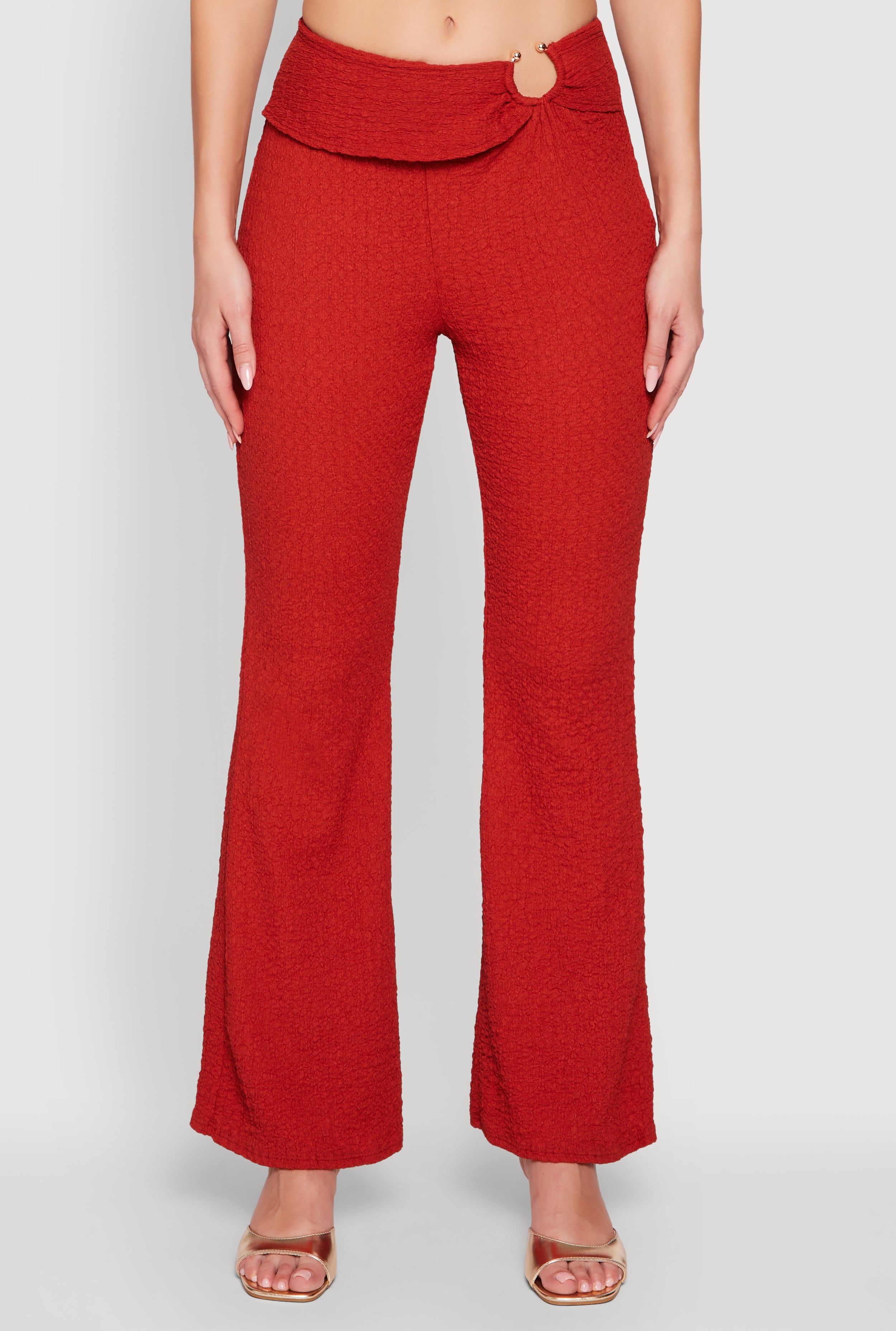 Metallic O-Ring Keyhole Belted Front Flare Pants