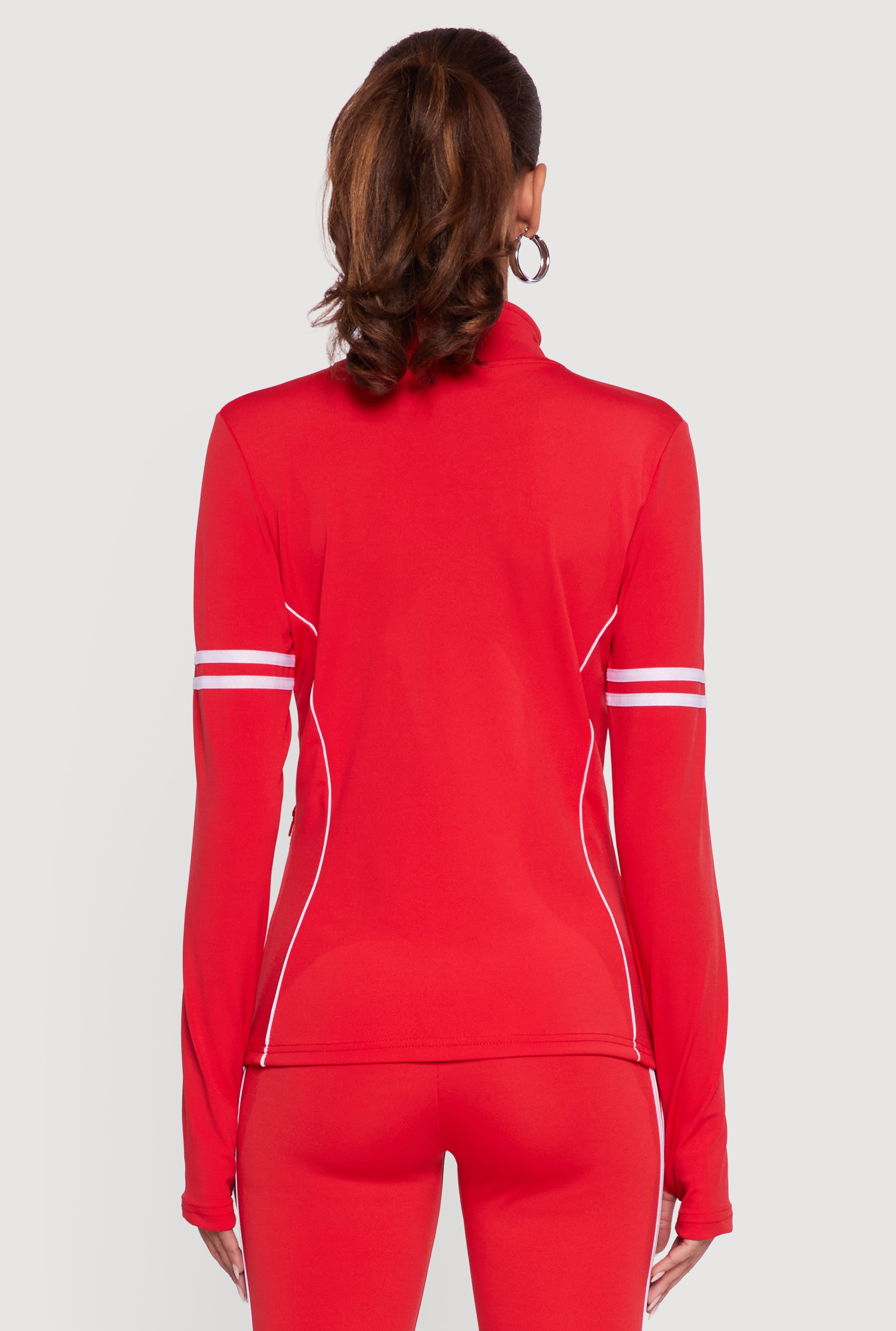 Zip Front Mock Neck Varsity Stripe Track Jacket