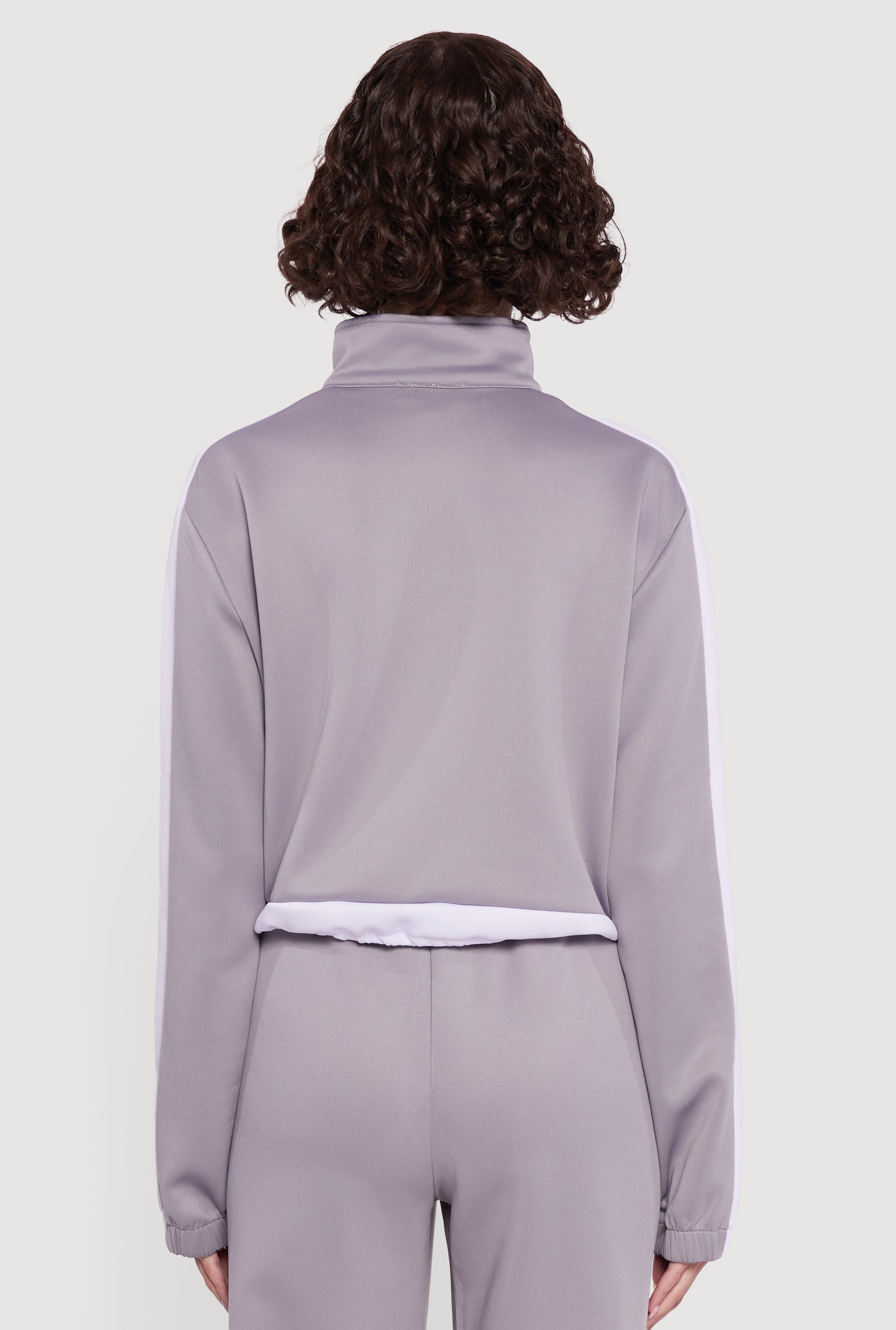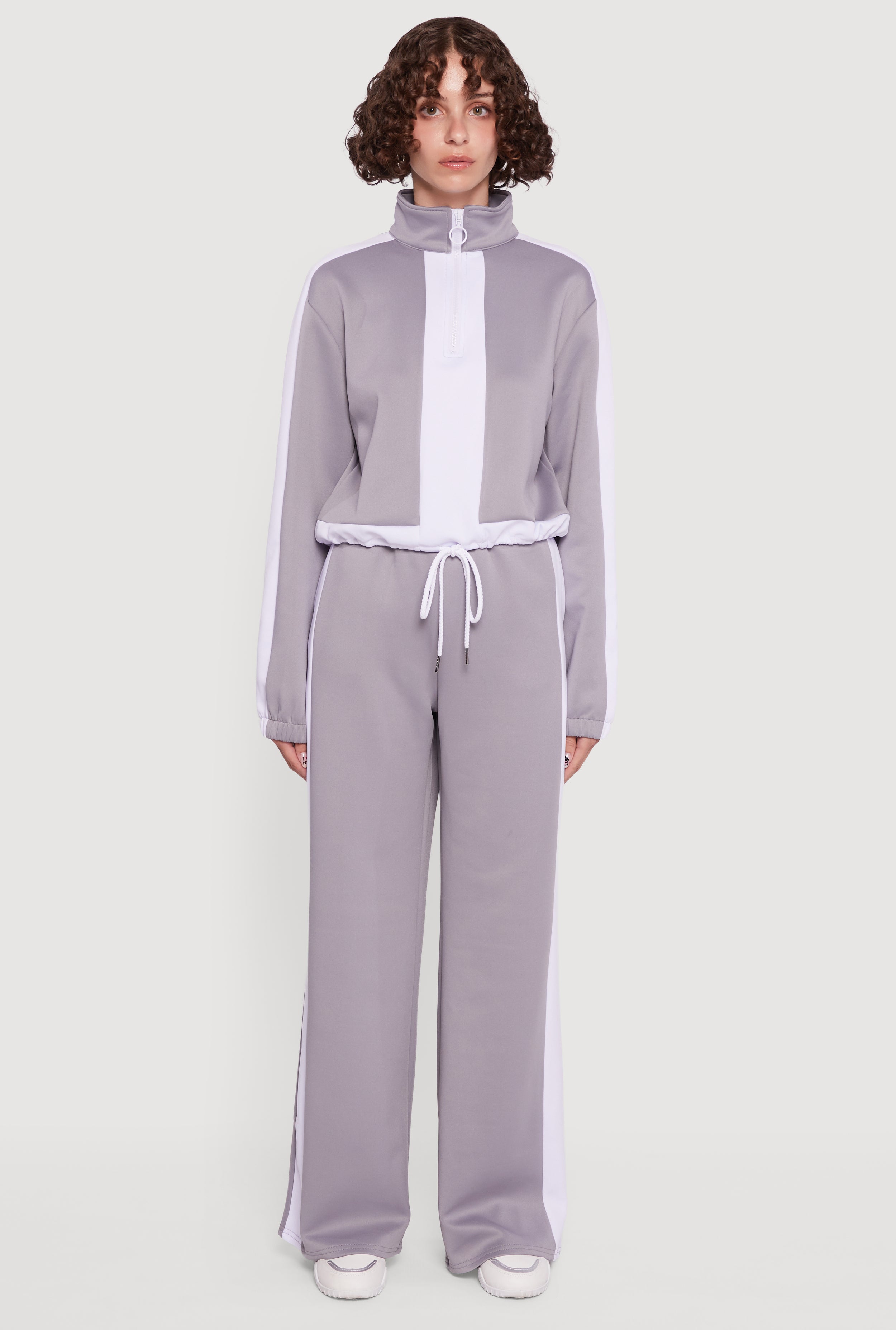 Contrast Trim Half Zip Drawstring Hem Pullover Top