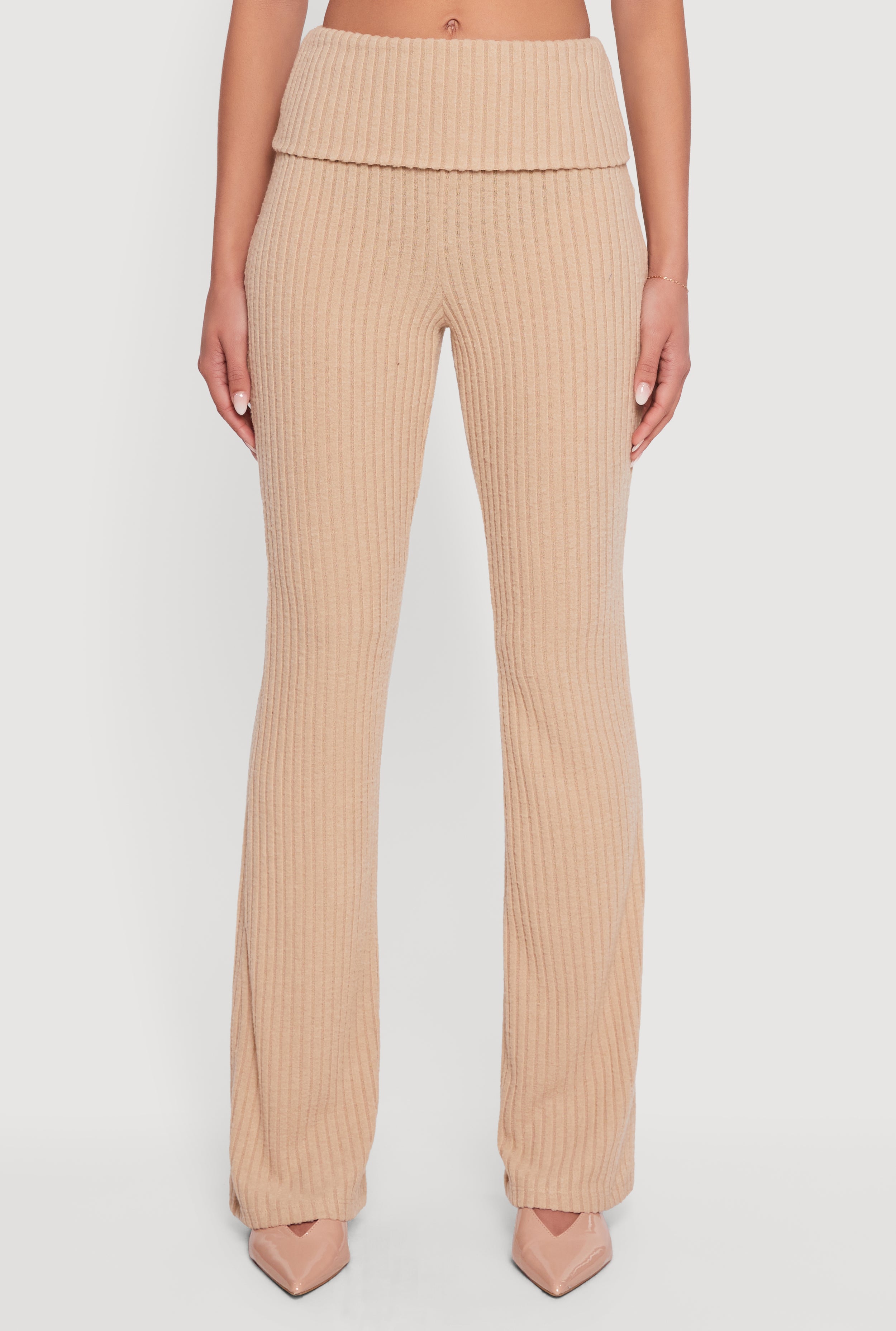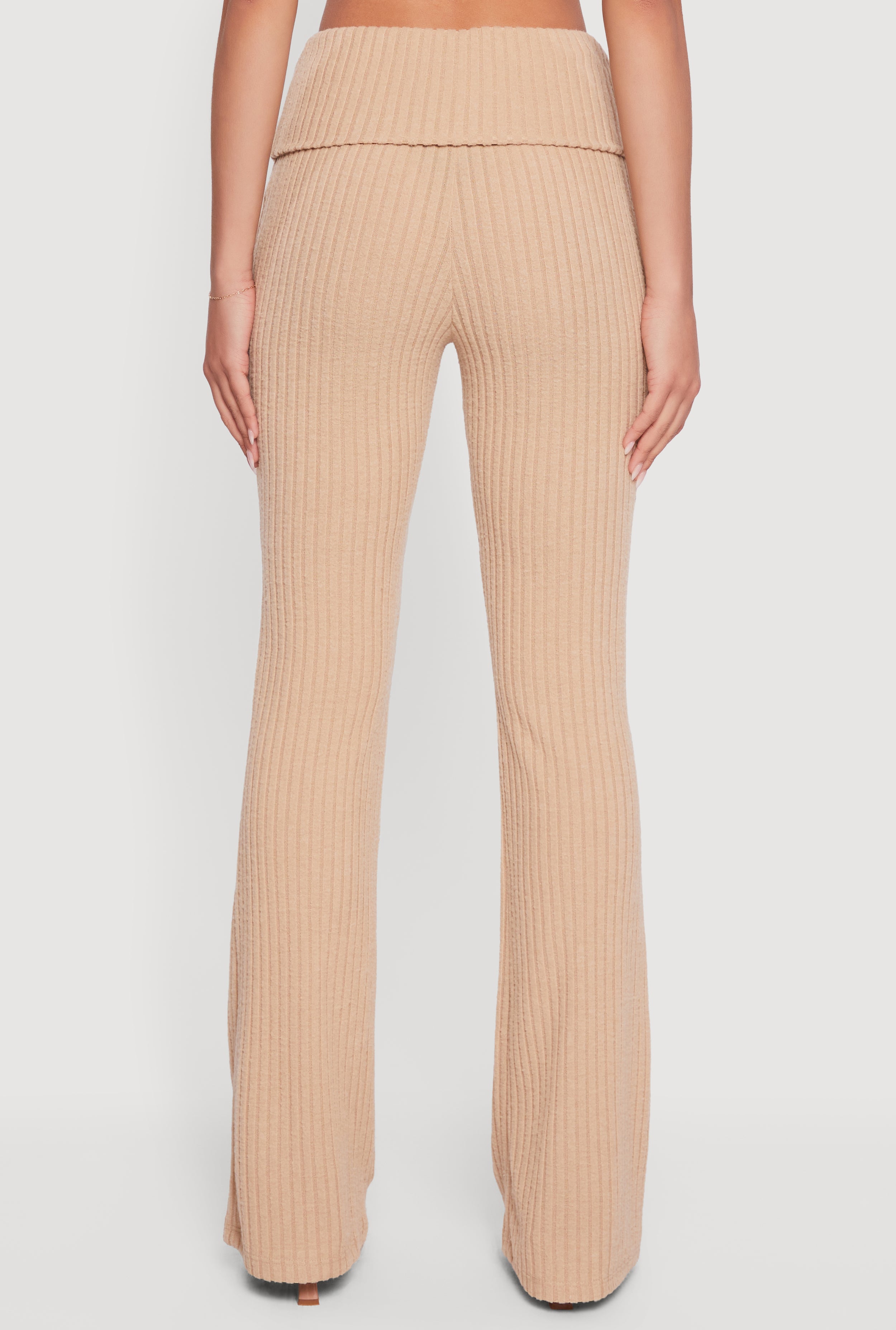 Step up your casual game with these Fold Over High Waisted Flare Leg Ribbed Knit Pants. Designed to hug your curves in all the right places, they feature a flattering high waist and a trendy fold-over detail that adds a cool twist to your everyday look. The ribbed knit fabric offers cozy comfort with just the right amount of stretch, while the classic fit and full flare leg create a stylish silhouette that moves with you. Perfect for lounging, running errands, or meeting friends, these pants will quickly become your go-to for effortless style.
