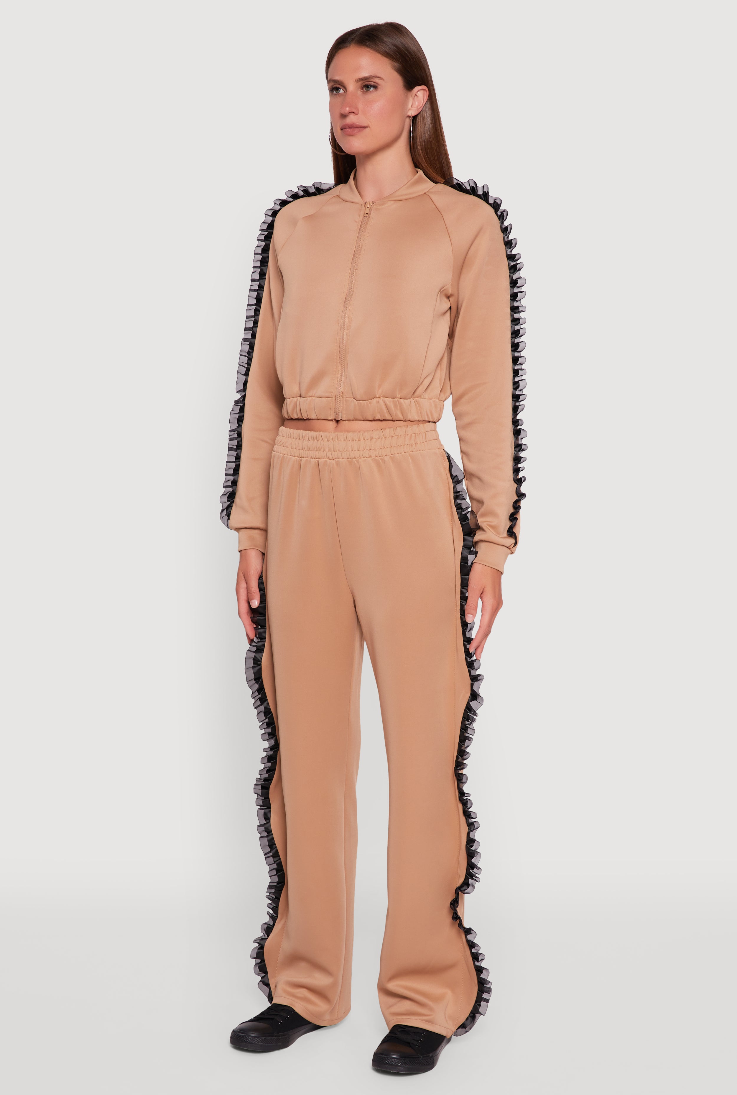 Step up your casual game with the Ruffle Chiffon Organza Long Sleeve Zip Front Jacket. This lightweight, cropped jacket blends delicate chiffon and airy organza for a dreamy, effortless look. The playful ruffles add a flirty touch while the band collar and zipper closure keep it sleek and modern. Perfect for layering over your athleisure or leisurewear, it’s your new go-to for chill days when you want to feel comfy and cute without trying too hard.