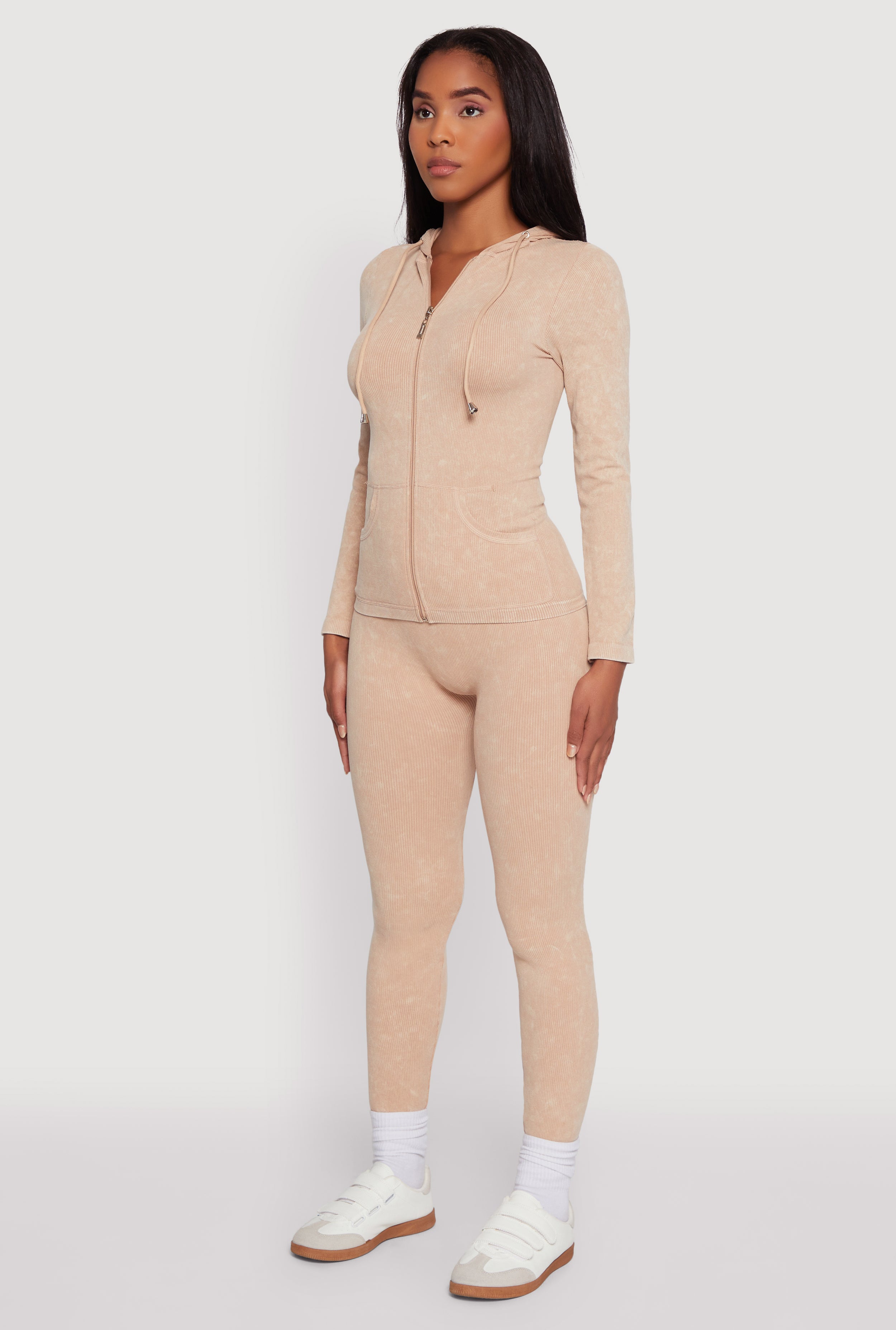 Seamless Acid Wash Zip Front Hooded Sweatshirt