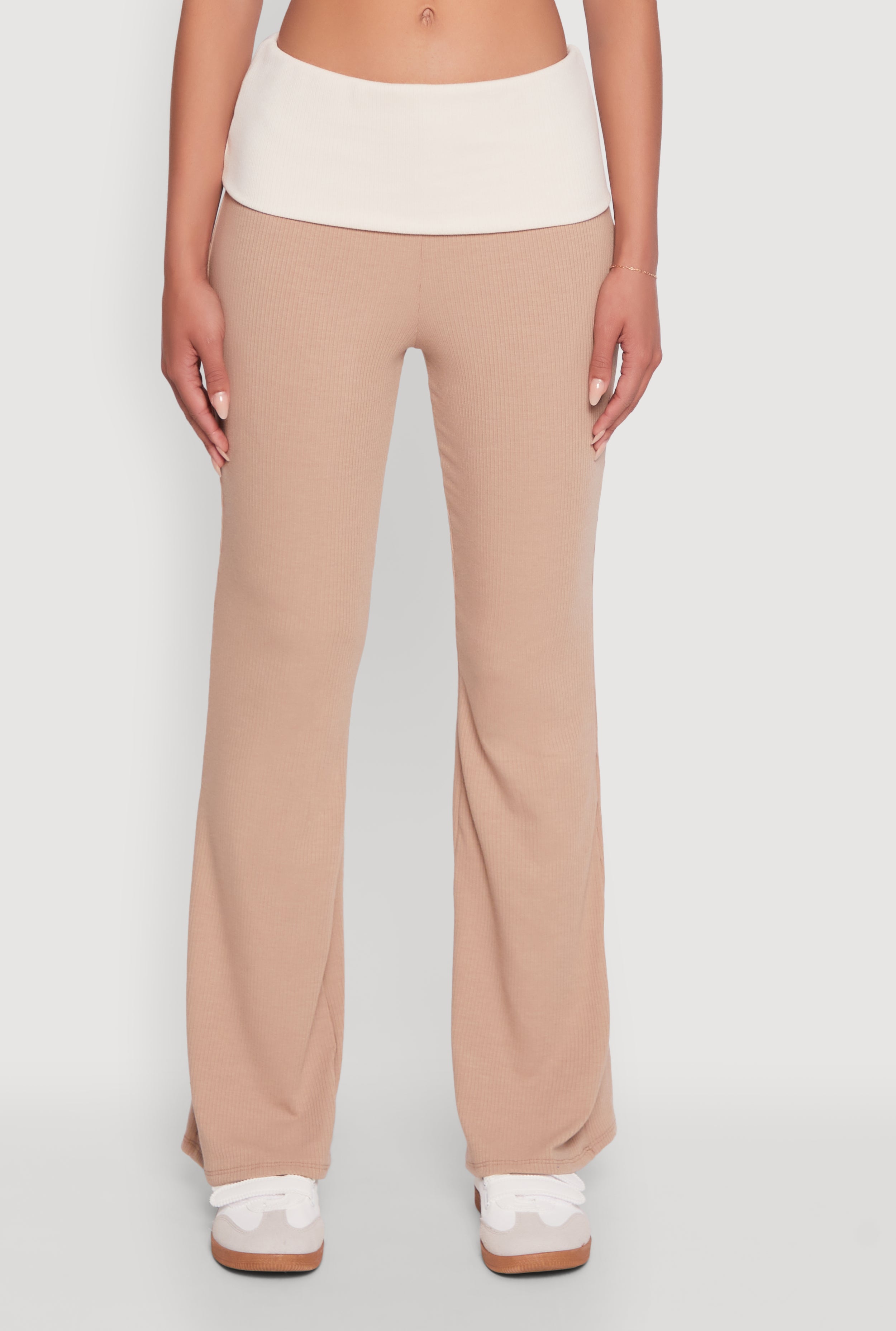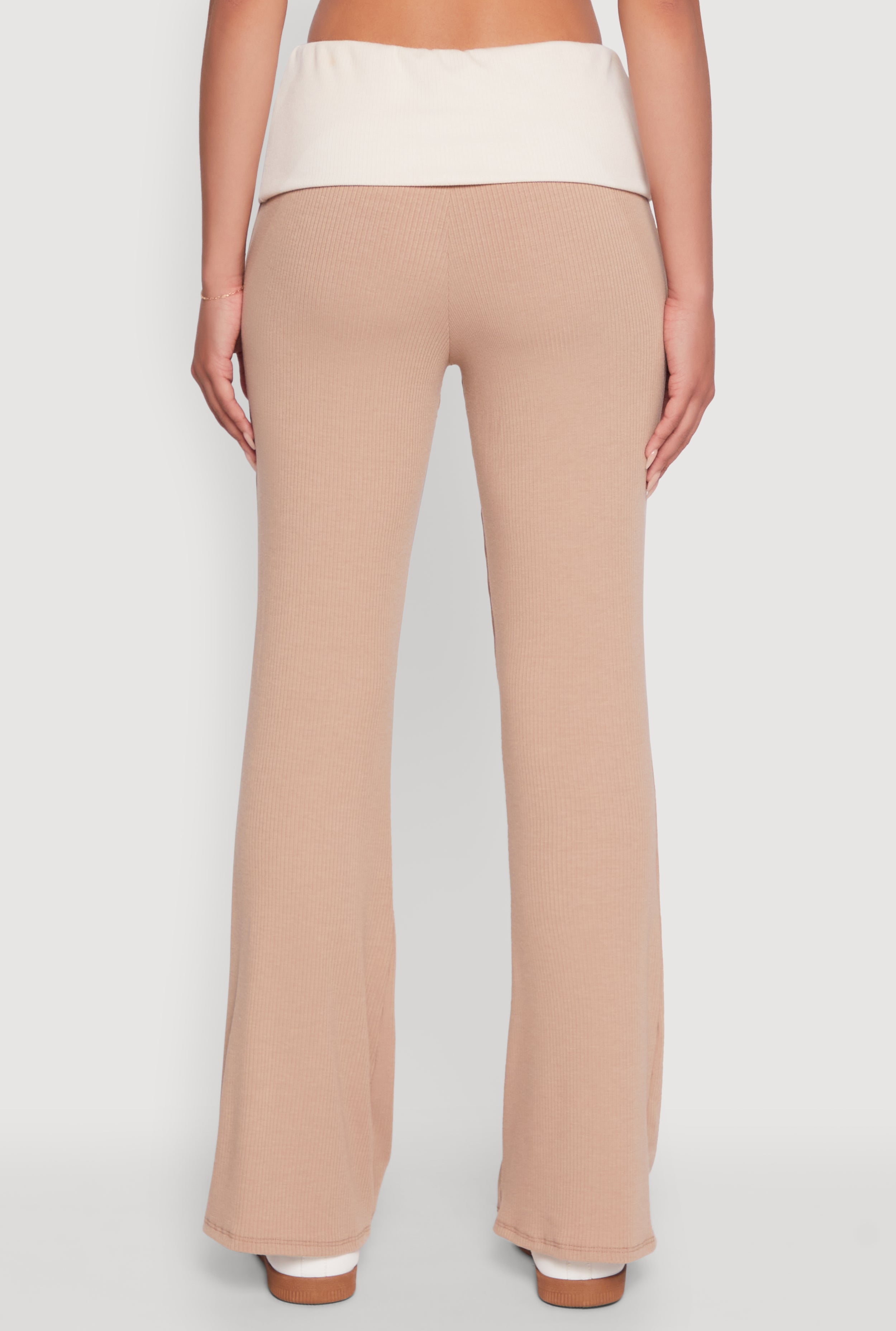 Stylish Rib Knit Contrast Fold Over Bootcut Pants