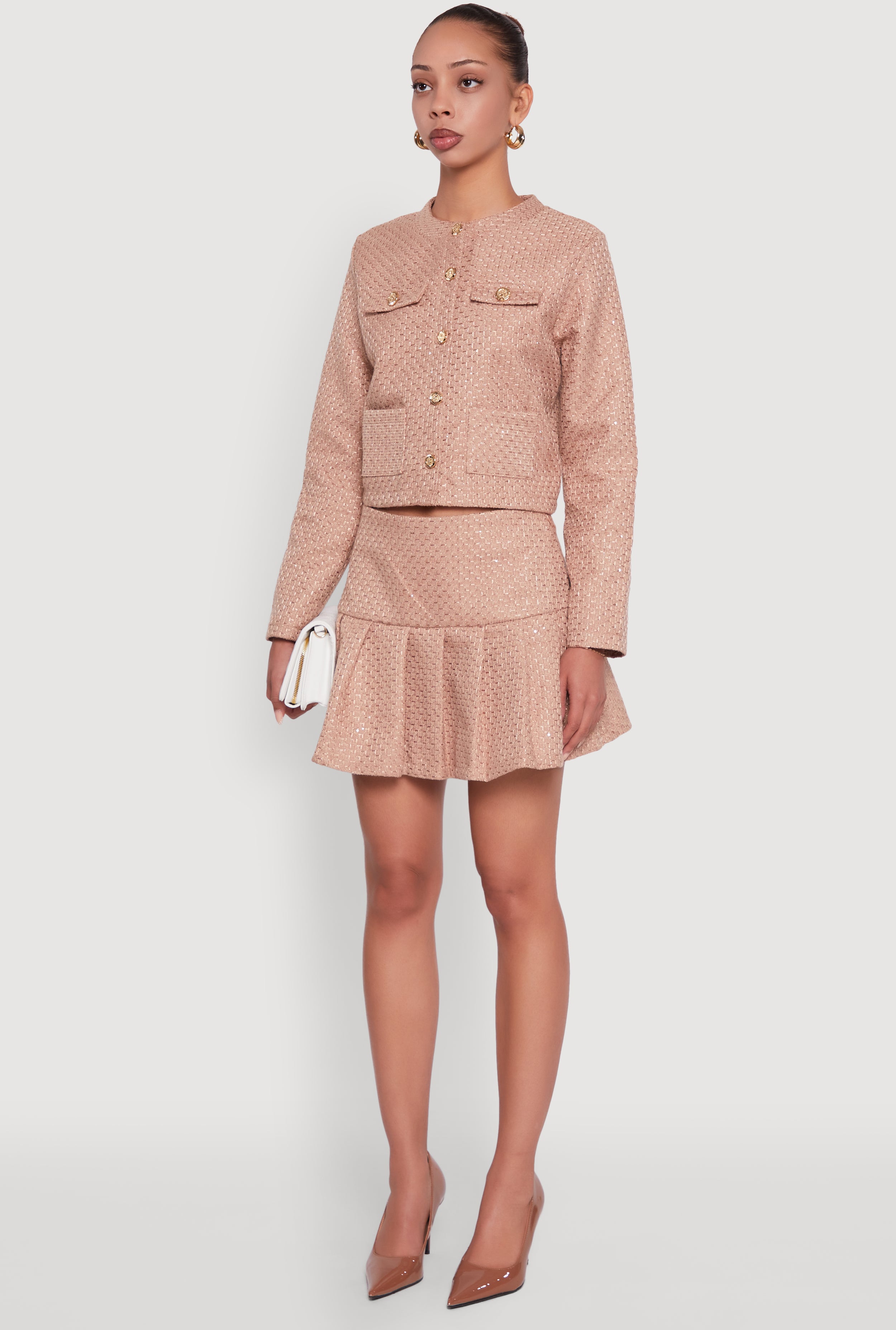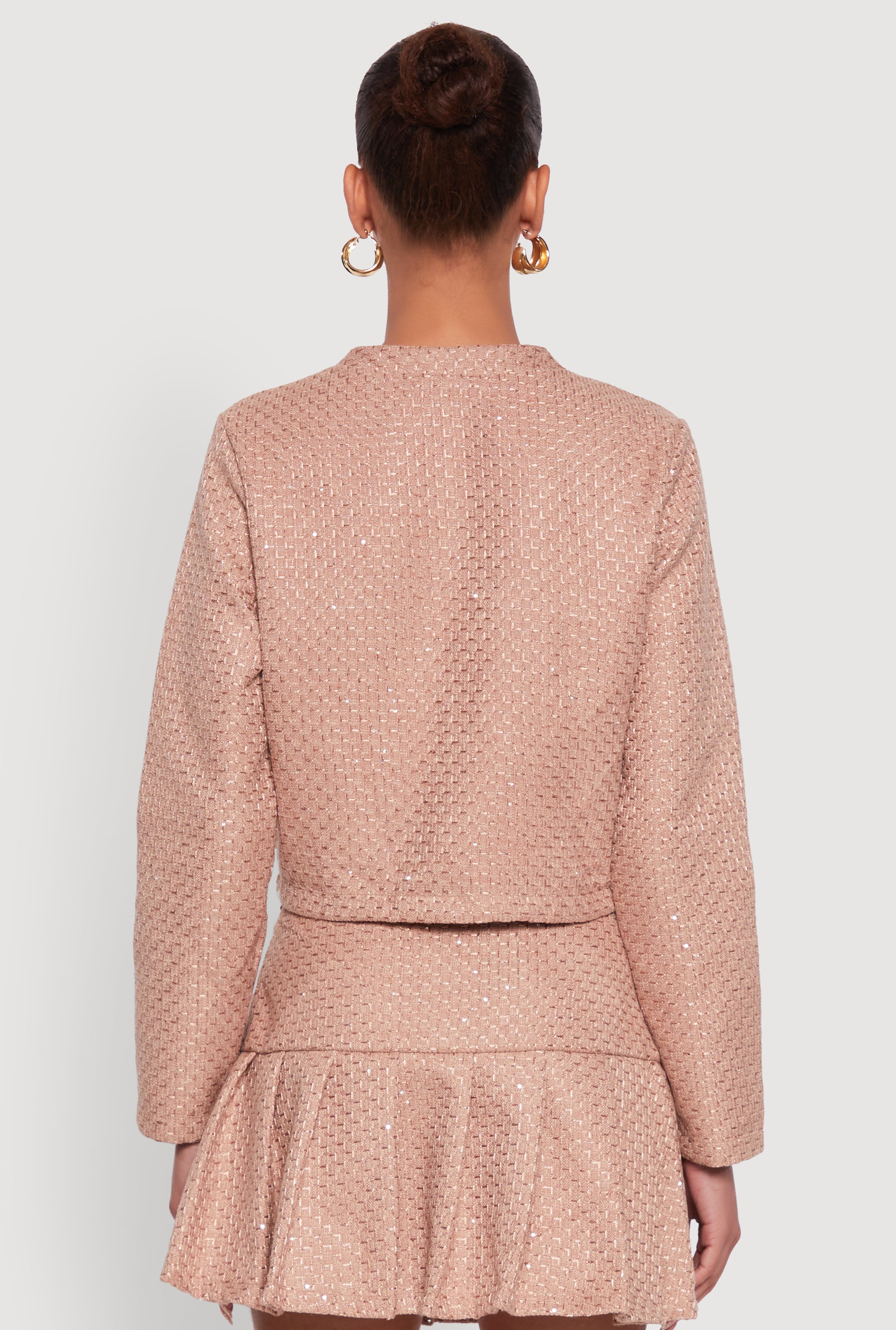 Step up your style game with this Tweed Flap Pocket Cropped Button Front Blazer. Perfect for nights out and parties, this blazer brings a chic mix of classic tweed and eye-catching sequin details. The cropped fit and mock neck add a modern twist that pairs effortlessly with your favorite high-waisted jeans or skirts. Button it up for a polished look or leave it open to keep things casual but cool.
