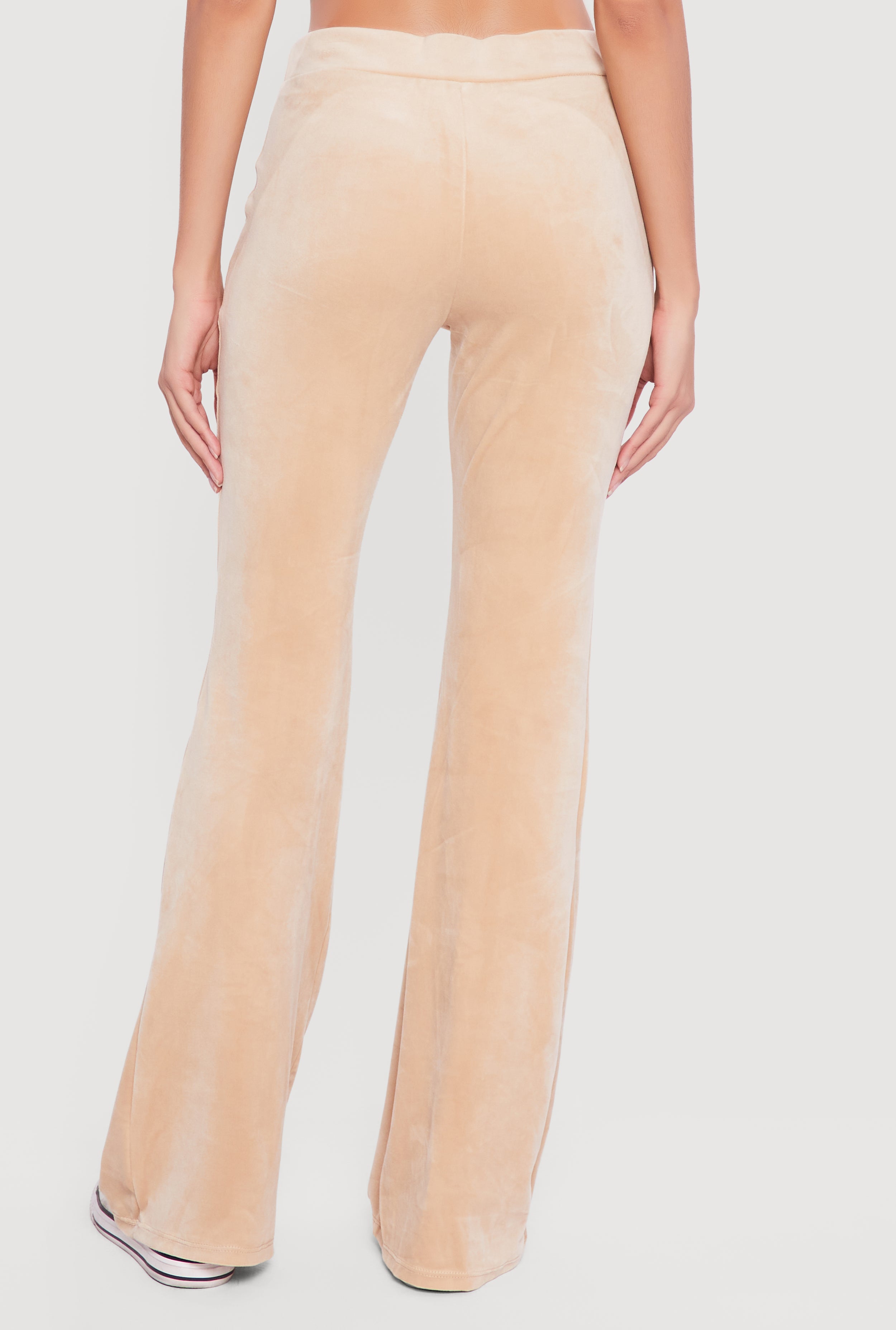 These mid-rise pants feature a classic fit with a faux drawstring waist and flare-leg silhouette that hits at the ankle. Crafted from soft velour, they bring a casual vibe with a smooth, plush texture perfect for relaxed days. The solid design pairs easily with your favorite tops for versatile styling.