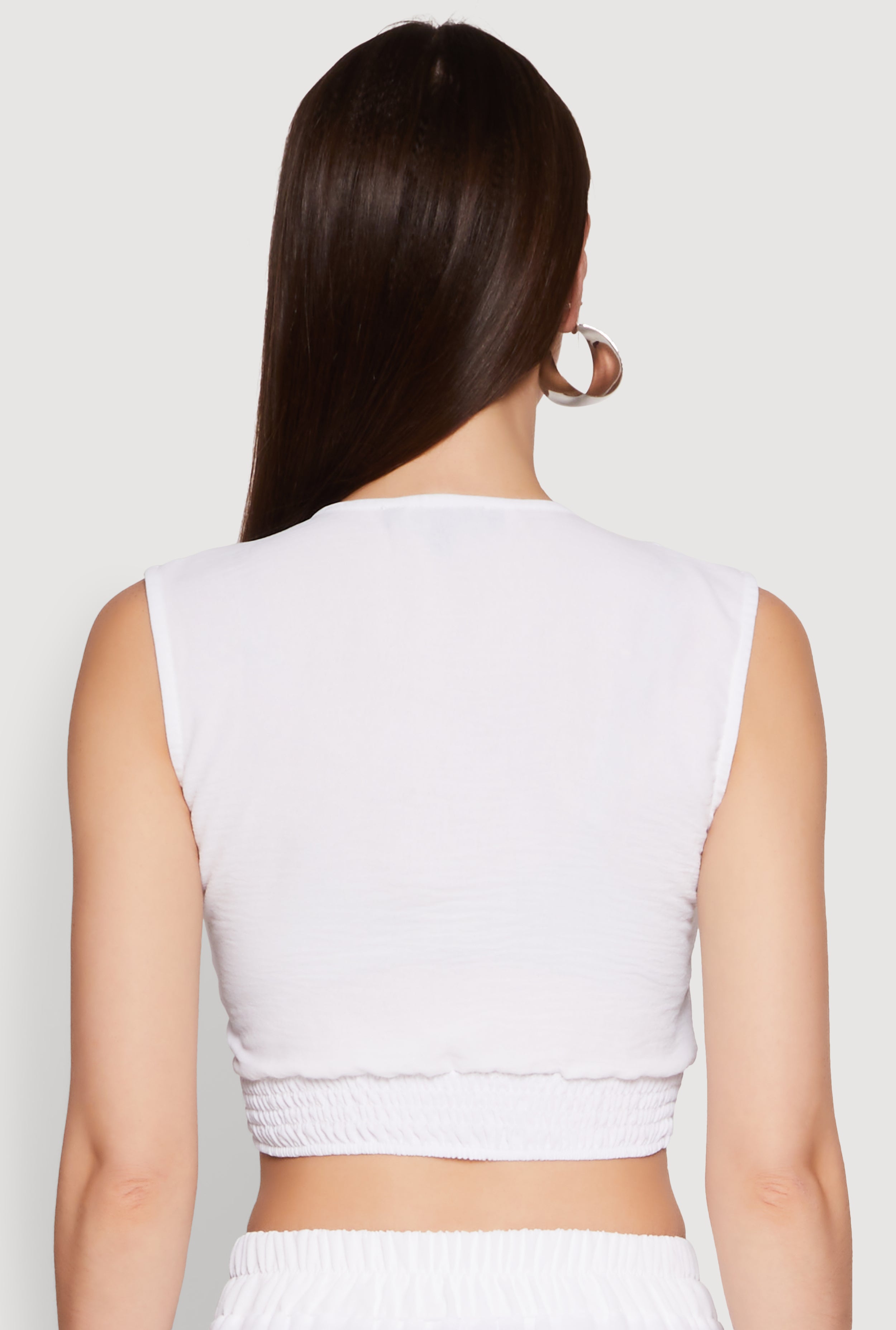 Turn heads effortlessly with the Chic Crepe Knit V Neck Sleeveless Crop Top with Belted Front. Its classic fit and timeless silhouette make it a versatile staple for your wardrobe, perfect for mixing and matching with your favorite bottoms. The belted front adds a touch of flair, while the crepe knit fabric ensures all-day comfort. Whether you're heading out with friends or just want to elevate your everyday look, this crop top is your new go-to piece for style and ease.