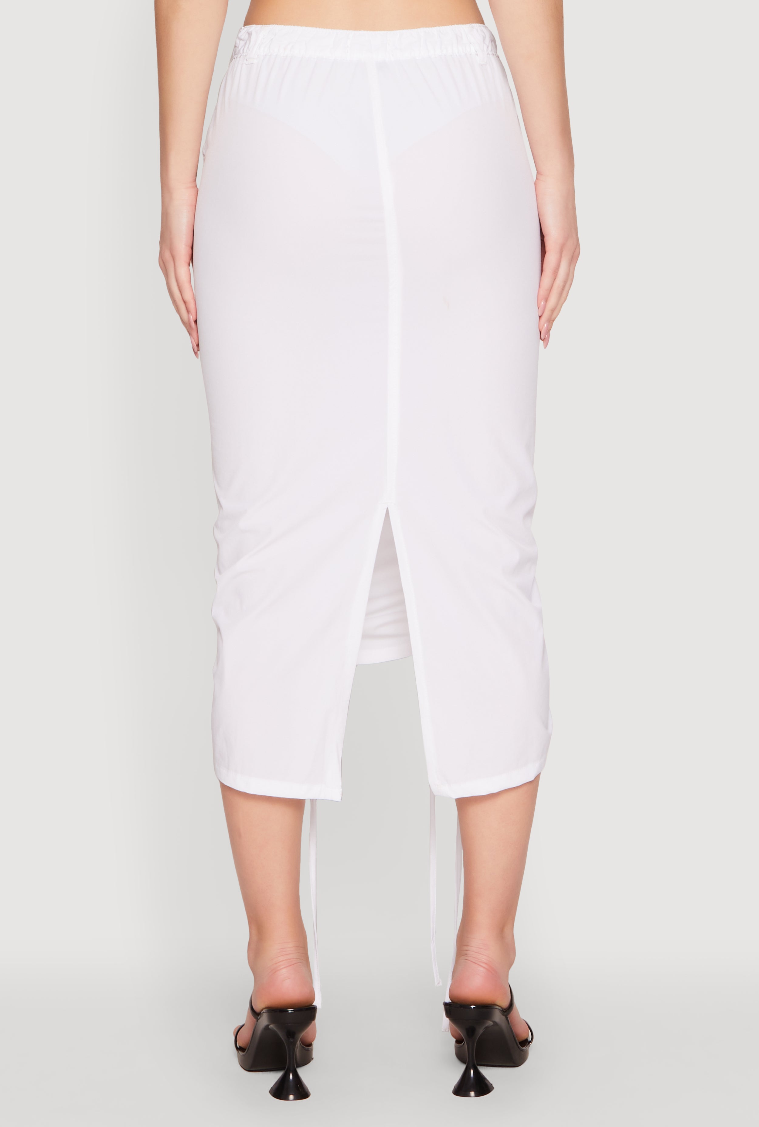Step up your style game with the High Waisted Grommet Detail Drawstring Skirt. This midi-length beauty is designed to turn heads with its trendy grommet accents and adjustable drawstring waist. Whether you're heading out for a casual day or dressing up for a night out, this skirt offers the perfect blend of comfort and edge. The back slit adds a hint of flirtiness, making it a must-have for fashion-forward women who love to stand out.