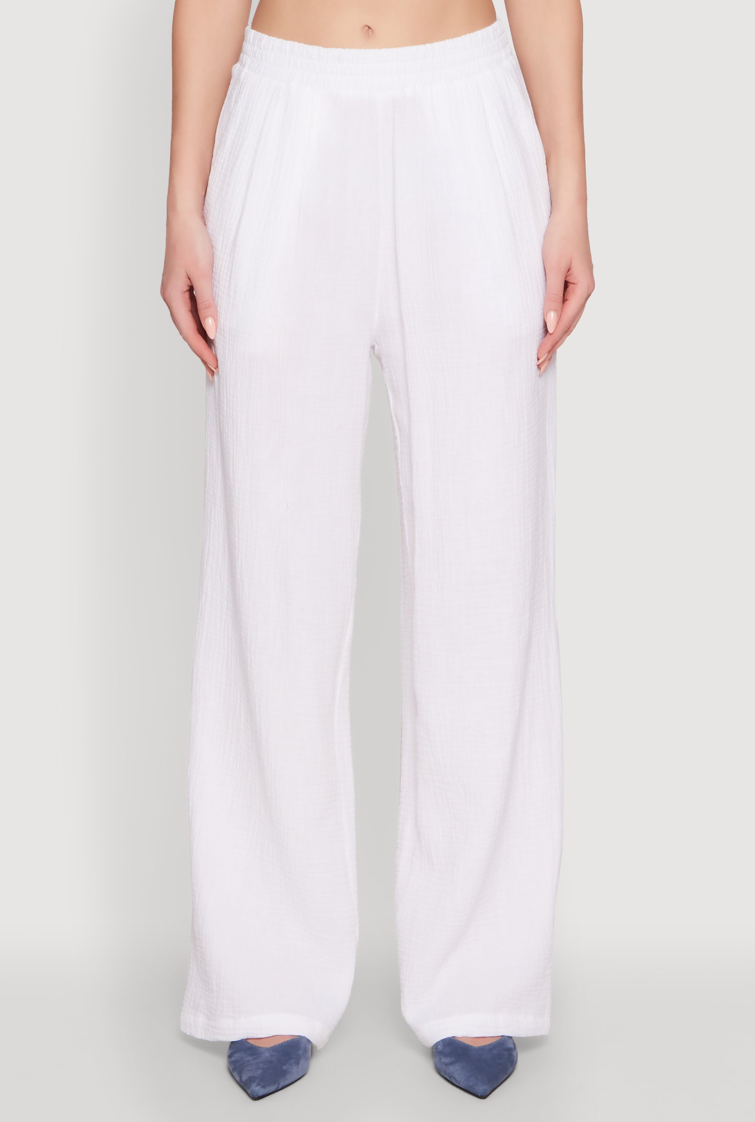 Elevate your wardrobe with these effortlessly chic Stylish Gauze Knit Elastic Waist Pleated Palazzo Pants. Designed for comfort and style, these wide-leg trousers are perfect for turning heads whether you're out shopping, brunching with friends, or just lounging in style. The breathable gauze knit fabric and flattering pleats make them a must-have for any fashion-forward woman looking to stay cool and confident all day long.