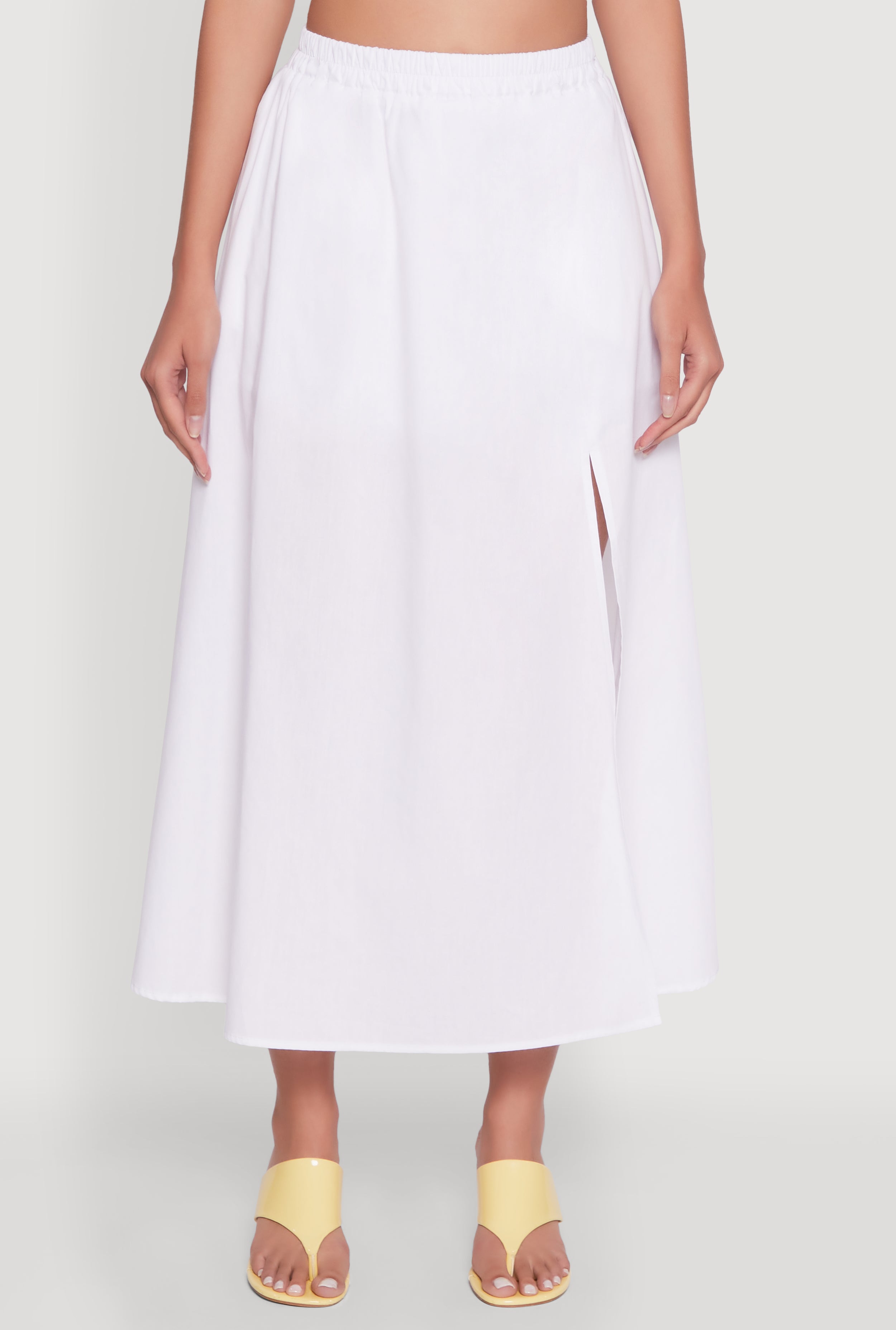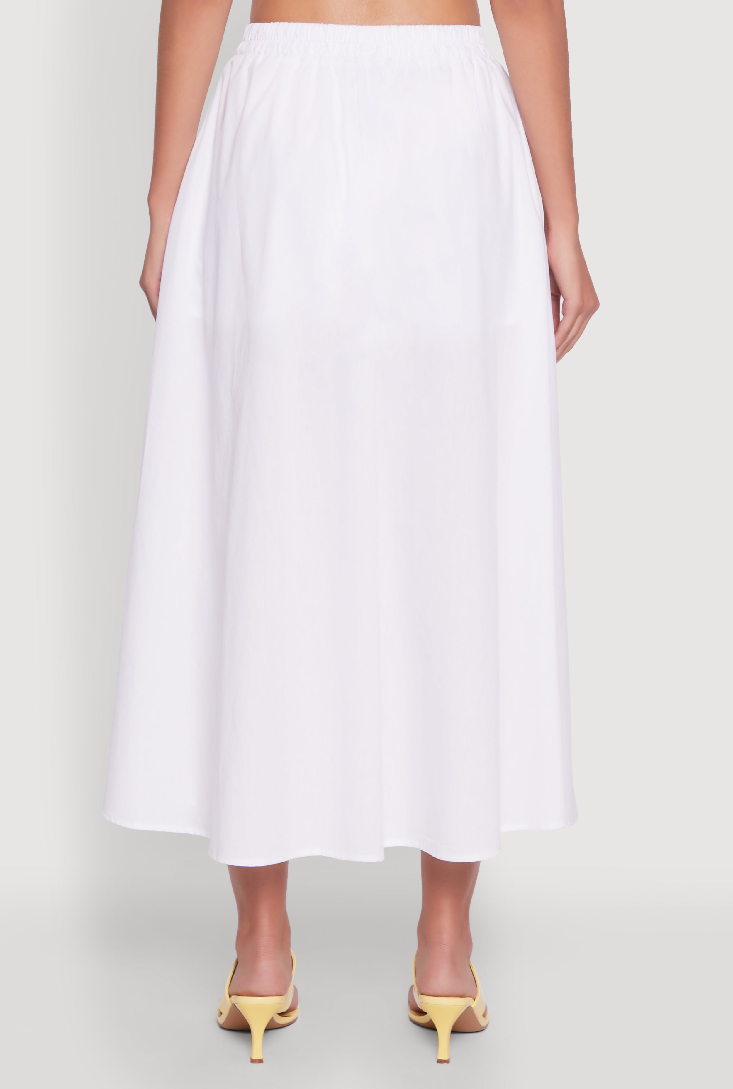 Step up your style game with our trendy Poplin High Waisted Side Slit Midi Skirt. Perfect for turning heads, this skirt offers a chic high waist and a playful side slit that adds just the right amount of flirty flair. Made from comfortable lined poplin, it's designed to keep you looking fabulous from day to night. Whether you're heading out with friends or dressing up for a special occasion, this midi skirt is your new go-to for effortless, on-trend fashion.