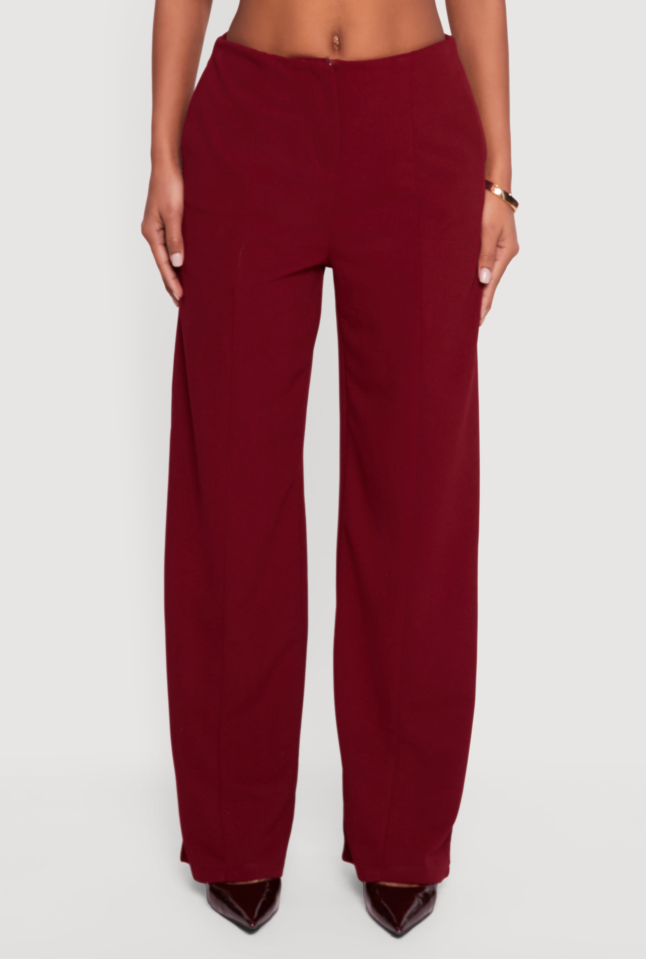 Step out in style and comfort with these Solid Crepe Knit Wide Leg Dress Pants. Designed with a flattering mid-rise and a loose, wide leg fit, they offer effortless elegance for your night out or party looks. The smooth crepe knit fabric feels soft against your skin while adding a touch of sophistication. Whether you pair them with heels or sneakers, these pants are your new go-to for turning heads without trying too hard.