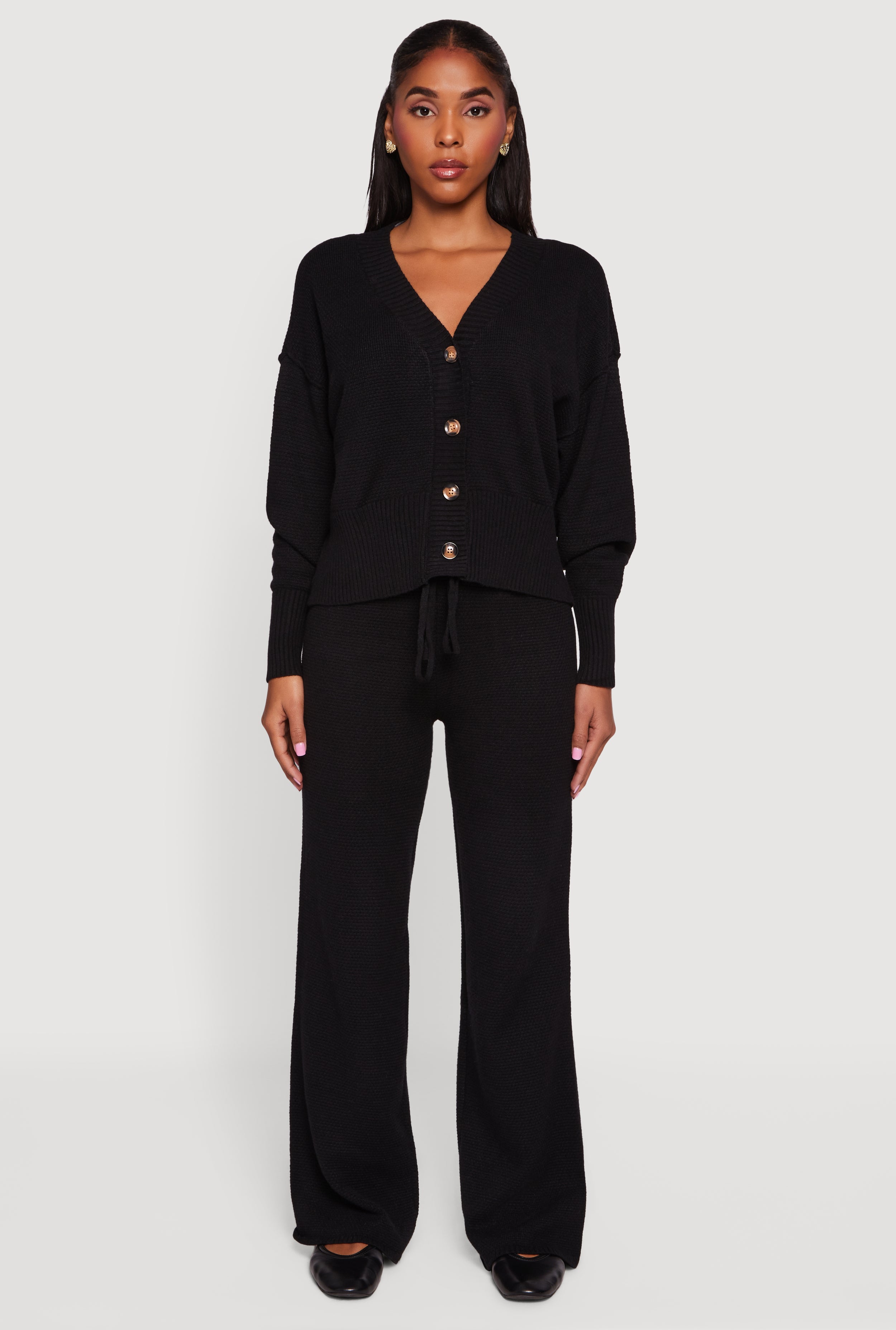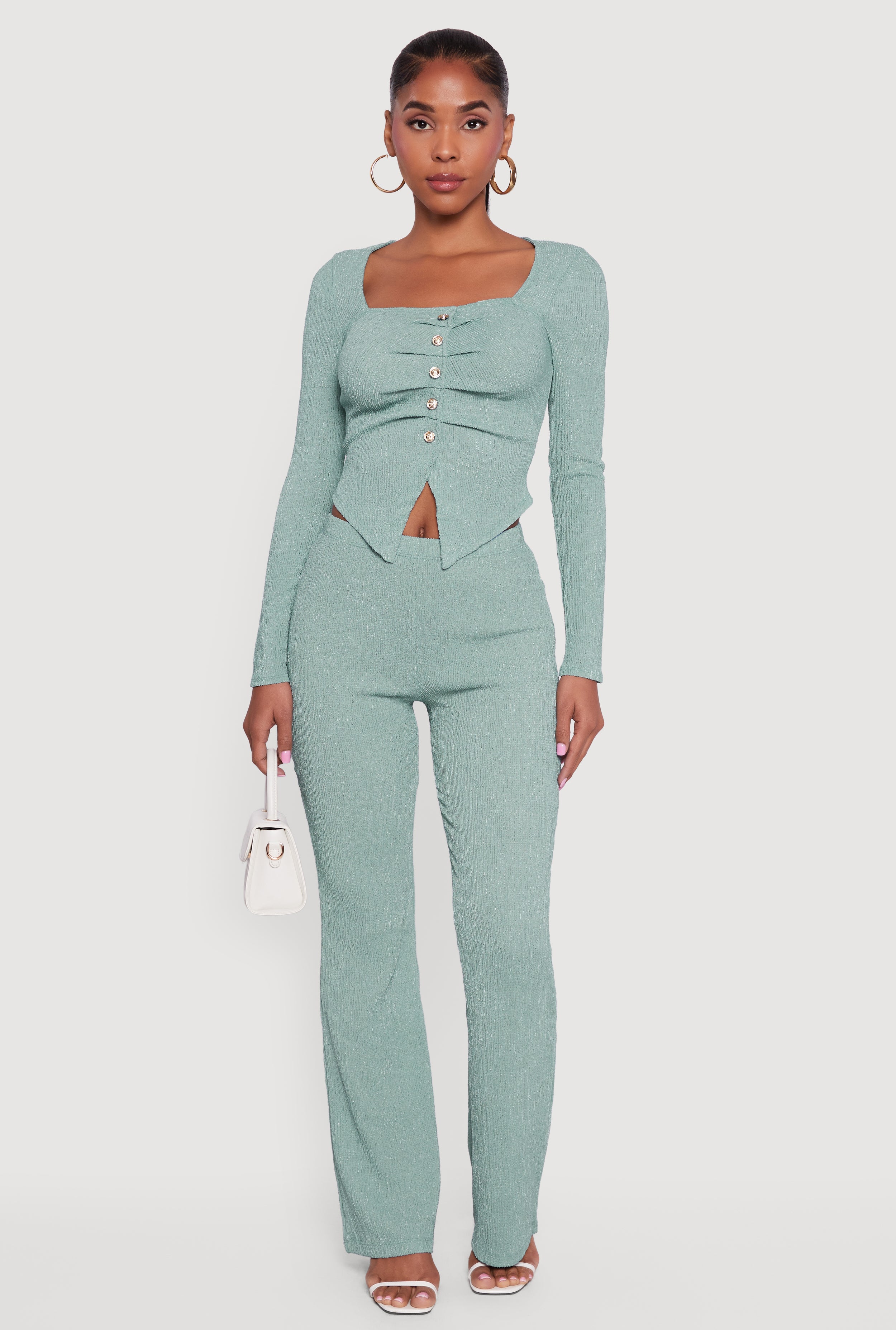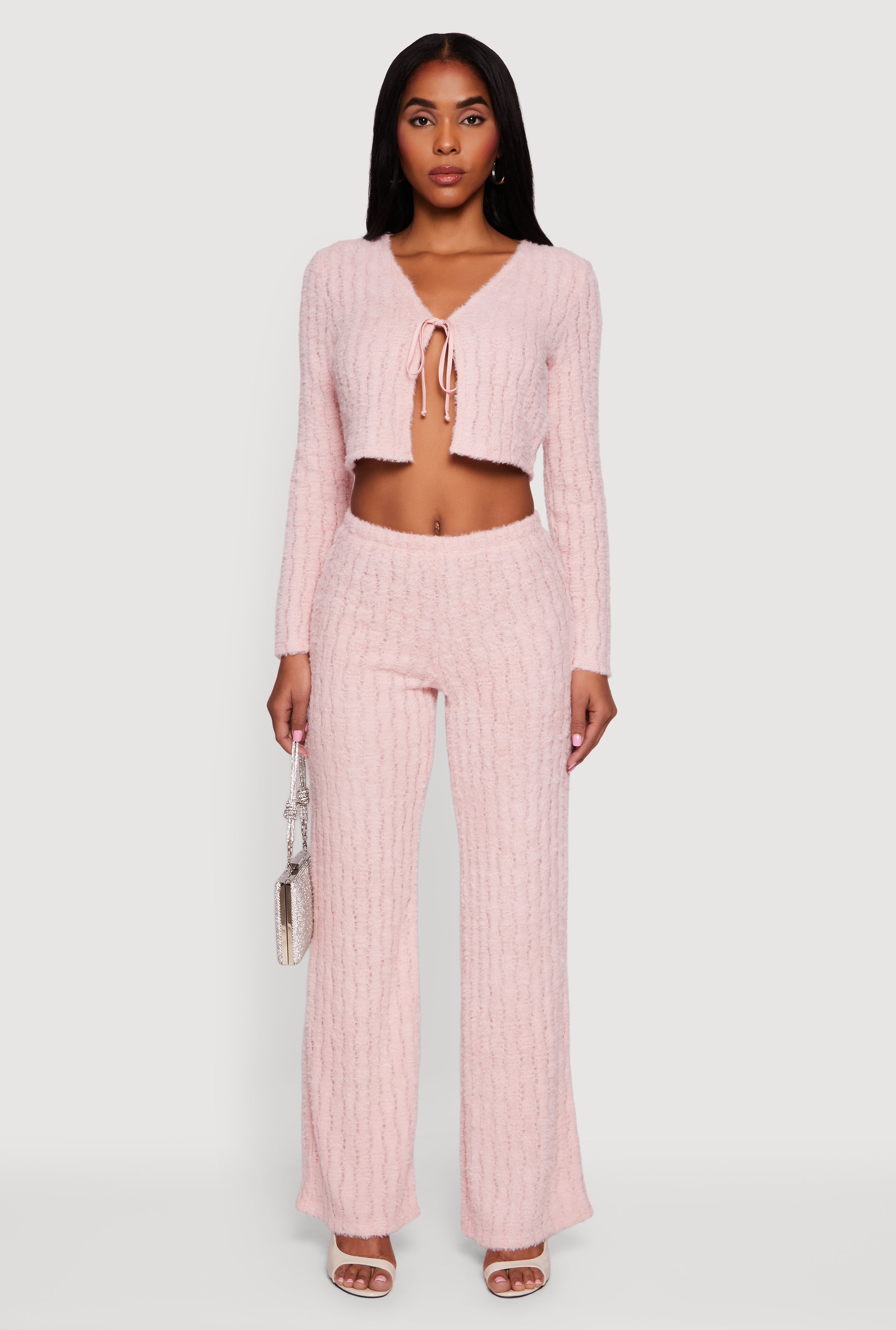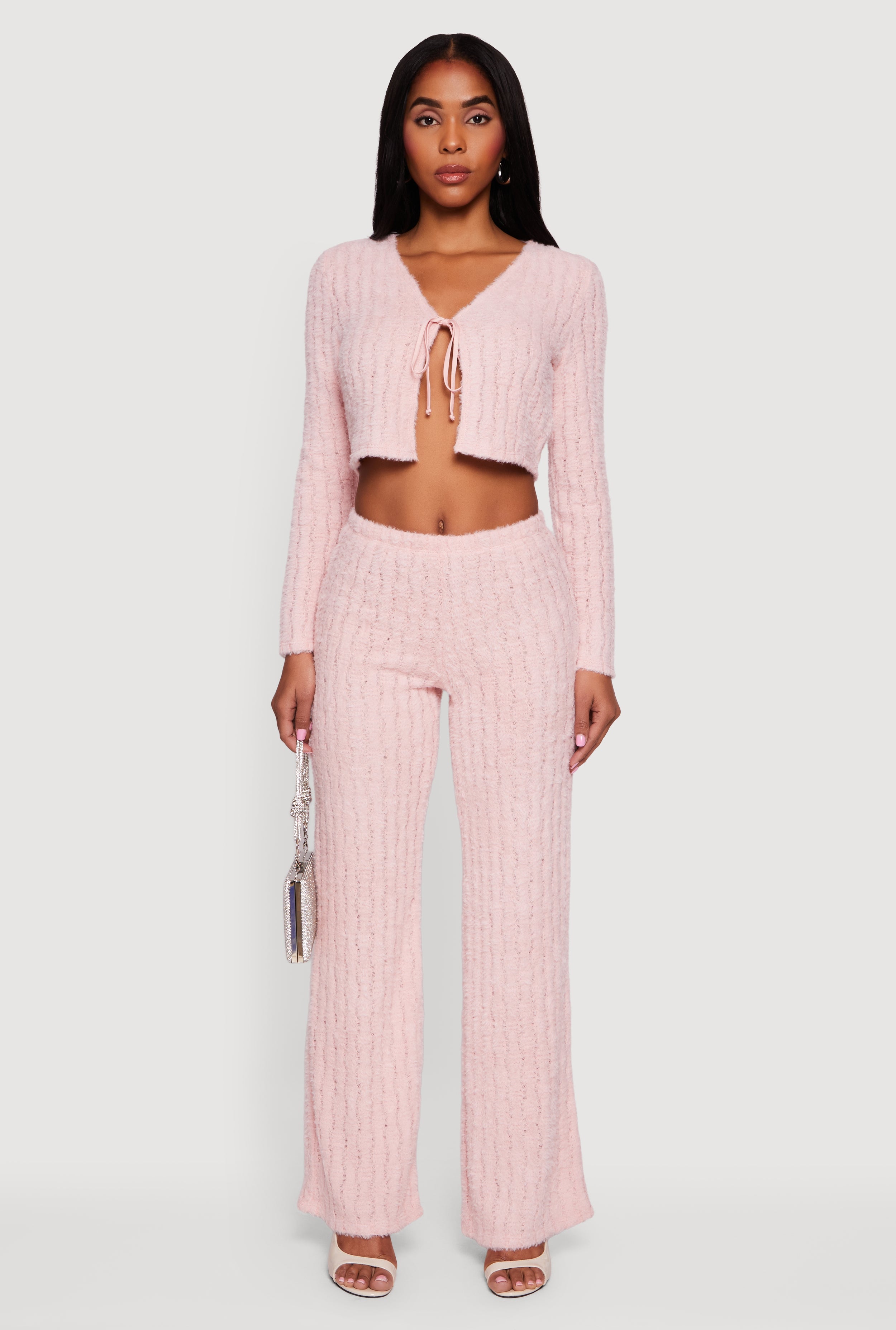 Eyelash Knit Tie Front Long Sleeve Crop Top