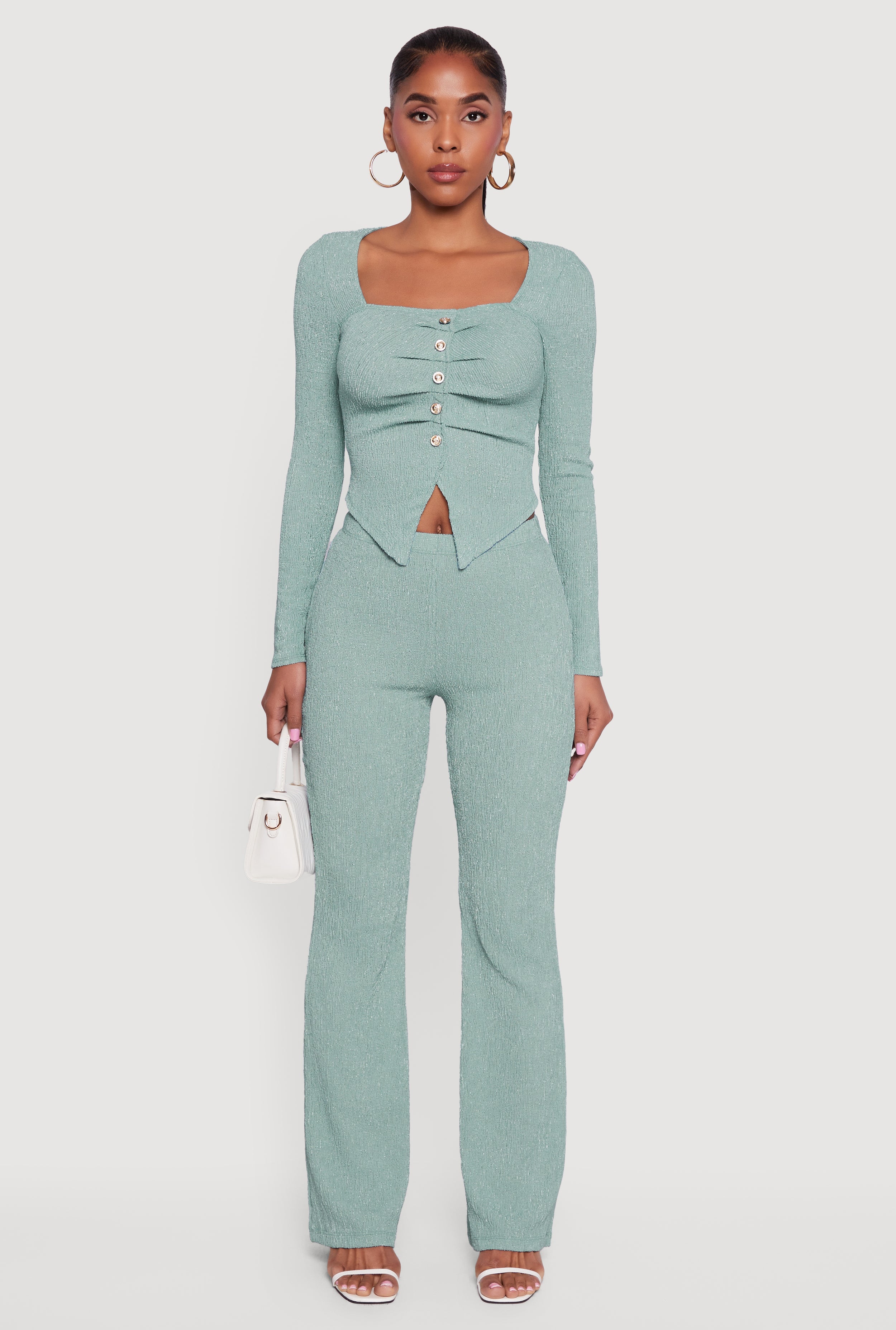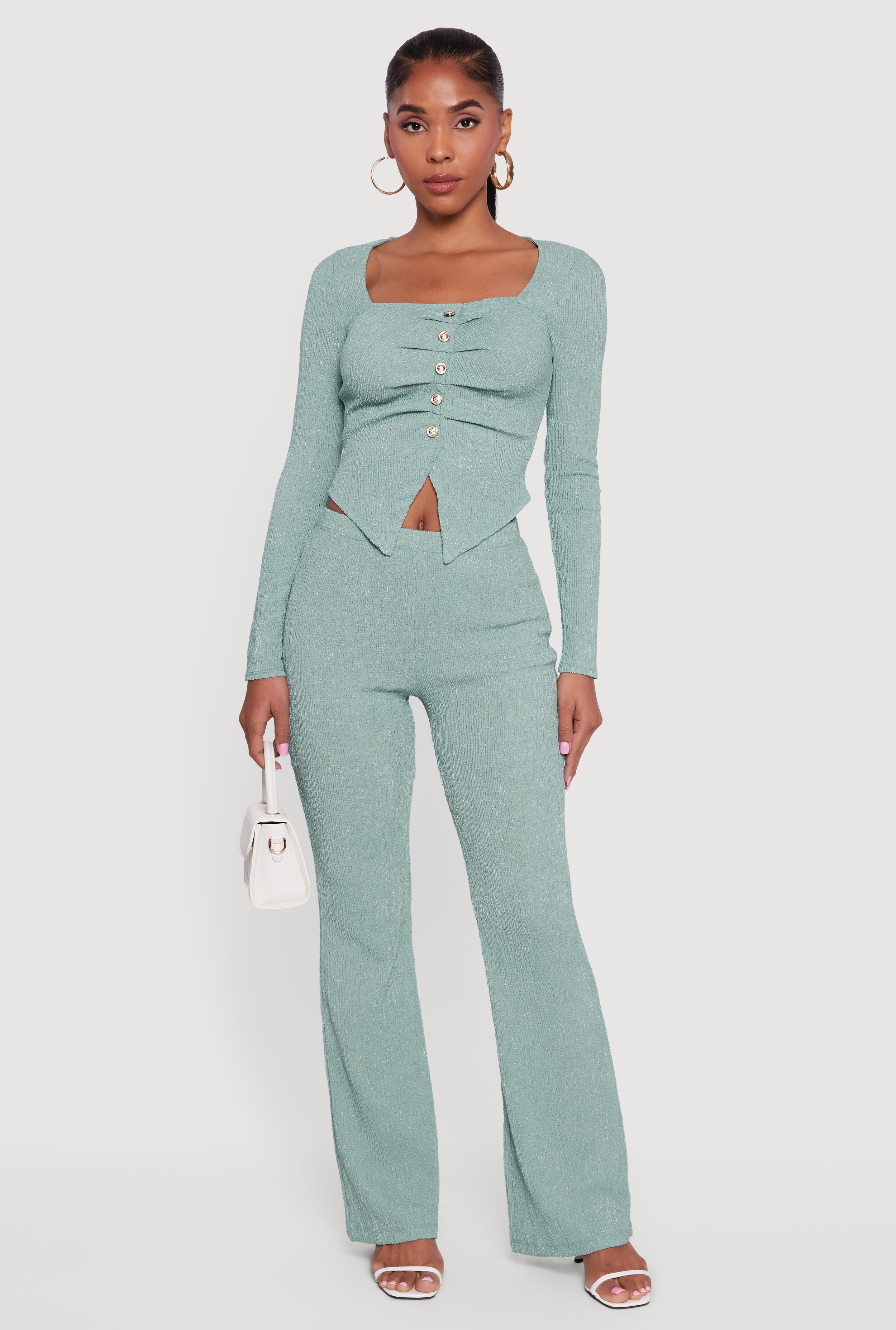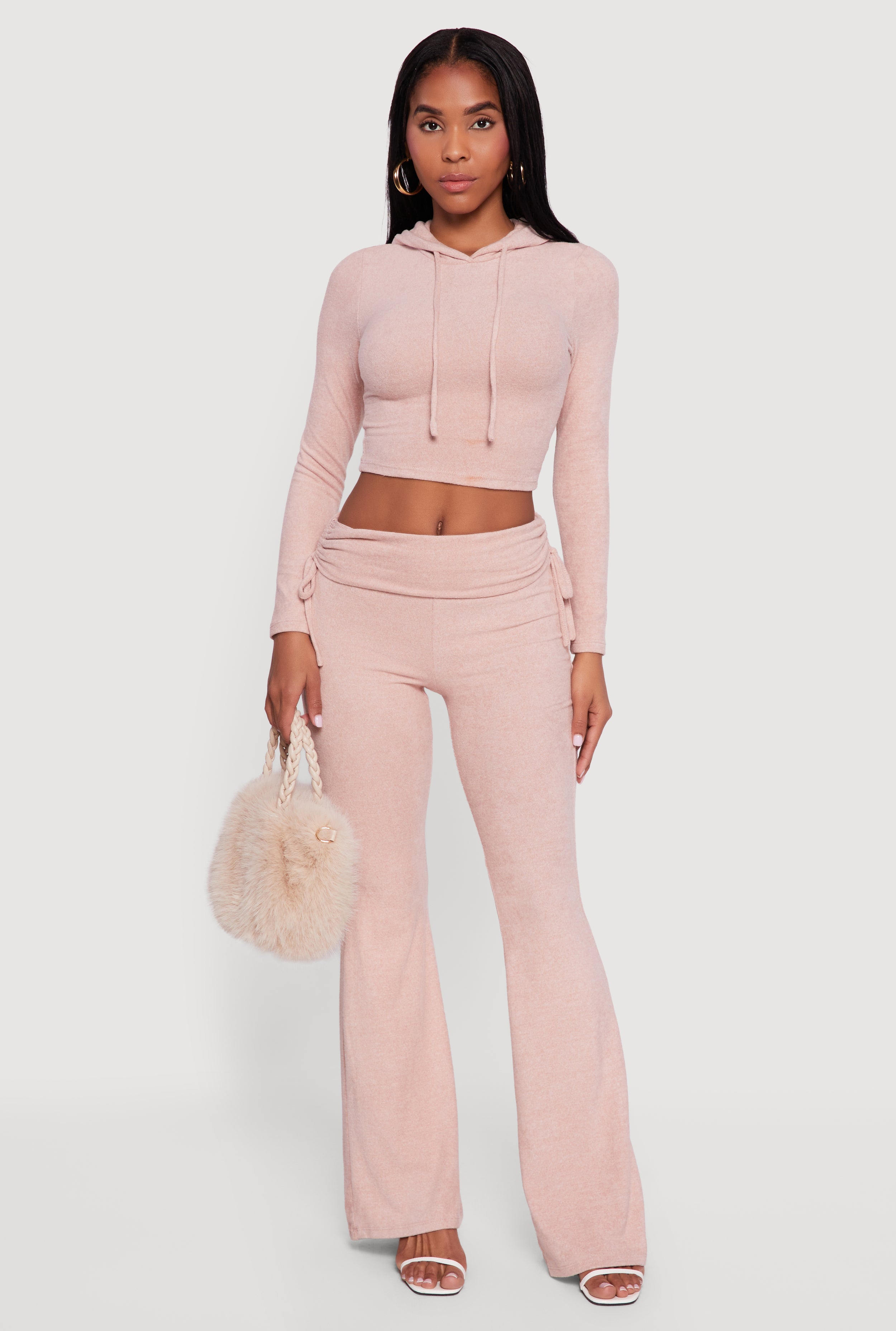 Trendy Leopard Print Fold Over Rib Knit Flare Leg Pants