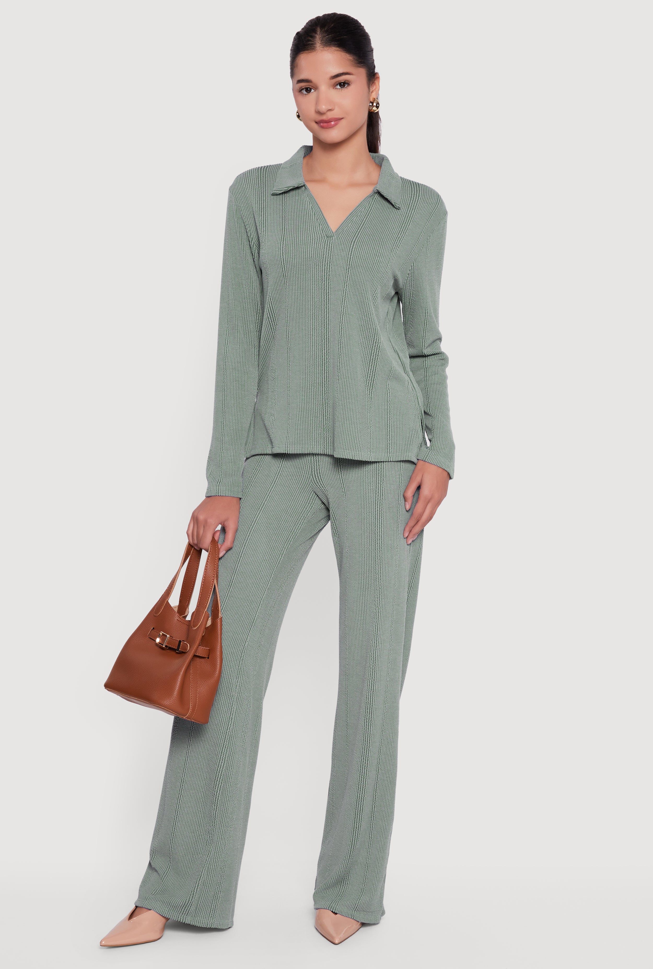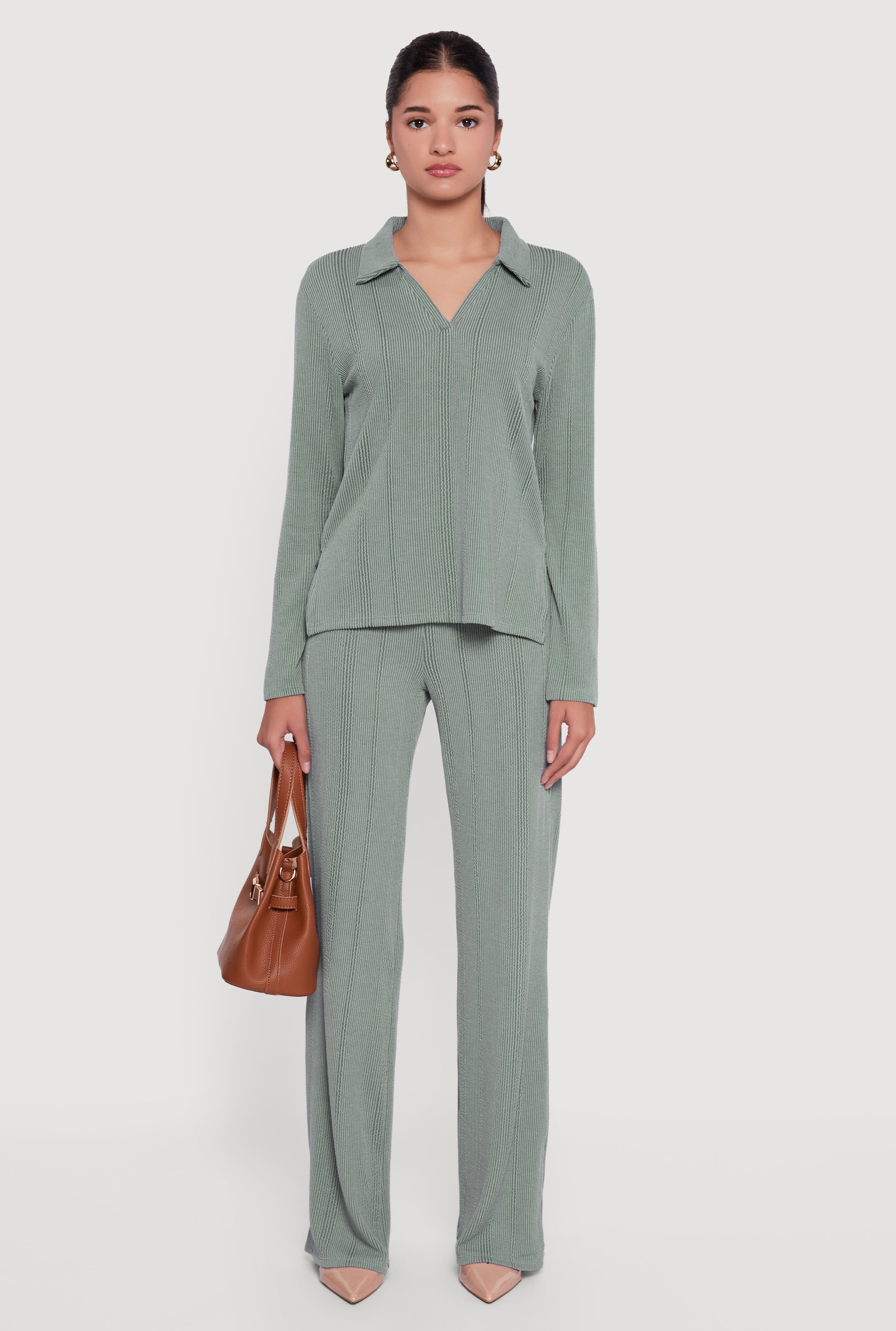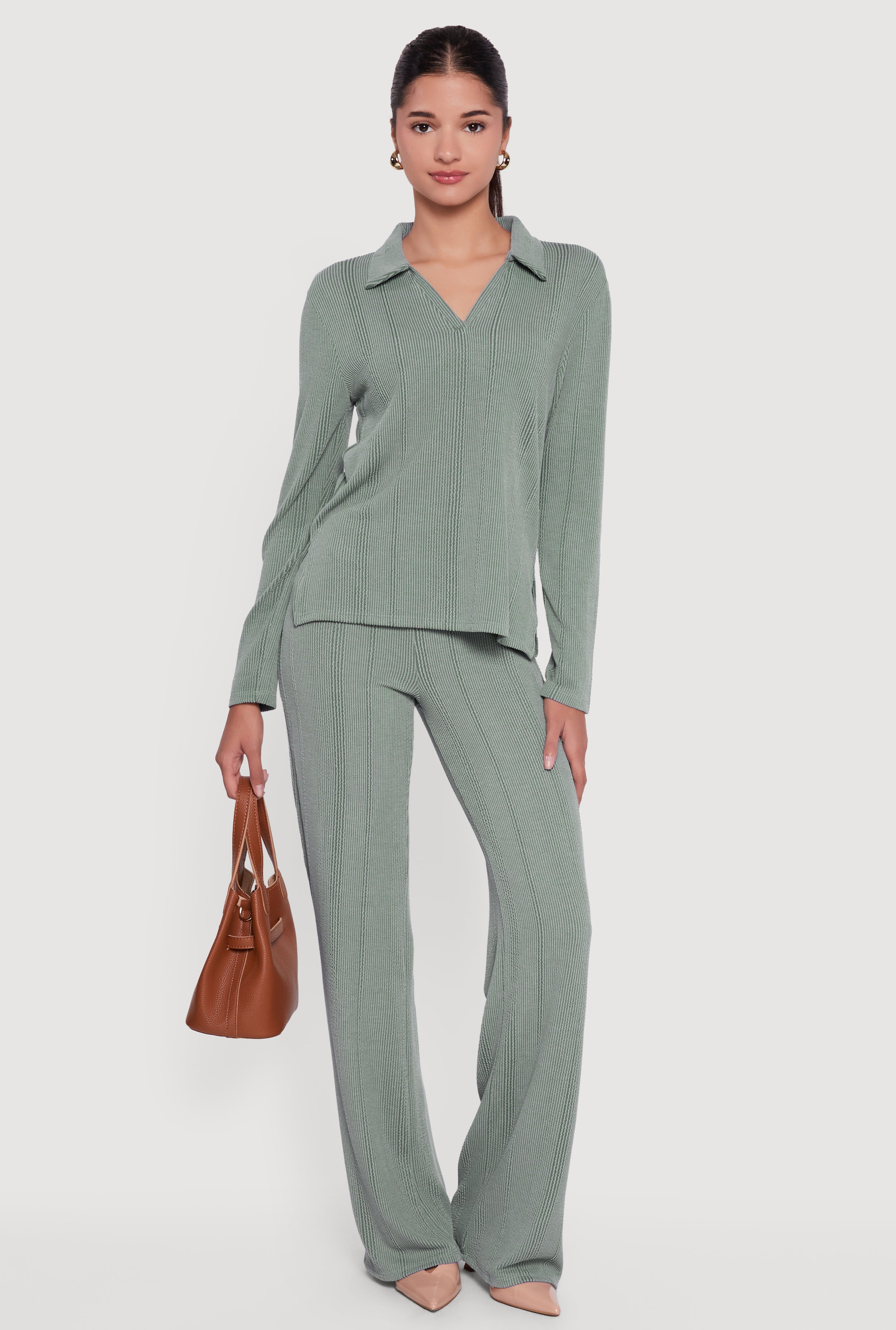 Ribbed Knit Long Sleeve Johnny Collar Polo Shirt