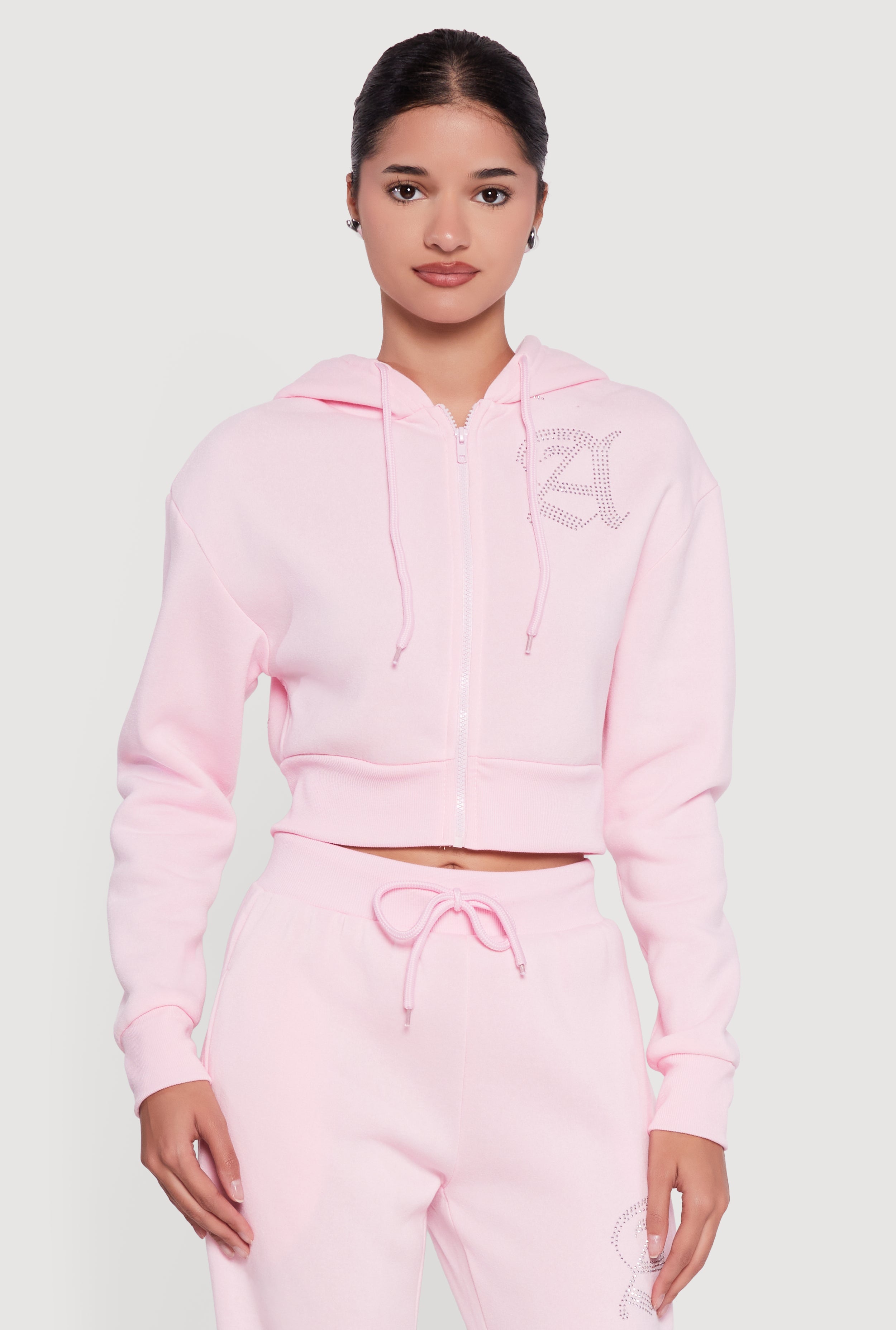 Almost Famous Rhinestone Studded Fleece Pullover Hoodie