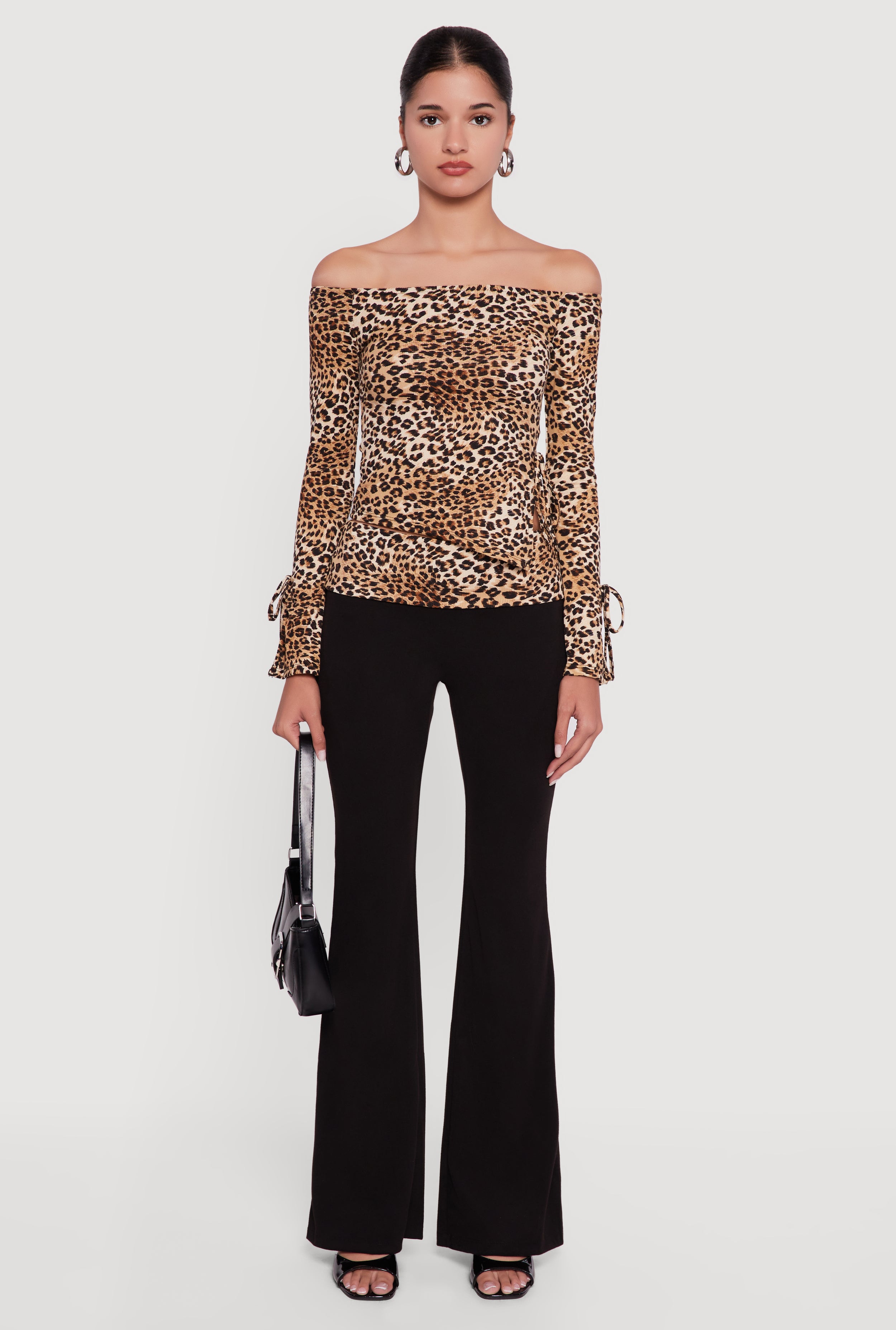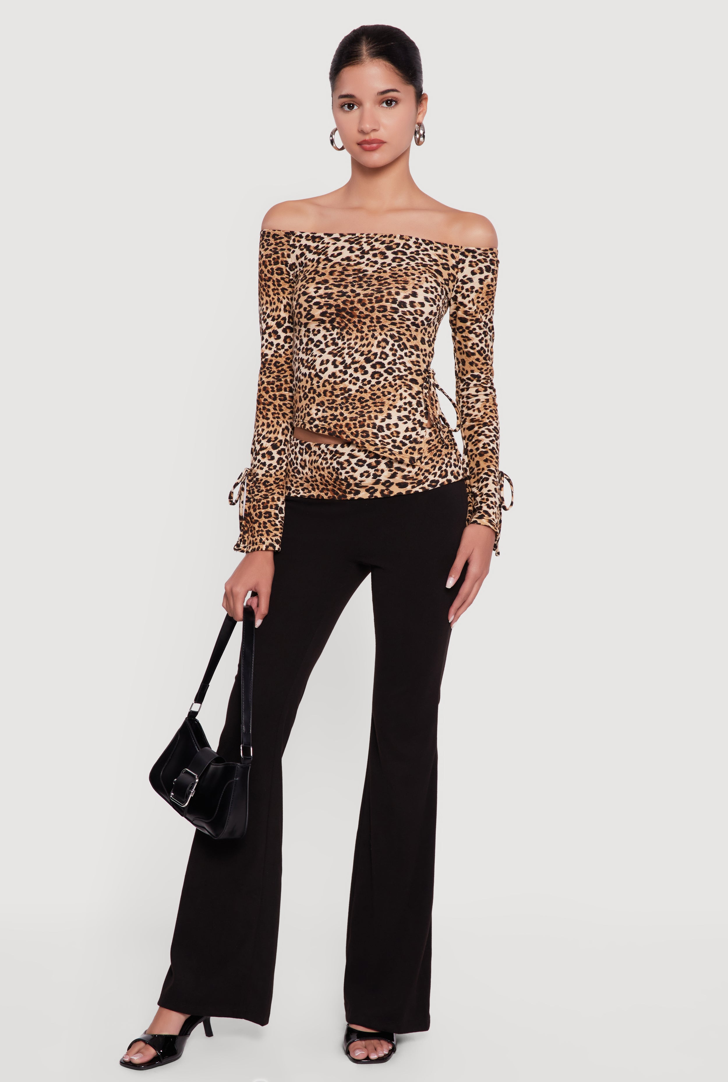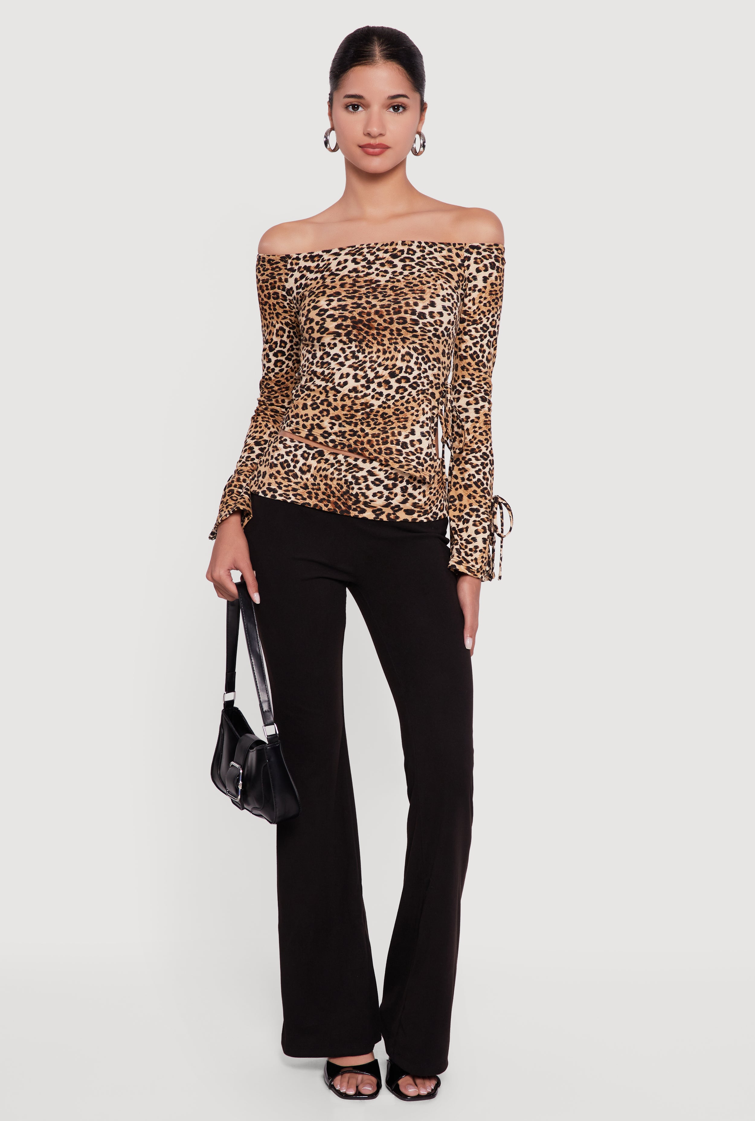 Ribbed Knit Leopard Print Off the Shoulder Blouse