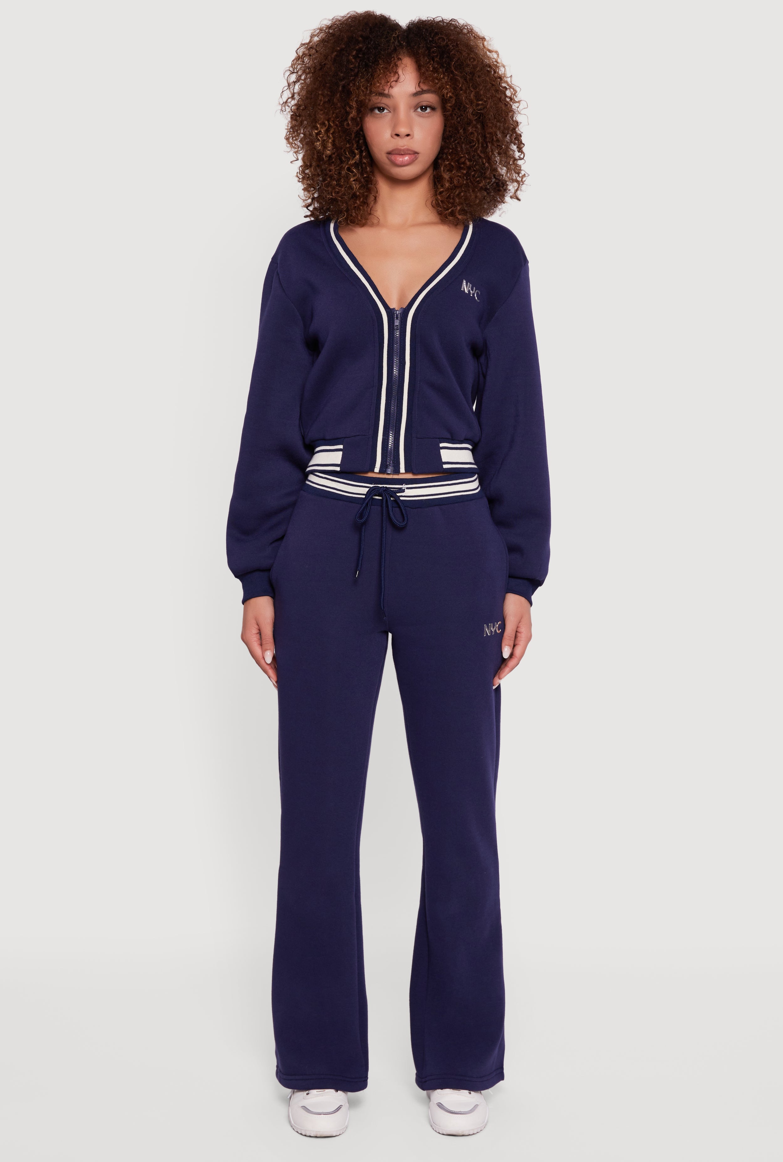 NYC V-Neck Zip Front Cropped Sweatshirt