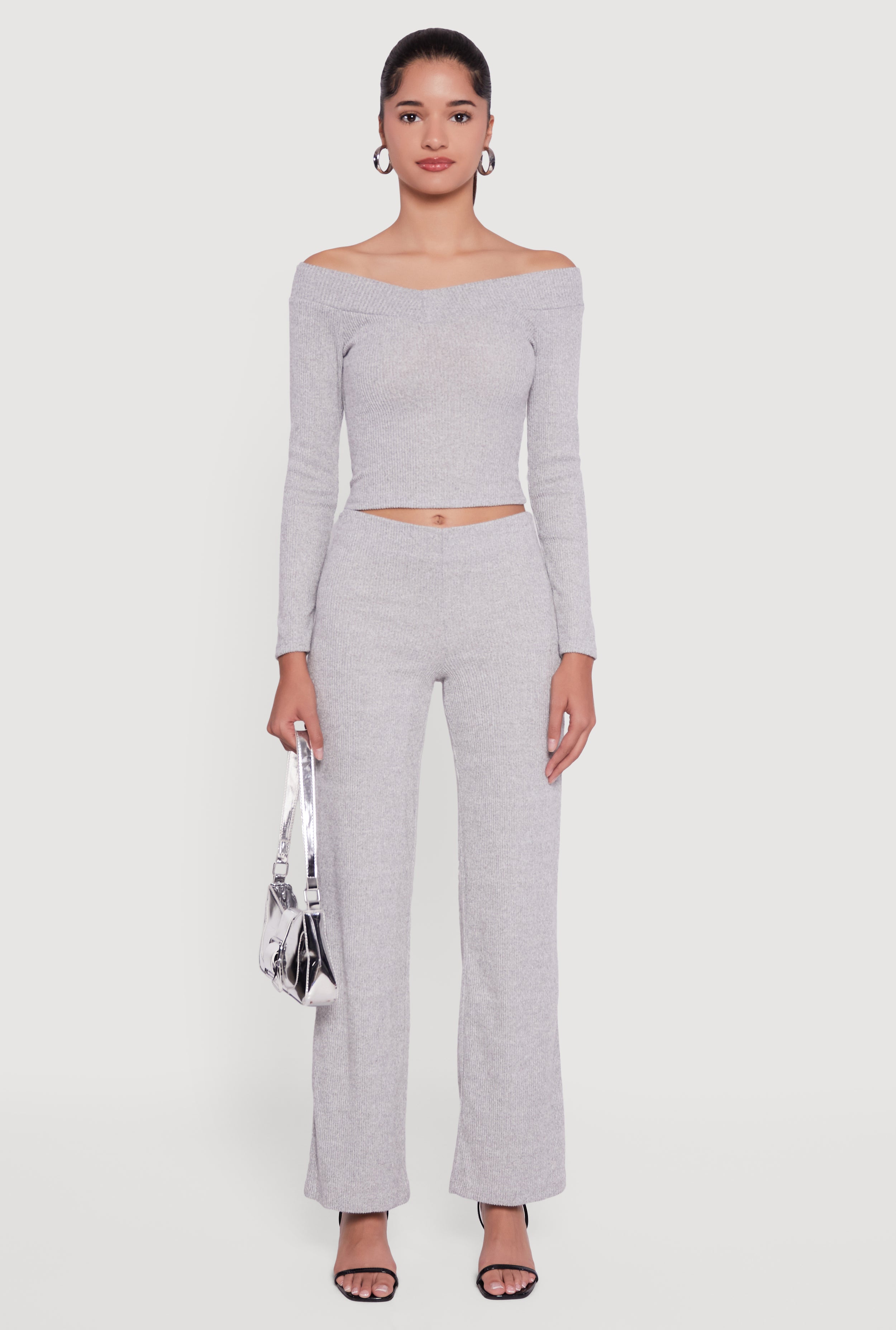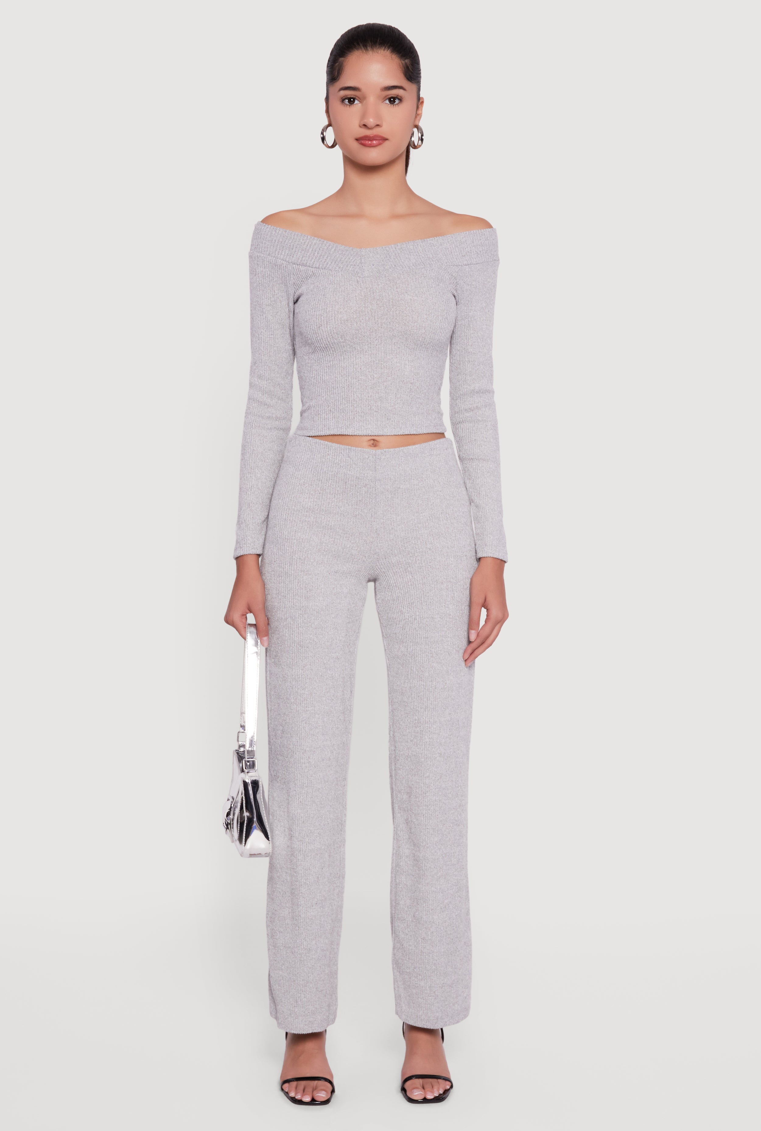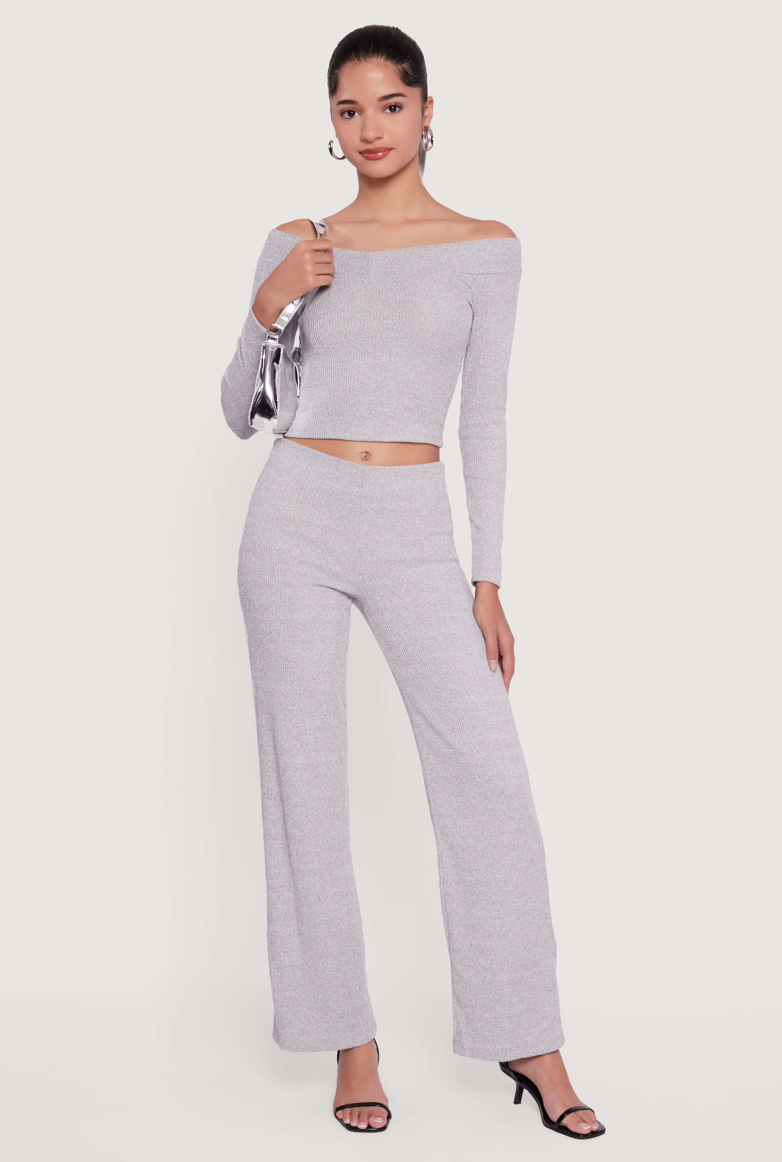 Ribbed Knit Long Sleeve Off The Shoulder Crop Top