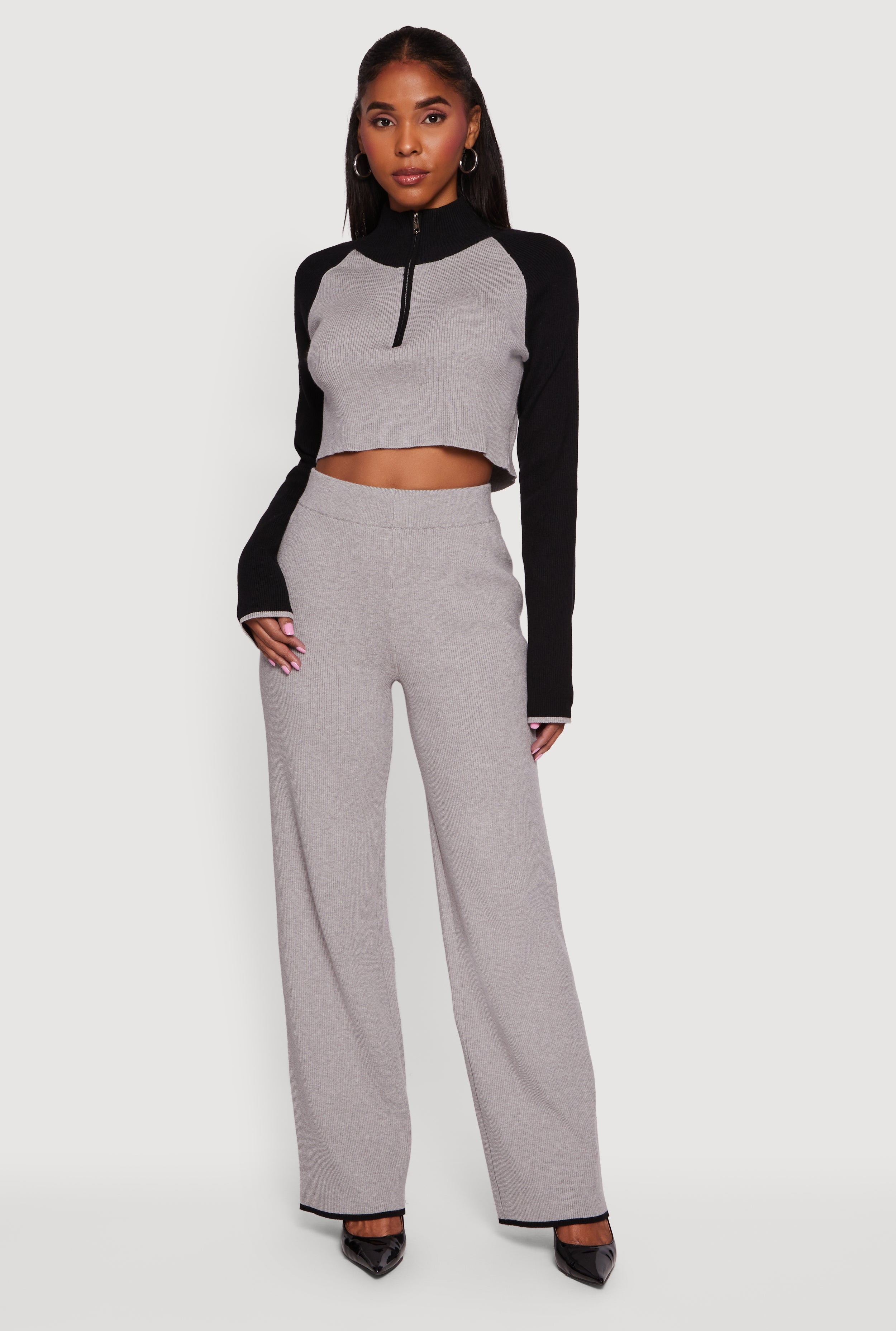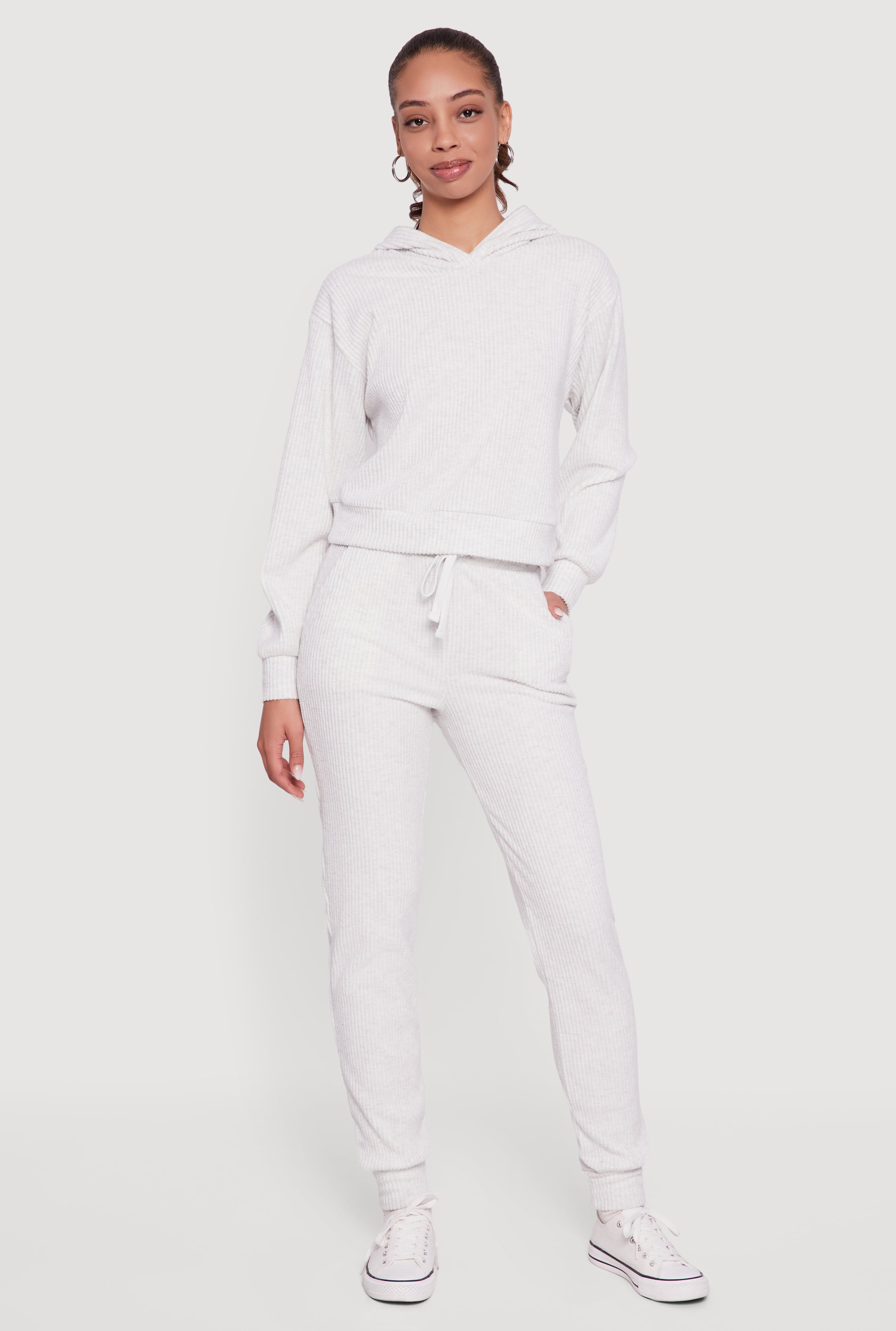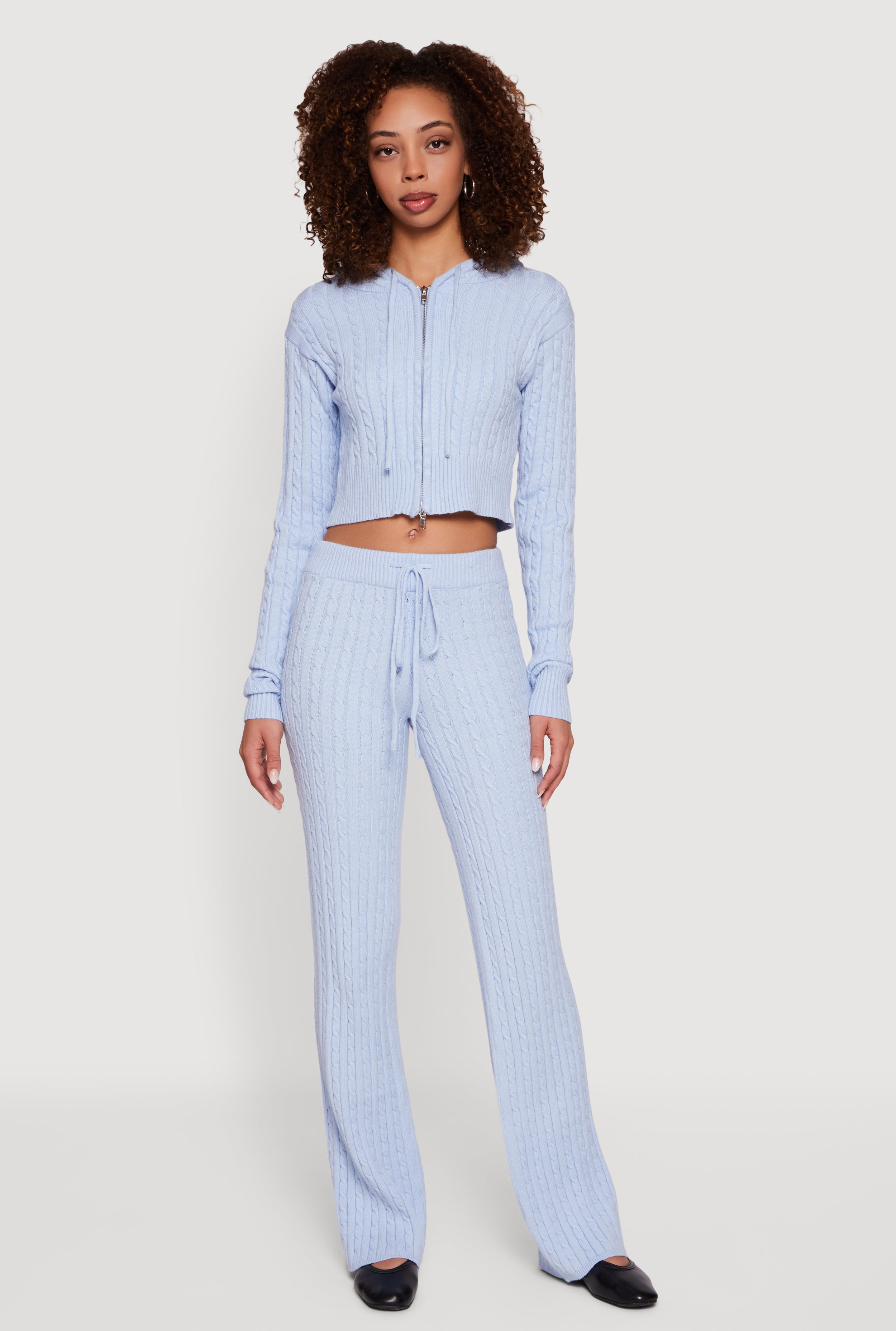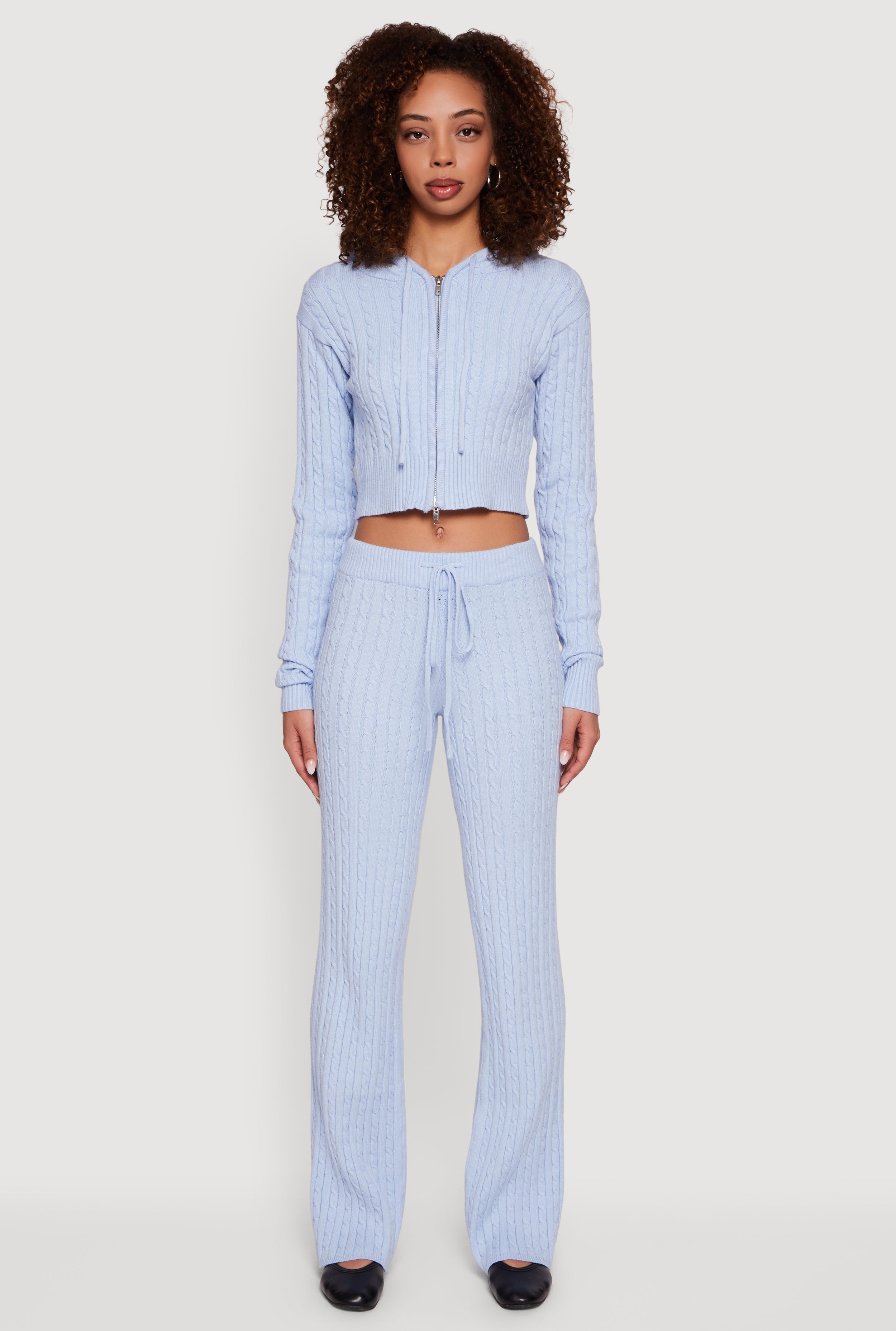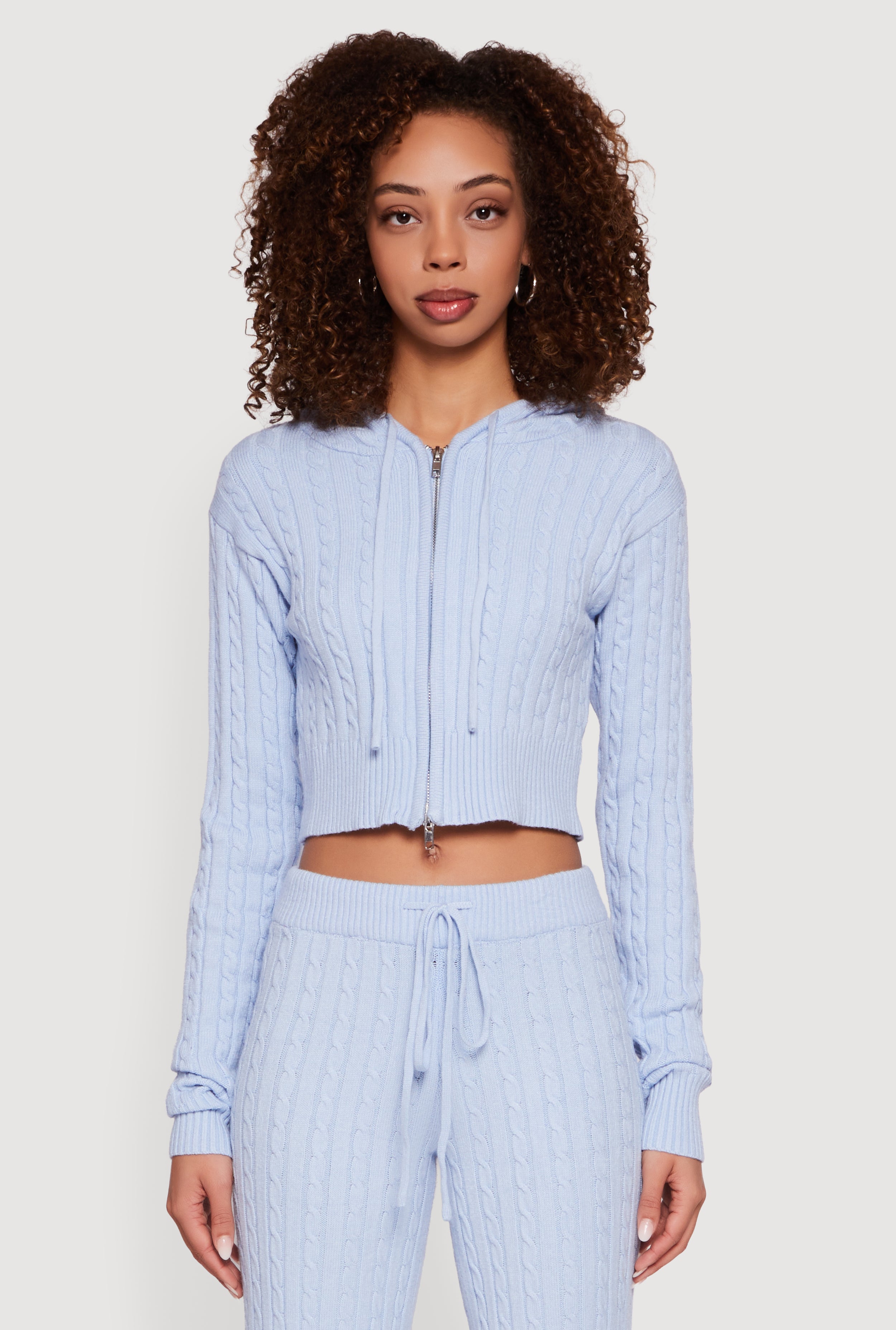 Cropped Rib Knit Trim Cable Knit Sweater Hoodie
