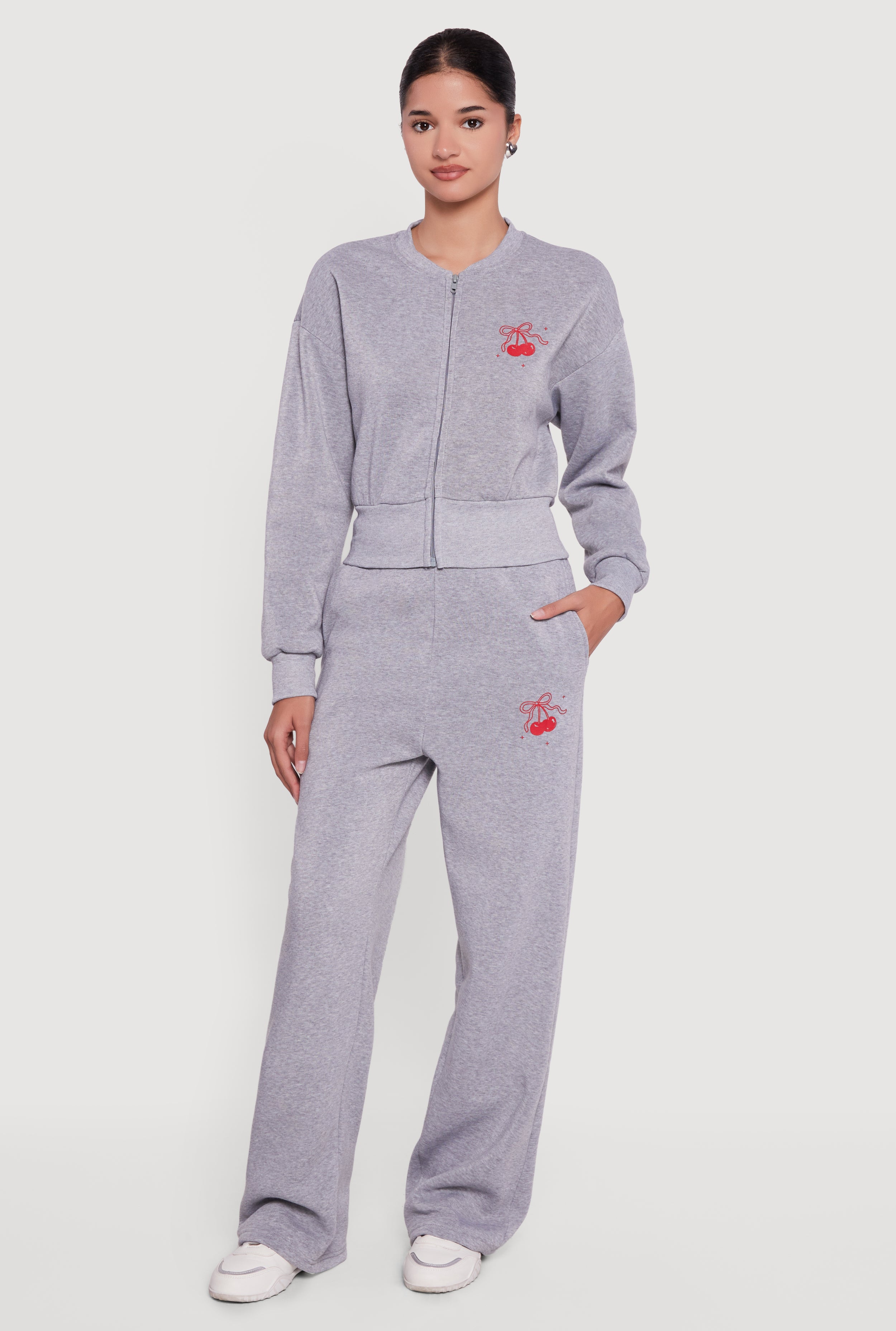 Cherry Bow Graphic Detail Zip Front Sweatshirt