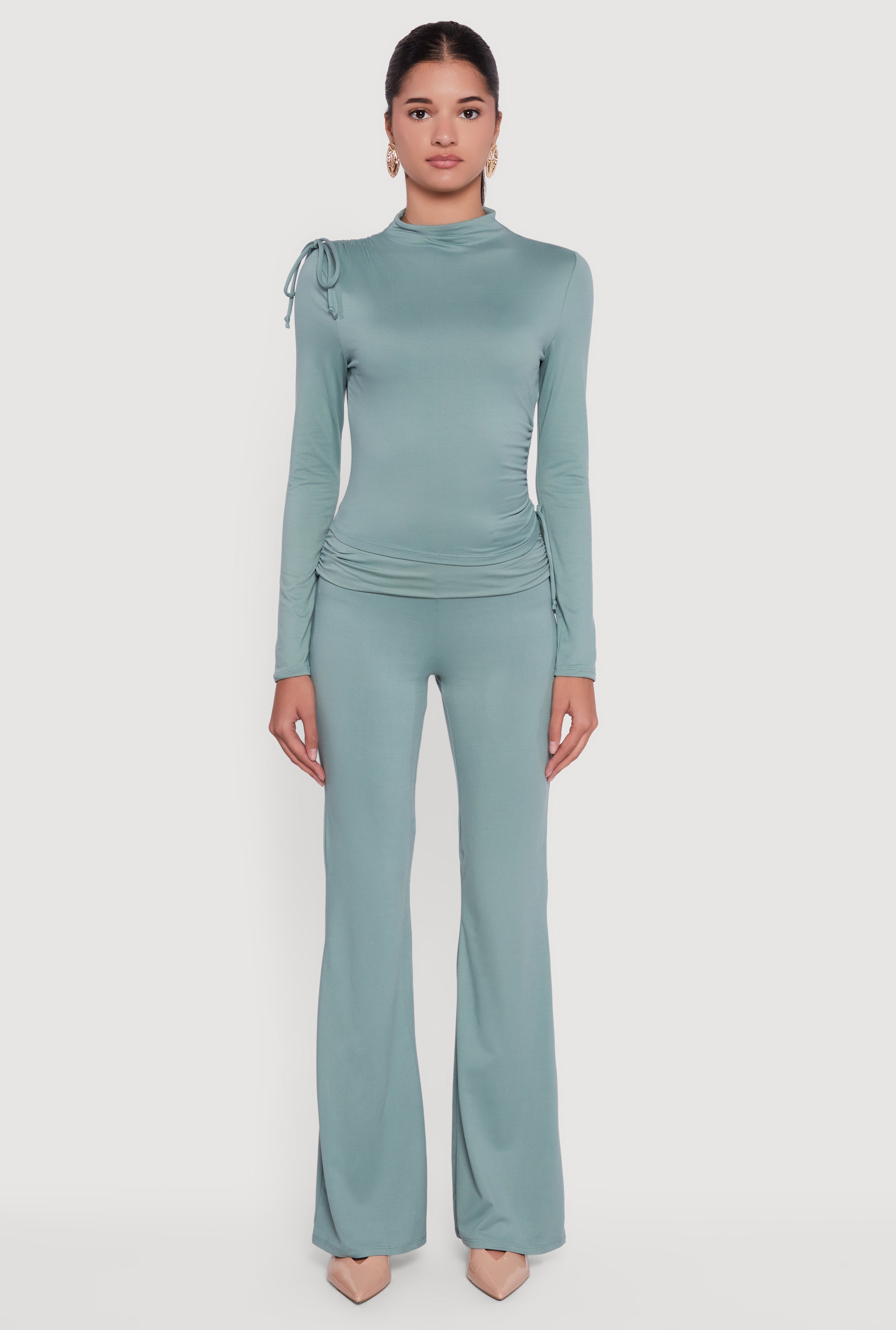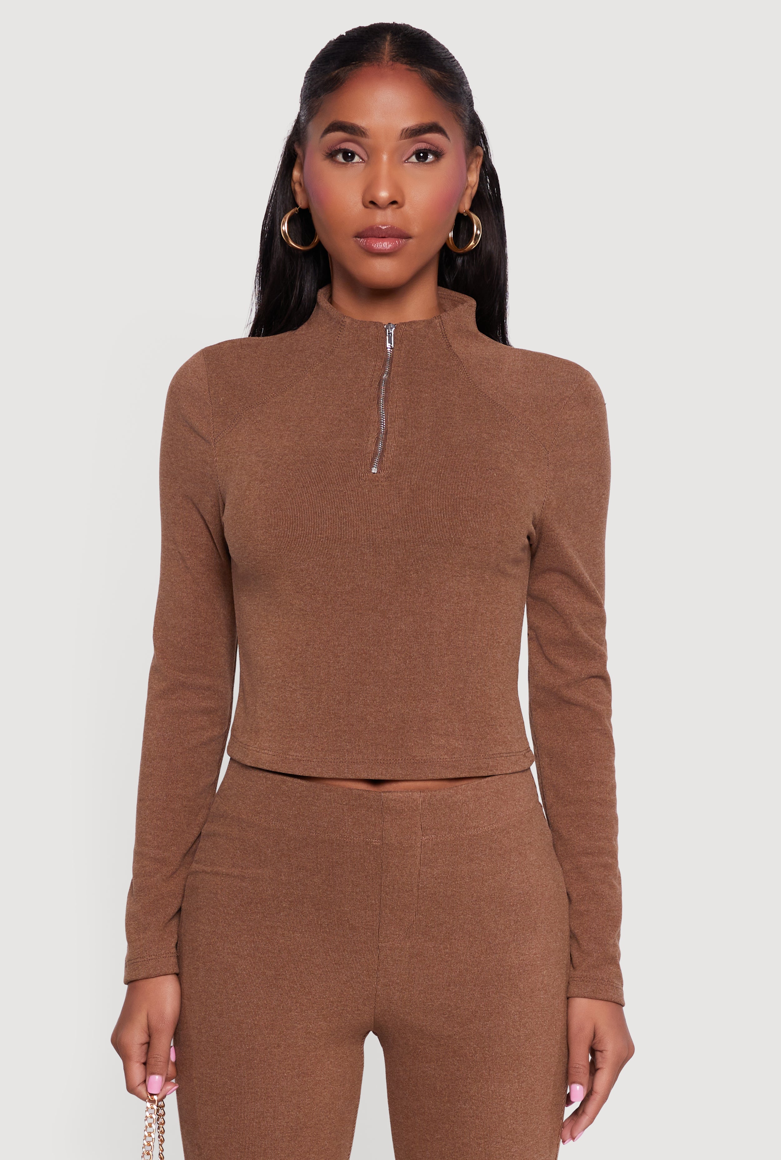 Brushed Rib Knit Long Sleeve Mock Neck Top