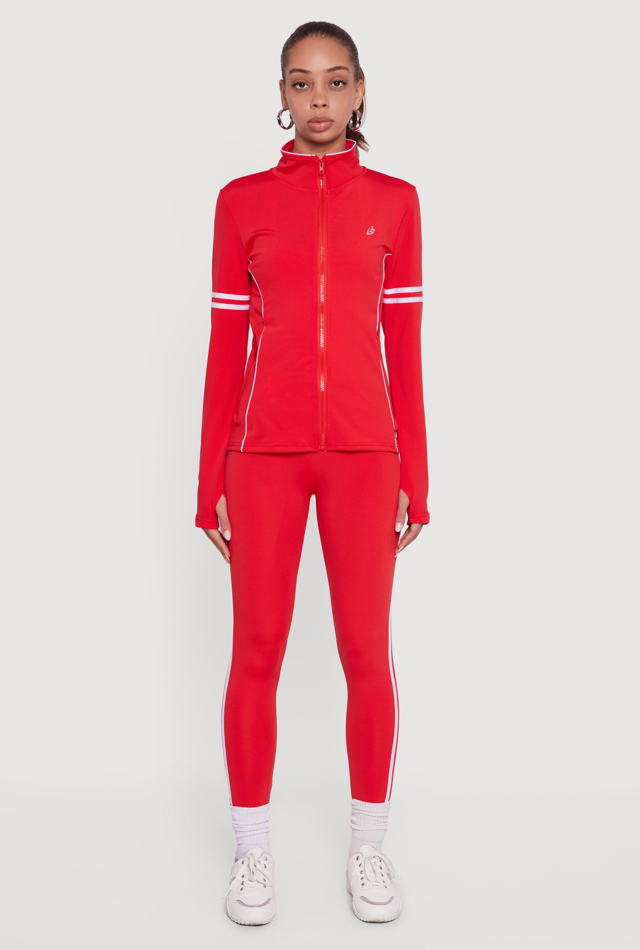 Zip Front Mock Neck Varsity Stripe Track Jacket
